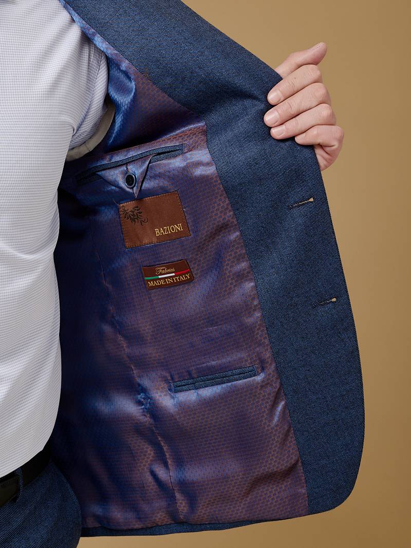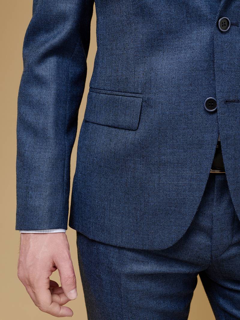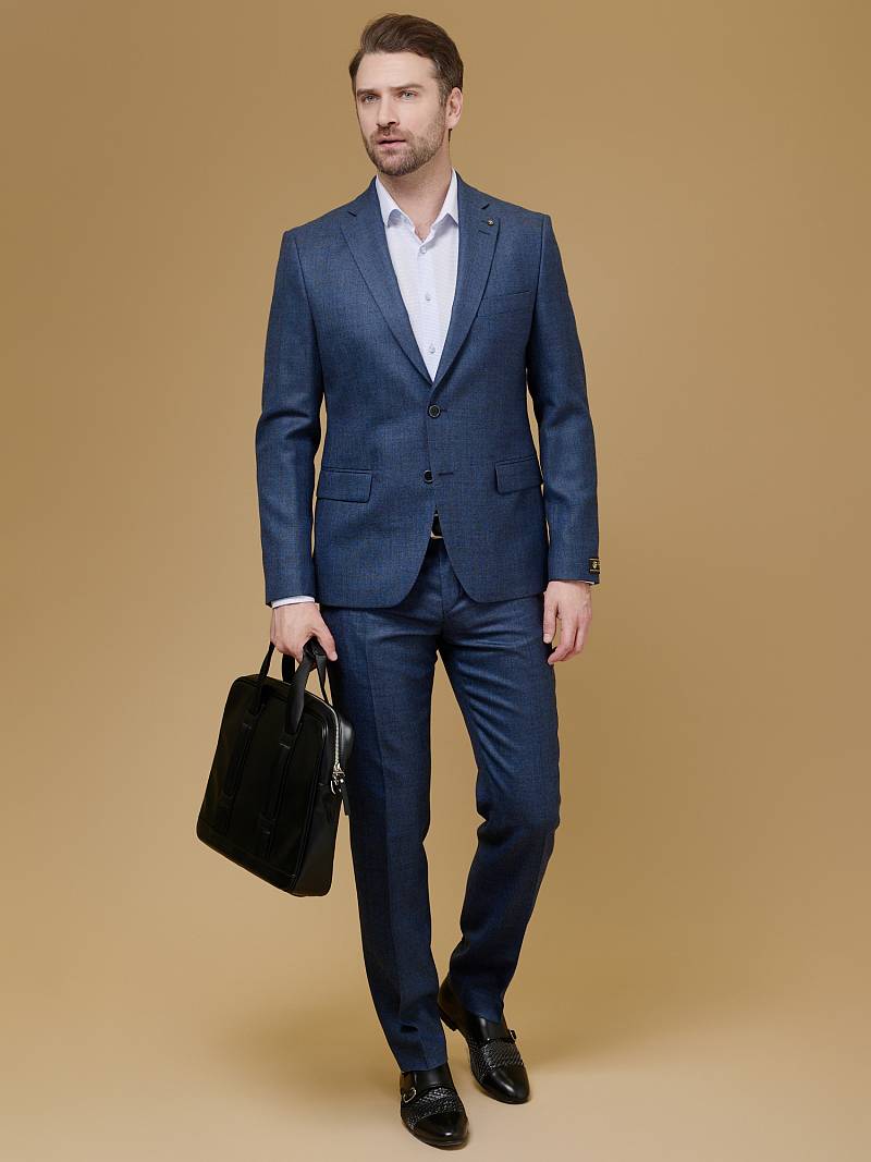 Классический костюм двойка Slim fit (ПРИЛЕГАЮЩИЙ СИЛУЭТ), рекомендуется брать на размер больше.Пиджак однобортный на две пуговицы, с двумя боковыми карманами с клапанами и нагрудной листочкой. Рукава втачные, двухшовные со шлицей и четырьмя декоративными пуговицами. По спинке расположены две шлицы. Пиджак на подкладке, с двумя внутренними карманами. Брюки без защипов, с боковыми наклонными карманами и двумя задними карманами «в рамку». Передние половинки на подкладке. Верхний срез брюк обработан поясом с корсажной лентой и шлевками под ремень. Застежка обработана на тесьму-молнию, с петлей-пуговицей на поясе и усилен металлическим крючком.