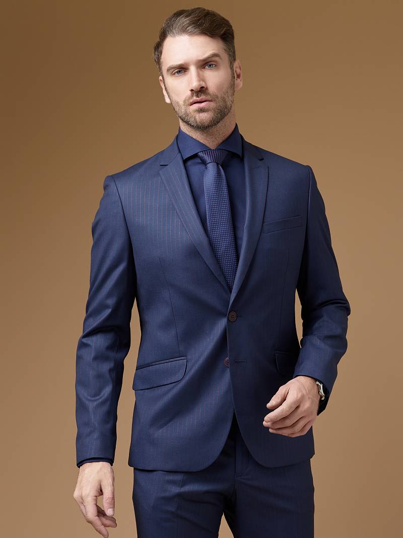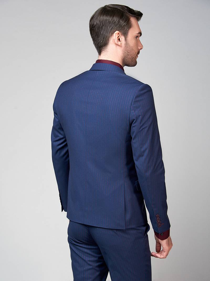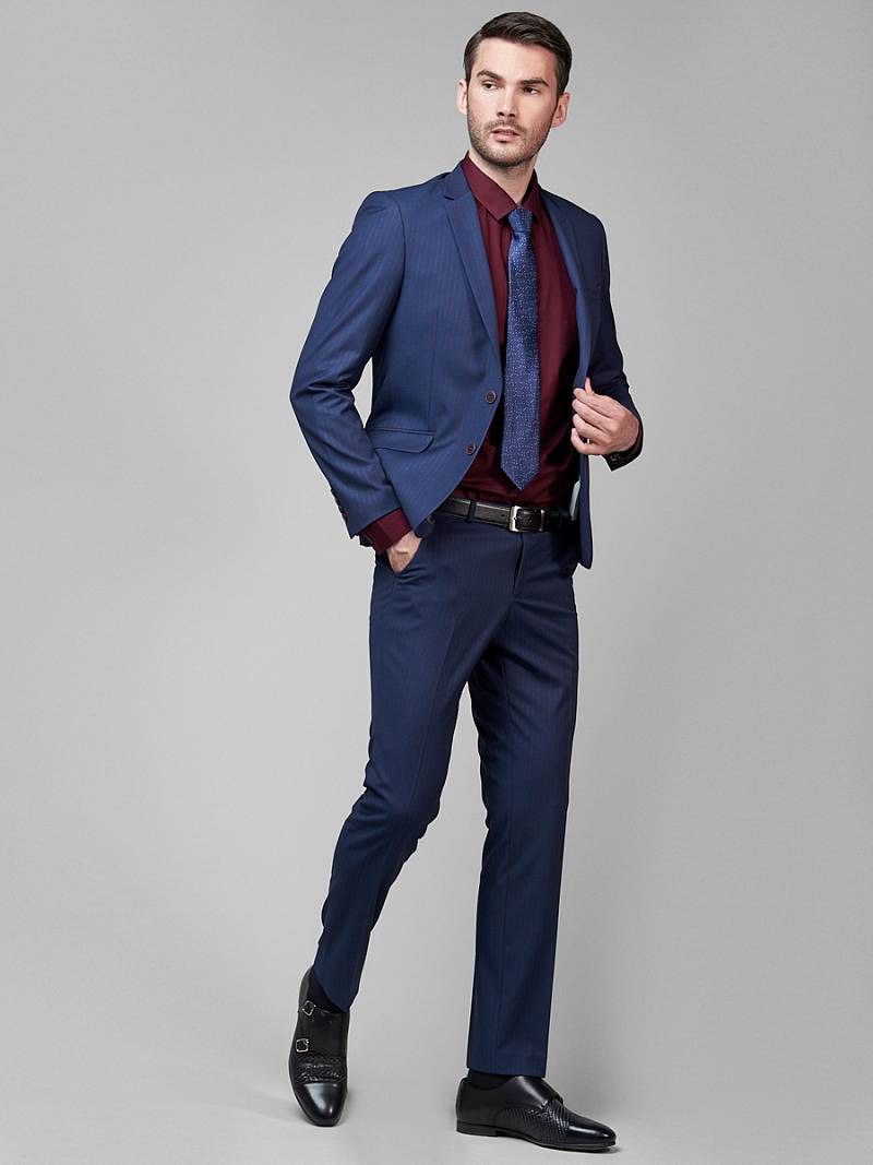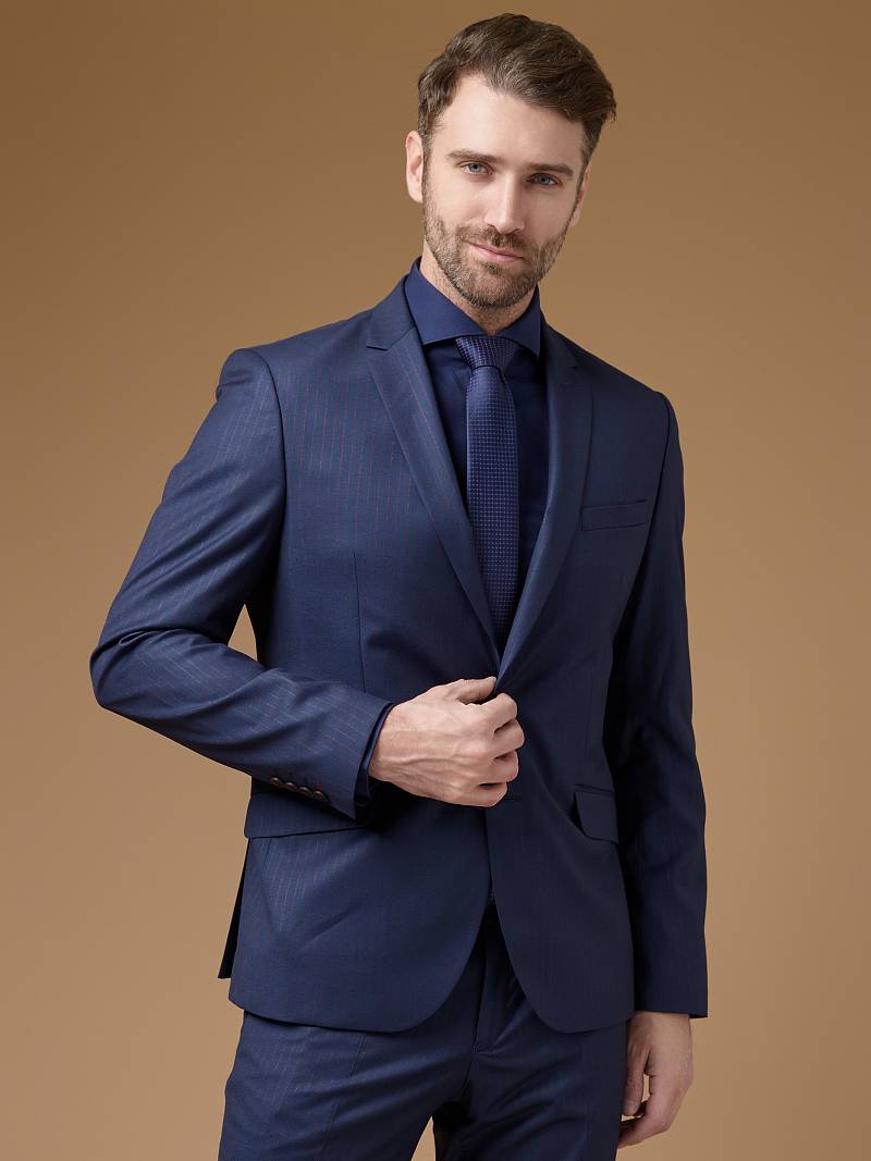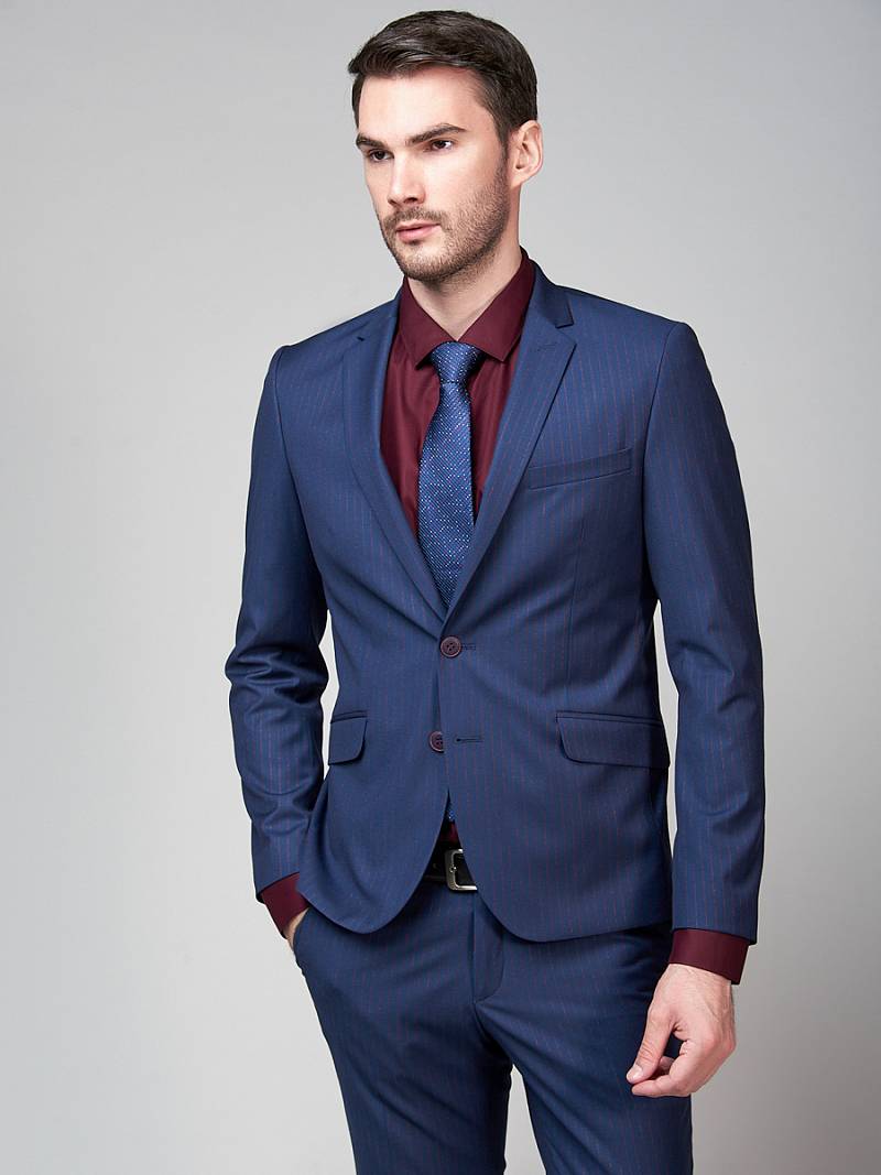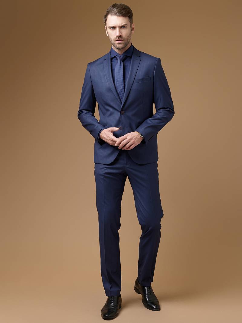Классический костюм двойка Ultra slim fit. Пиджак на две пуговицы, с боковыми и нагрудным карманами, по спинке две шлицы. Брюки без защипов с боковыми и одним задним карманом.