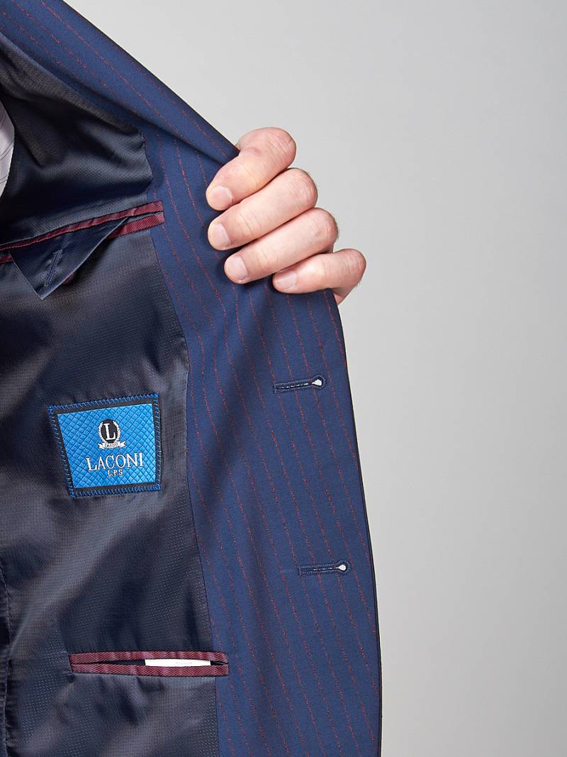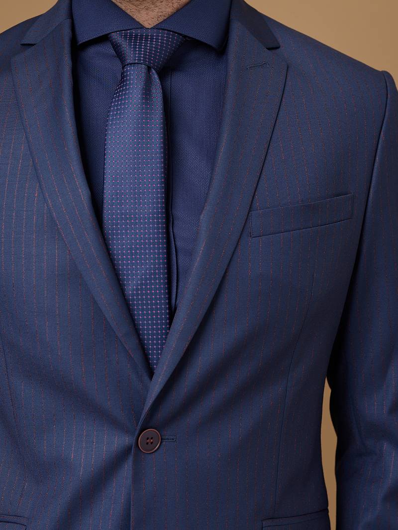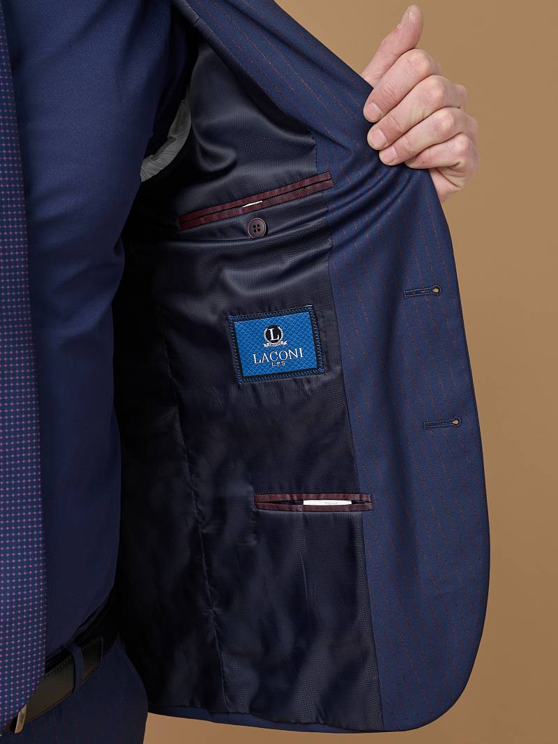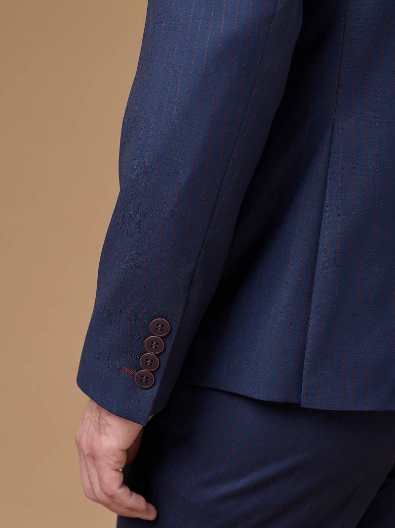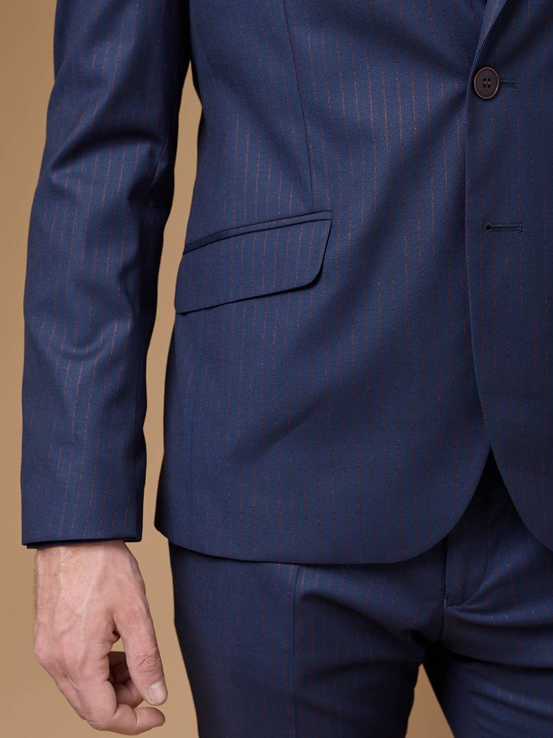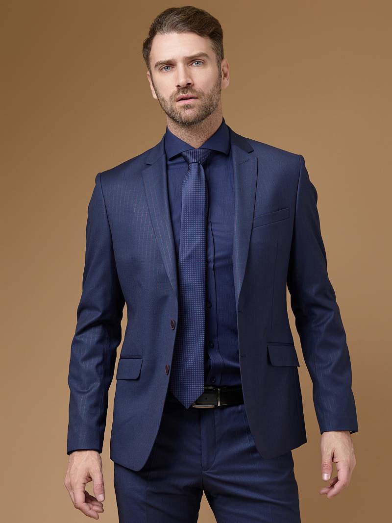 Классический костюм двойка Ultra slim fit. Пиджак на две пуговицы, с боковыми и нагрудным карманами, по спинке две шлицы. Брюки без защипов с боковыми и одним задним карманом.