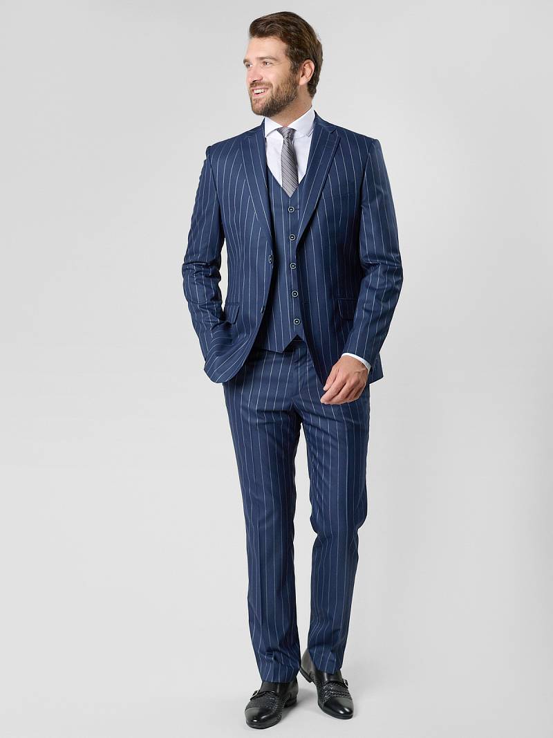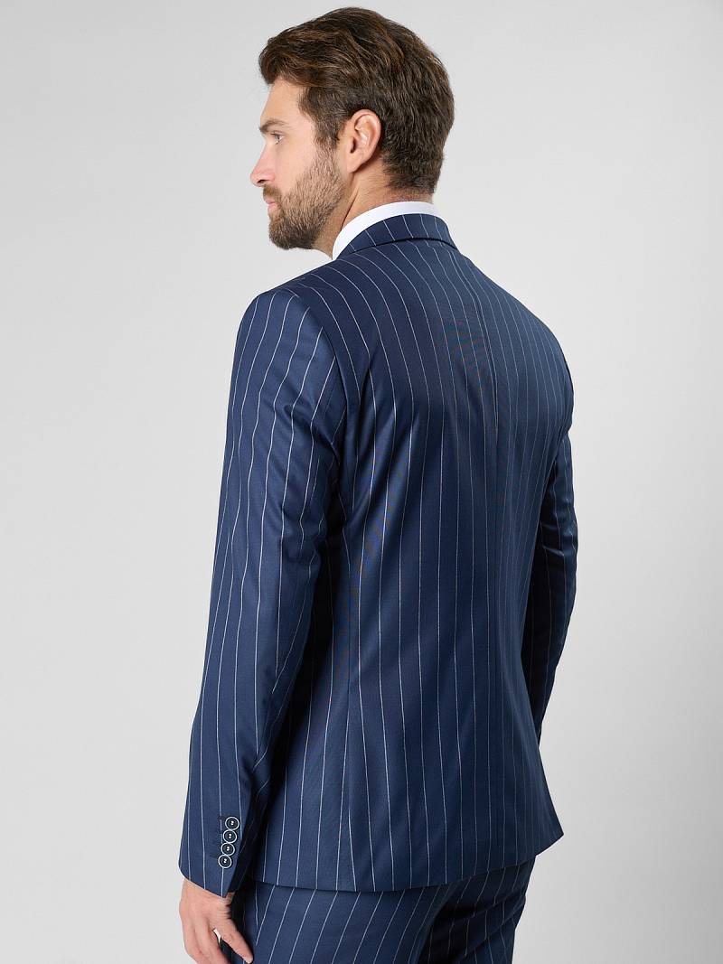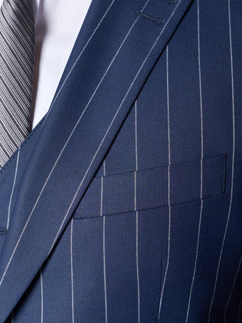 Классический костюм-тройка Slim fit (ПРИЛЕГАЮЩИЙ СИЛУЭТ), рекомендуется брать на размер больше. Пиджак на две пуговицы, с боковыми и нагрудным карманами, по спинке две шлицы. Брюки без защипов с боковыми и одним задним карманом.