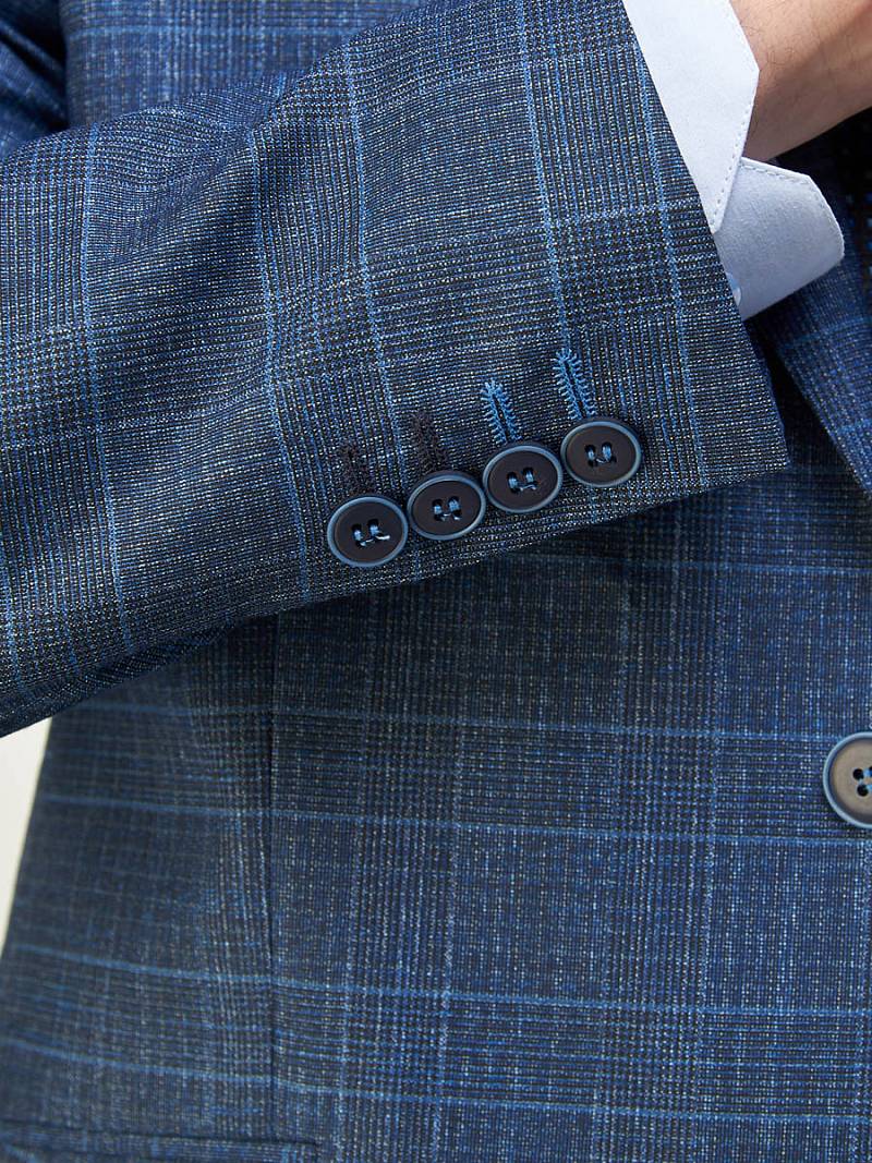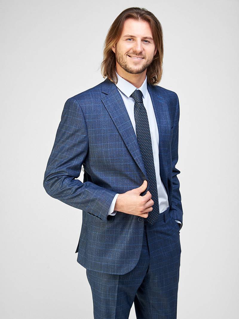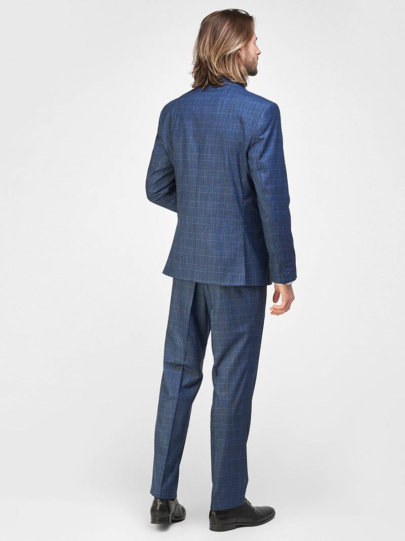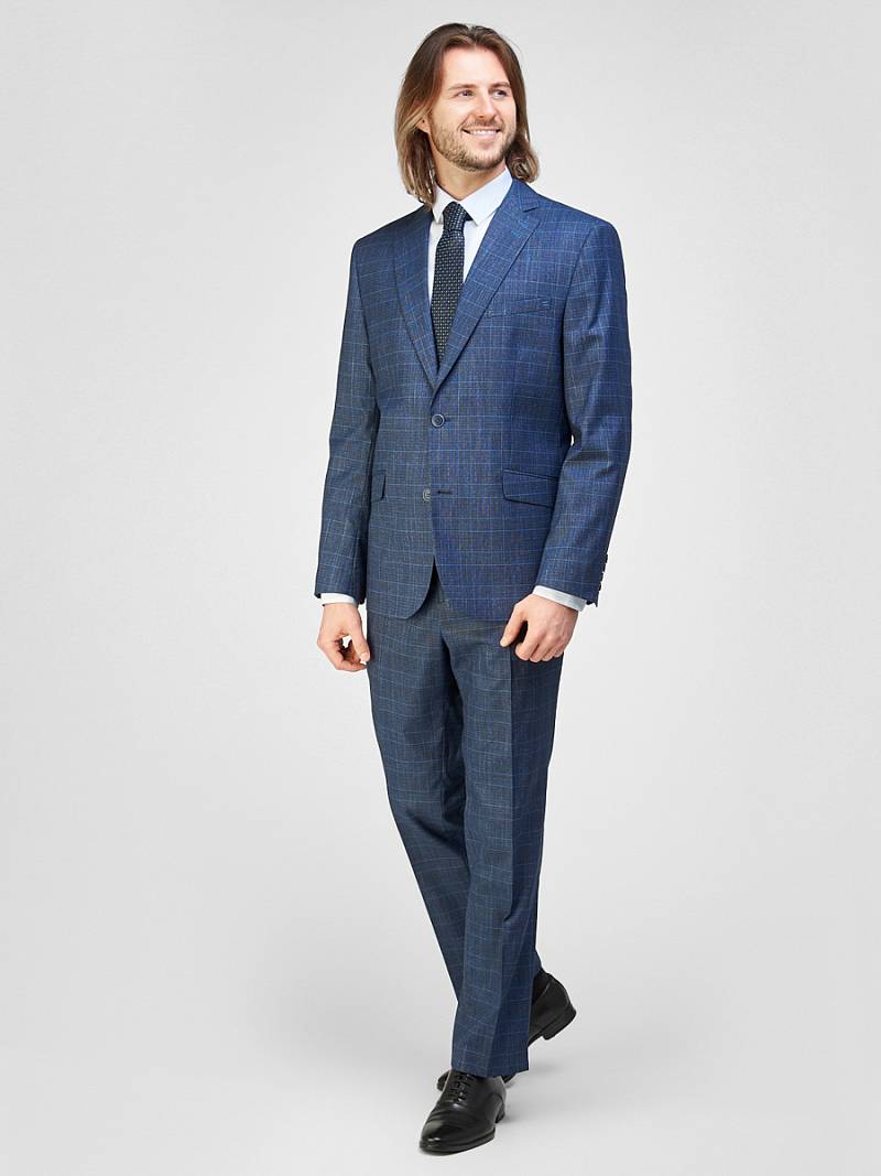 Классический костюм двойка Classic fit. Пиджак на две пуговицы, с боковыми и нагрудным карманами, по спинке две шлицы. Брюки без защипов с боковыми и одним задним карманом.
