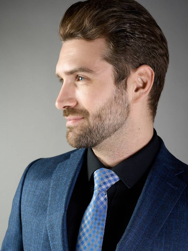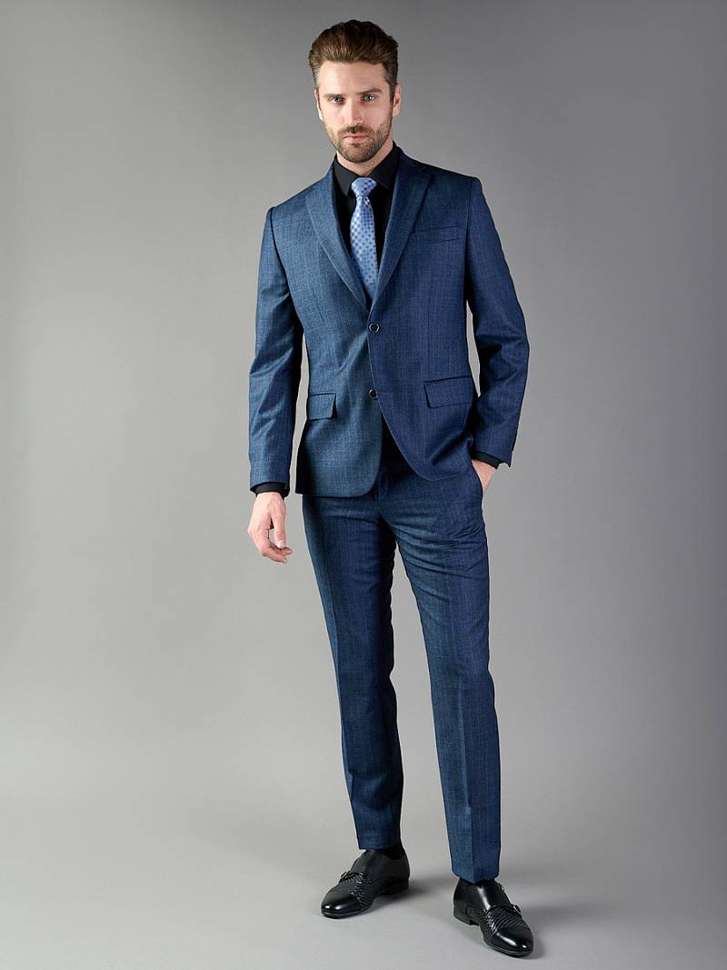 Классический костюм двойка Classic fit. Пиджак на две пуговицы, с боковыми и нагрудным карманами, по спинке две шлицы. Брюки без защипов с боковыми и одним задним карманом.