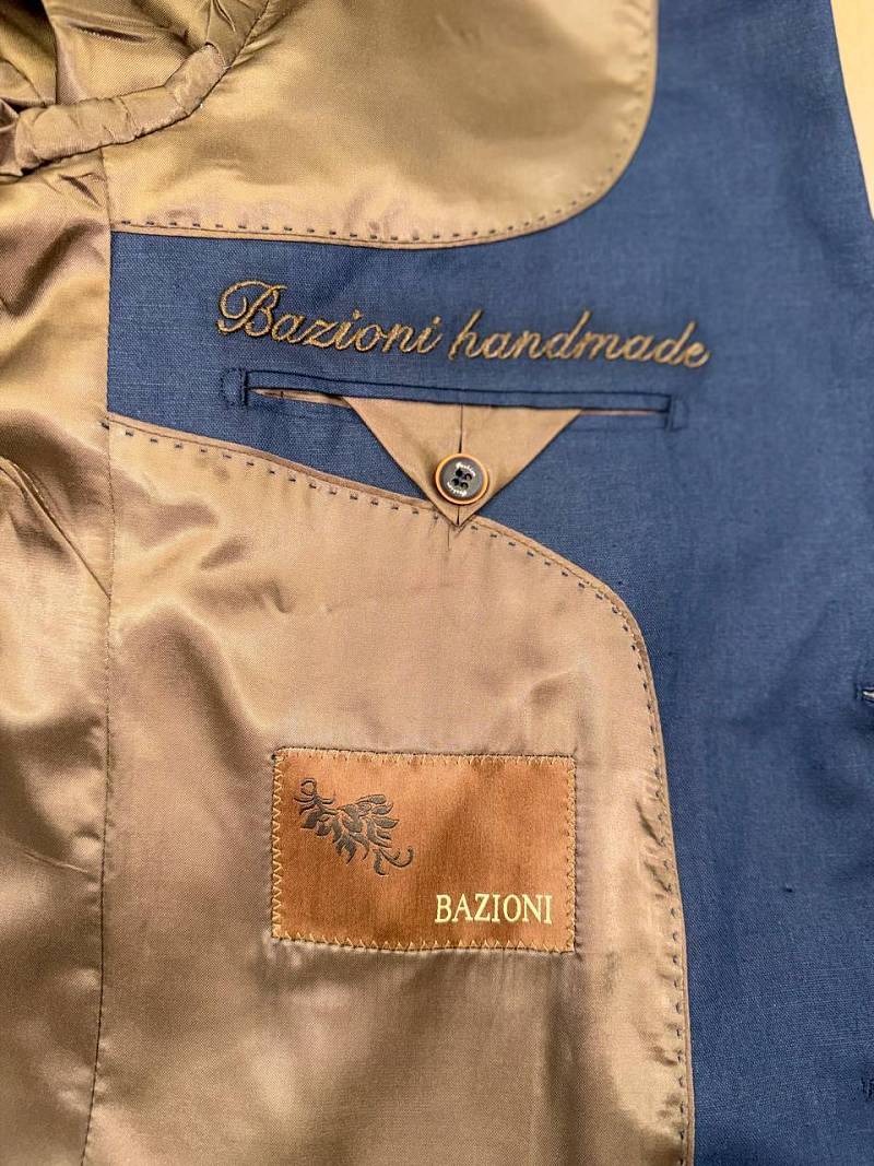 Представляем костюм, воплощающий саму суть итальянского летнего шика и непревзойденного мастерства. Костюм Bazioni из благородного льна – это не просто одежда, это инвестиция в вечную прохладу и безупречный силуэт. Изготовленный из льна высочайшего качества, костюм дарит непревзойденную легкость и комфорт даже в самый жаркий день. Натуральная фактура ткани с годами лишь обретает неповторимый шарм и индивидуальность. Пиджак на полуподкладке обеспечивает идеальную свободу движений, легкость и оптимальную воздухопроницаемость, сохраняя при этом безукоризненную форму. Выполненная вспушка по воротнику, лацканам, накладным карманам и рабочие петли на рукавах - штрих, отличающий костюм от массового производства. Истинное благородство кроется в деталях. Фирменная надпись «Bazioni» изящно вышита на лацкане, под воротником и внутри пиджака еще один эксклюзивный элемент и напоминание об исключительном качестве, стоящих за этим изделием. Костюм Bazioni создан для ценителей вечных ценностей. Это воплощение средиземноморской непринужденности, облаченное в безупречный крой и отшлифованное поколениями мастеров. Он станет вашим верным спутником на десятилетия, приобретая характер и становясь неотъемлемой частью вашего стиля.