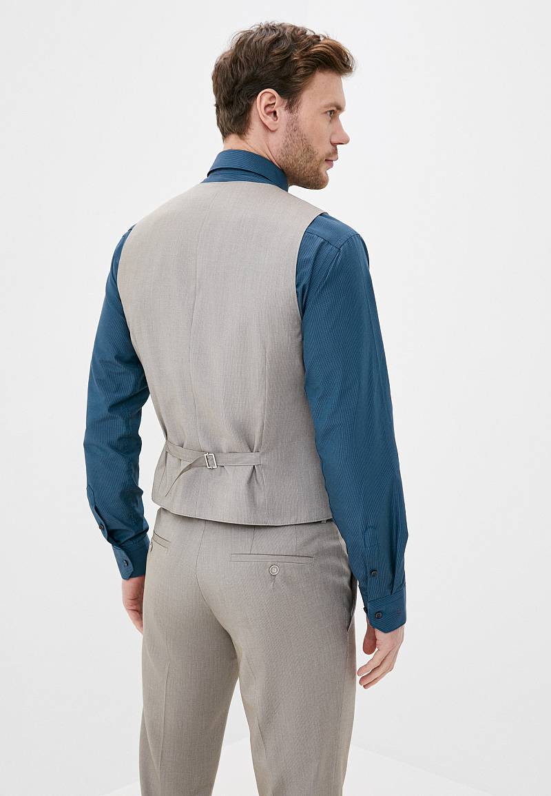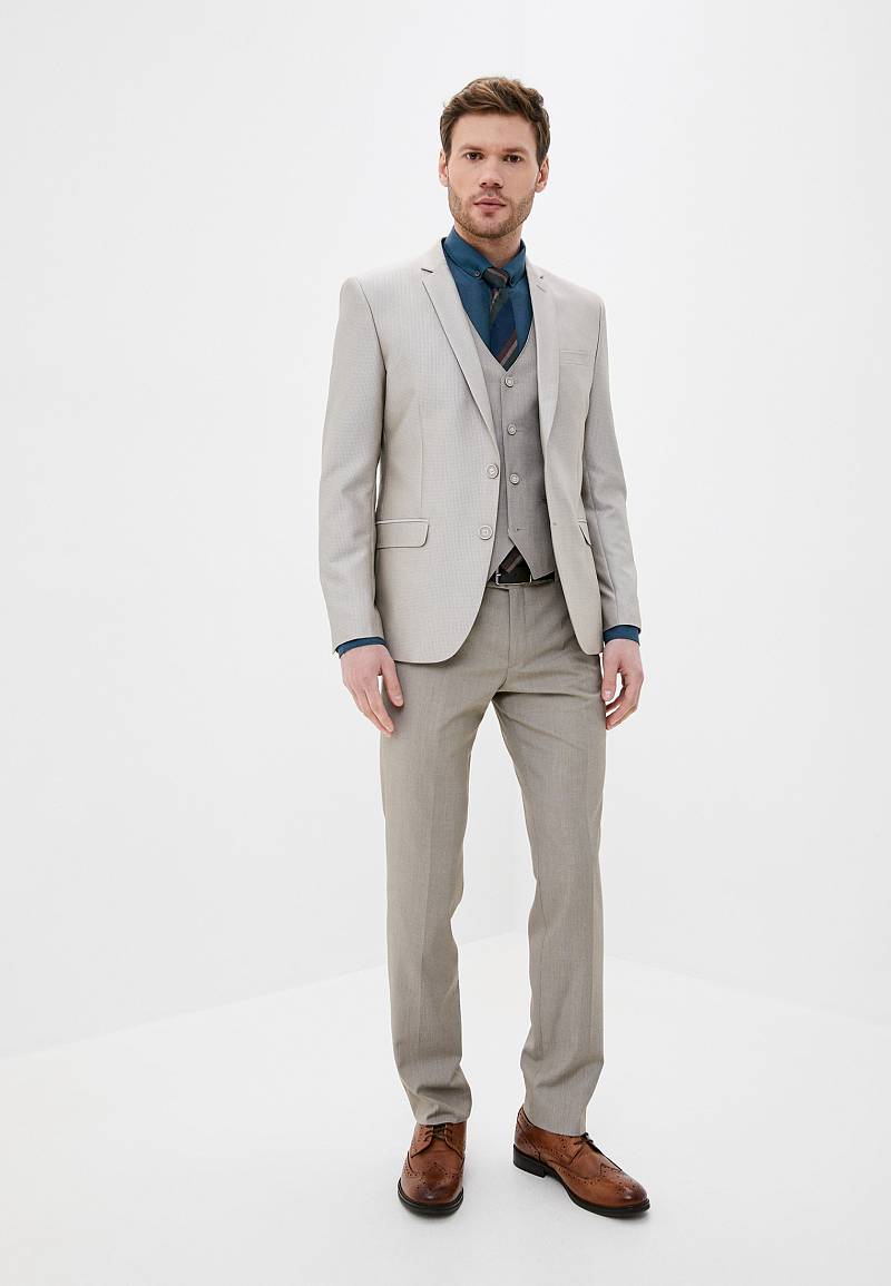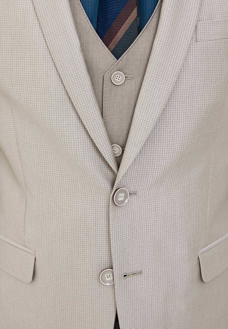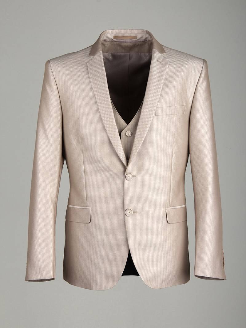 Костюм мужской тройка. Slim fit, 2 пуговицы, 2 шлицы, Пиджак из ткани с мелкоузорчатым рисунком .Брюки и жилет из однотонной ткани "гладь"компаньон. Спинка жилета полностью из ткани.