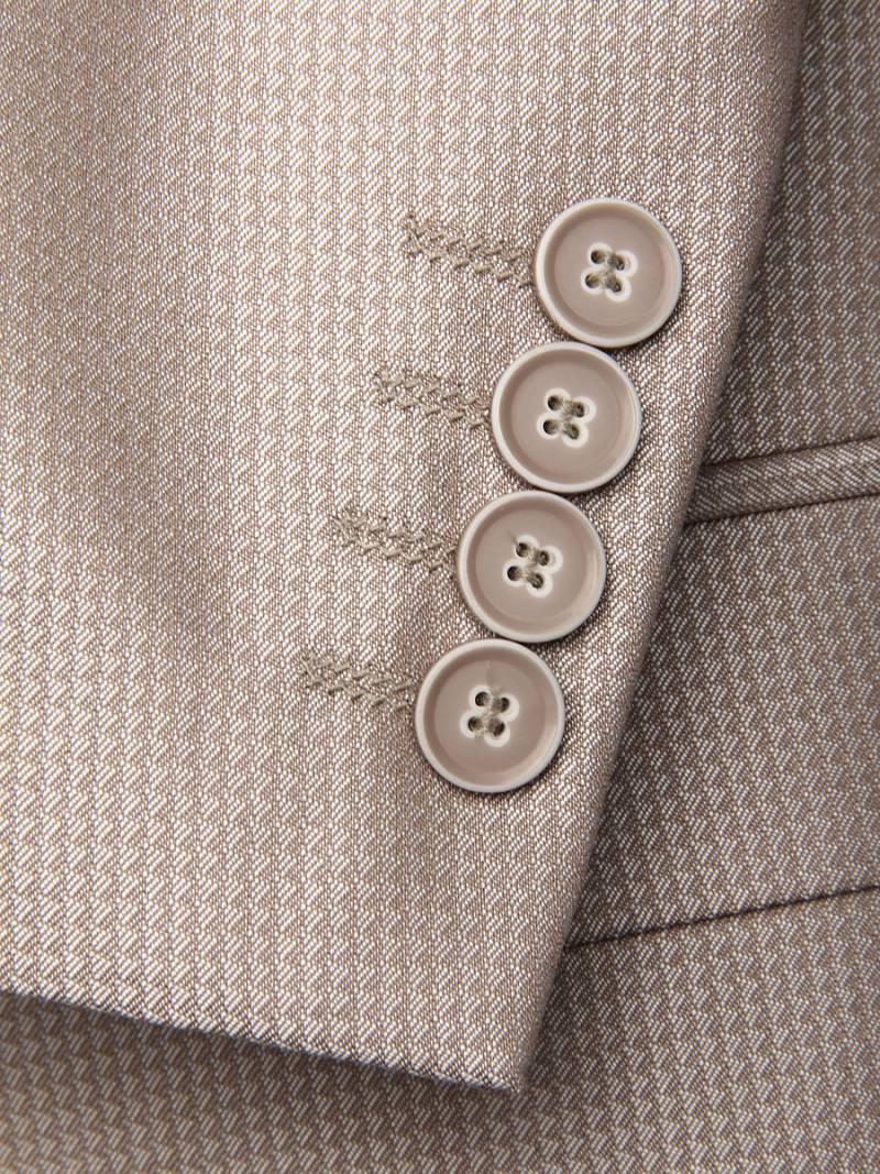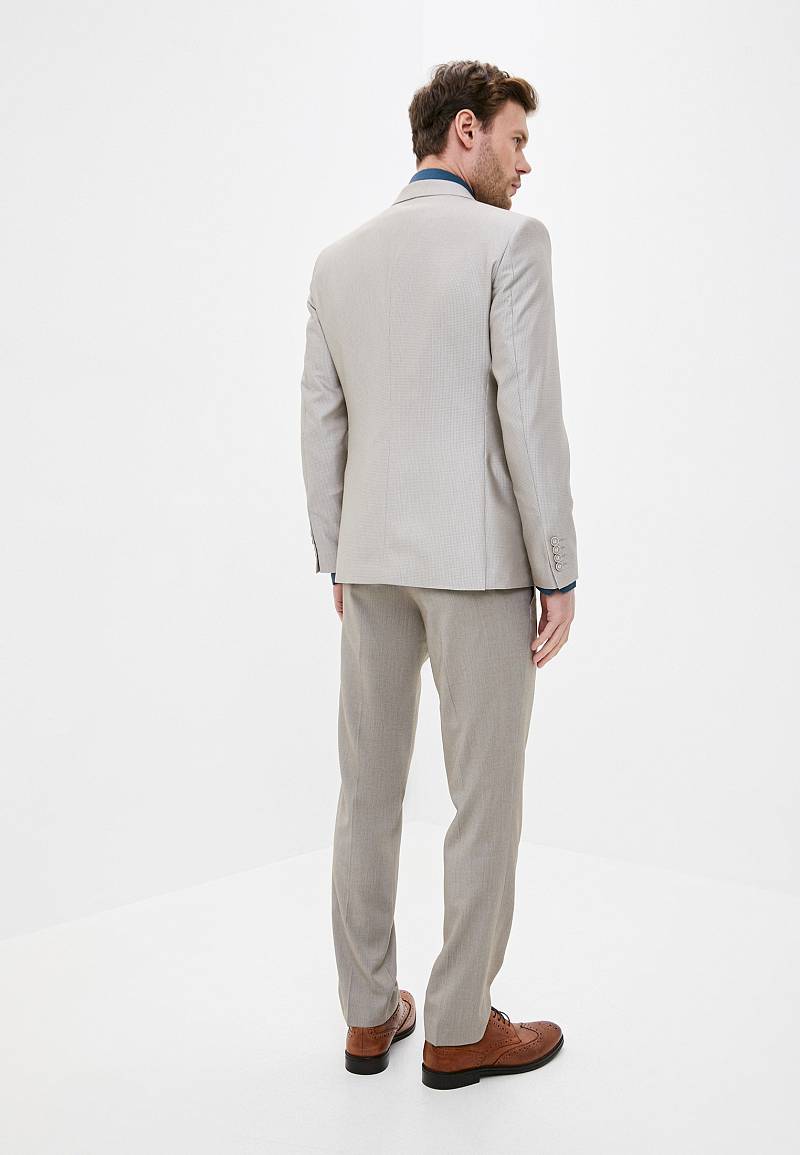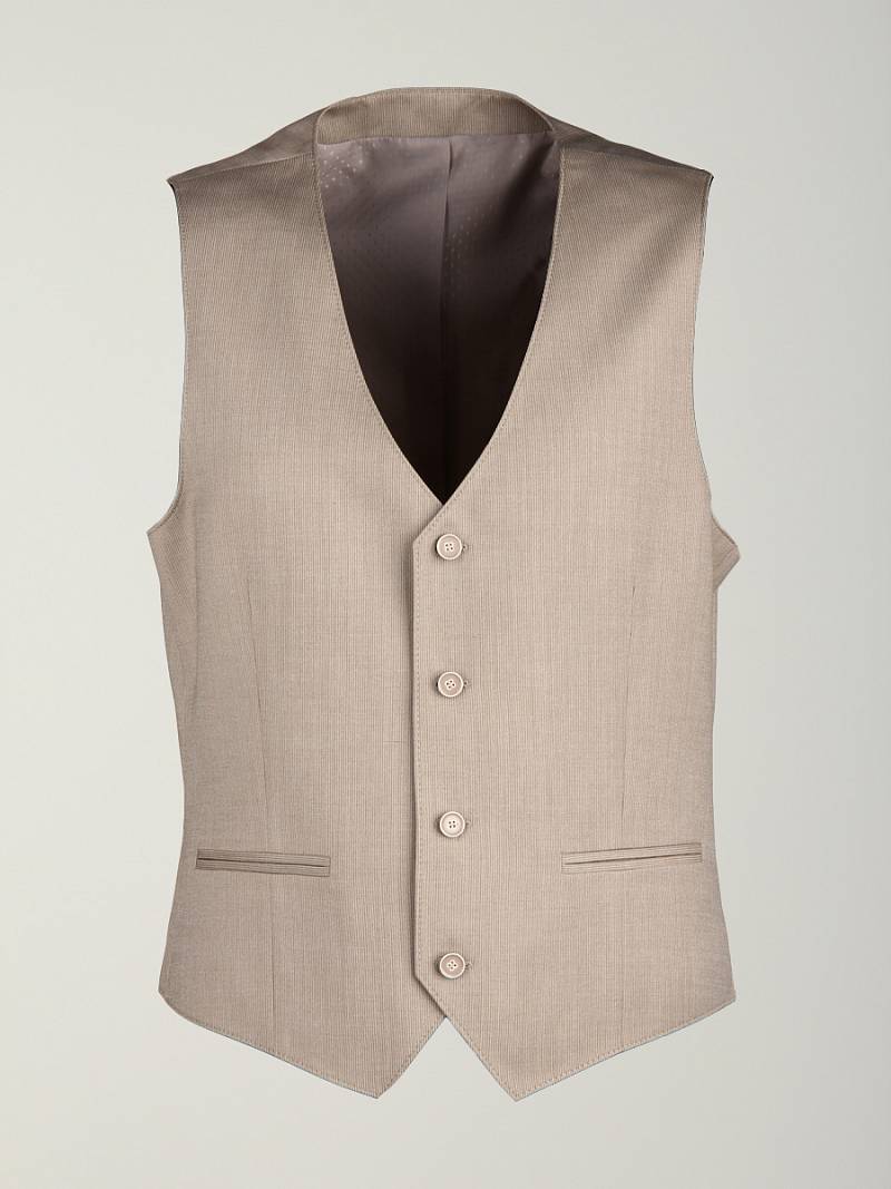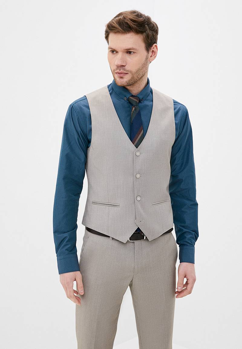 Костюм мужской тройка. Slim fit, 2 пуговицы, 2 шлицы, Пиджак из ткани с мелкоузорчатым рисунком .Брюки и жилет из однотонной ткани "гладь"компаньон. Спинка жилета полностью из ткани.