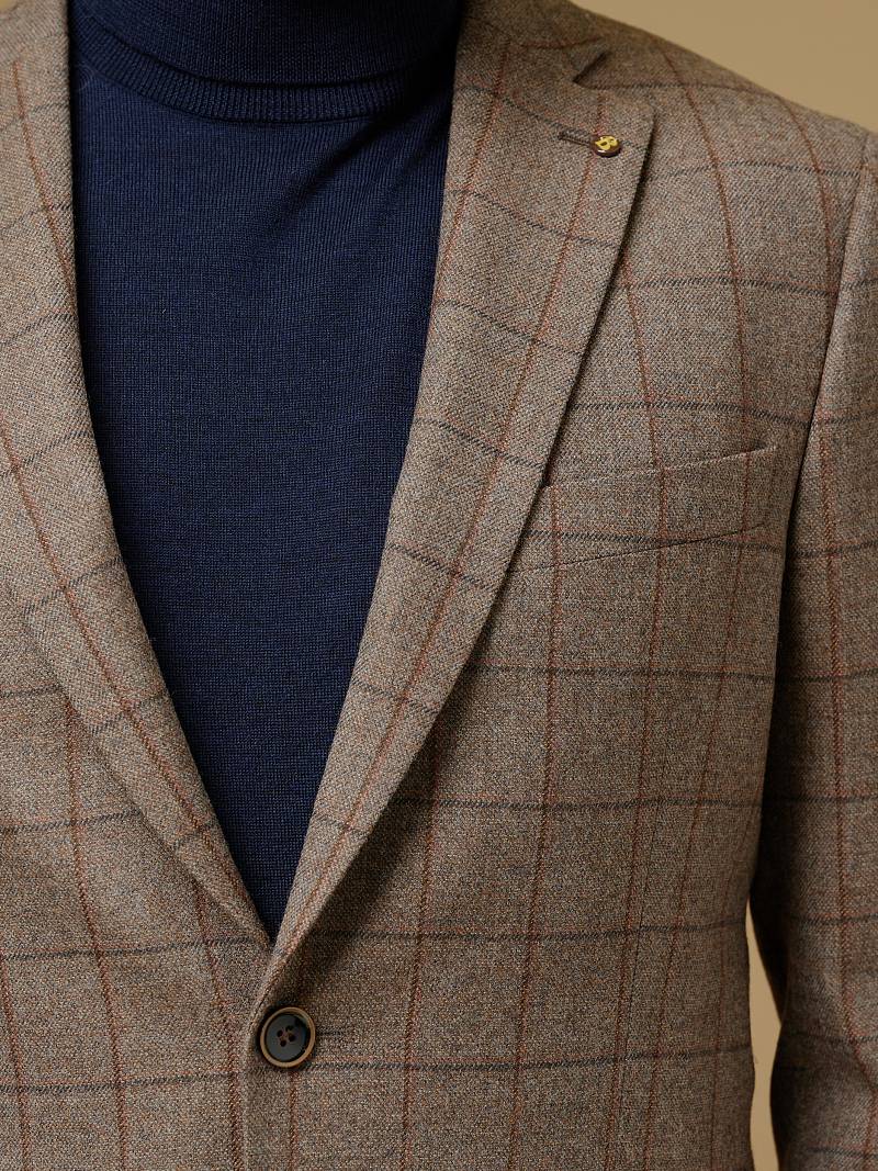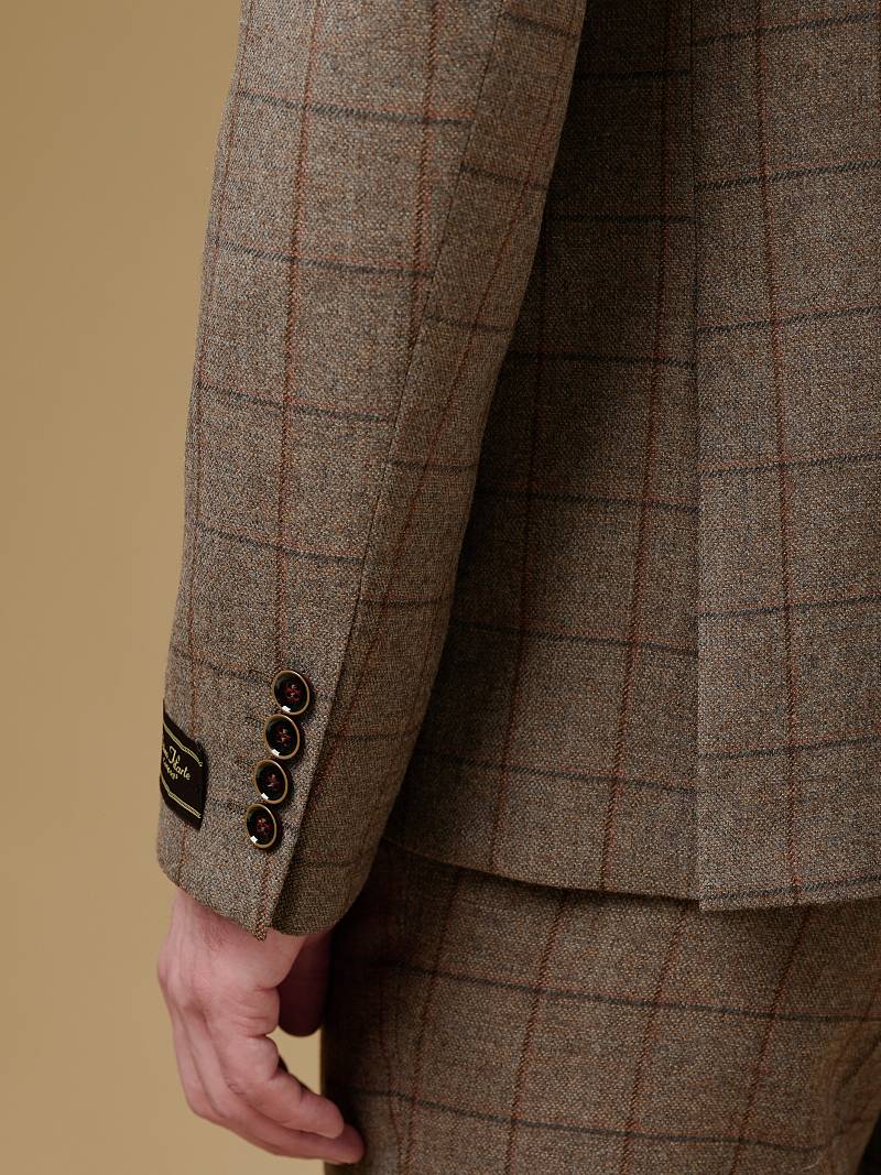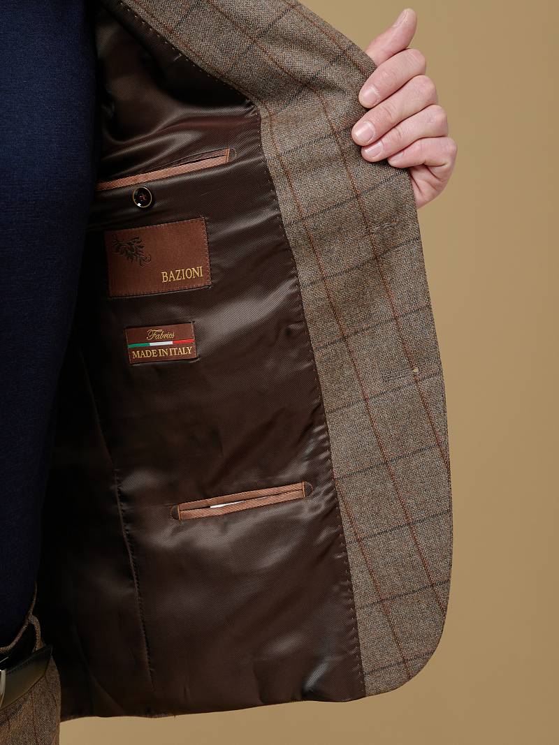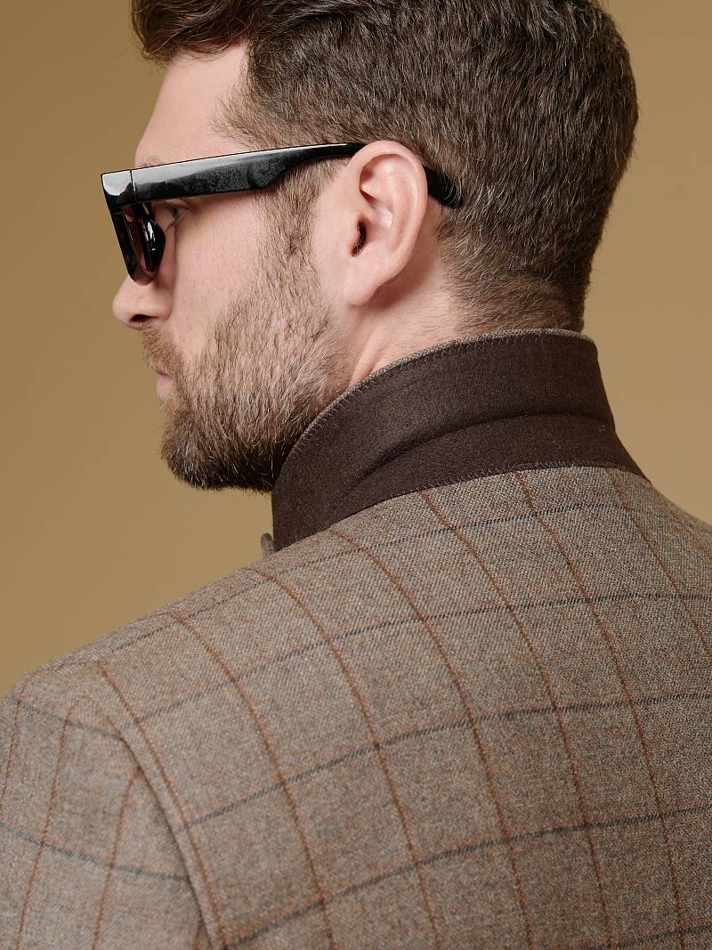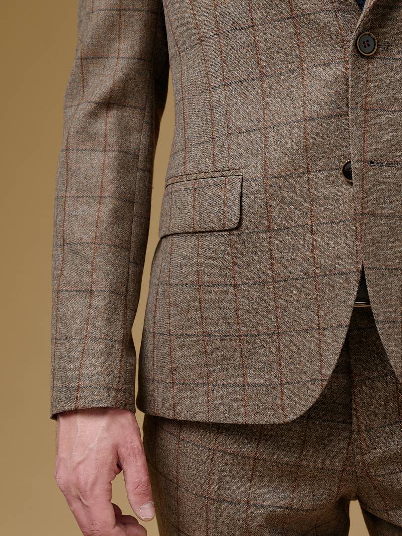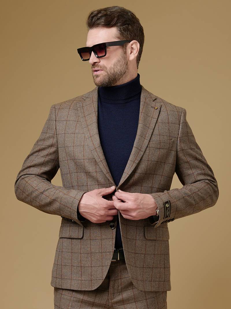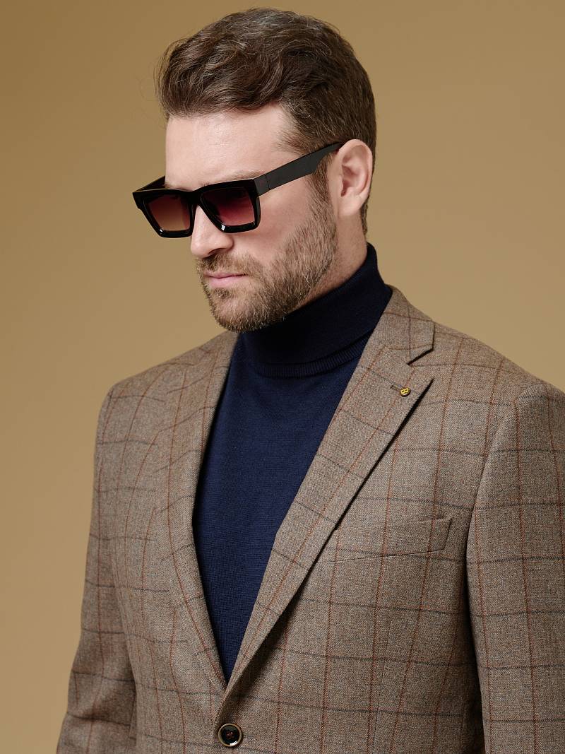 Классический костюм двойка Slim fit (ПРИЛЕГАЮЩИЙ СИЛУЭТ), рекомендуется брать на размер больше. Приталенная однобортная модель на две пуговицы из шерстяной ткани серо-бежевого цвета и ненавязчивой клетки гармонично впишется в нестрогий офисный образ. Пиджак с классической шириной лацкана и мягкой линией плеч отлично сядет по фигуре, а расположенные по спинке две шлицы обеспечат дополнительный комфорт и свободу движения. Лацканы украсили небольшим значком в виде эмблемы бренда. Обработан пиджак шелковой подкладкой с двумя внутренними карманами. Для придания образу торжественности подкладку нагрудного кармана можно использовать как платок-паше. Брюки прямого кроя со стрелками и заниженной посадкой, с боковыми наклонными карманами и двумя задними карманами "в рамку". Верхний срез брюк обработан поясом с корсажной лентой и шлевками под ремень. Дизайнеры марки BAZIONI тщательно подходят к выбору материалов. Пуговицы подбираются и красятся индивидуально под каждую ткань, а прикладные материалы используют только от передовых производителей. Костюм мужской, классический, повседневный, молодежный, casual, для работы в офисе, модный, для мужа, сына, брата, на праздник.