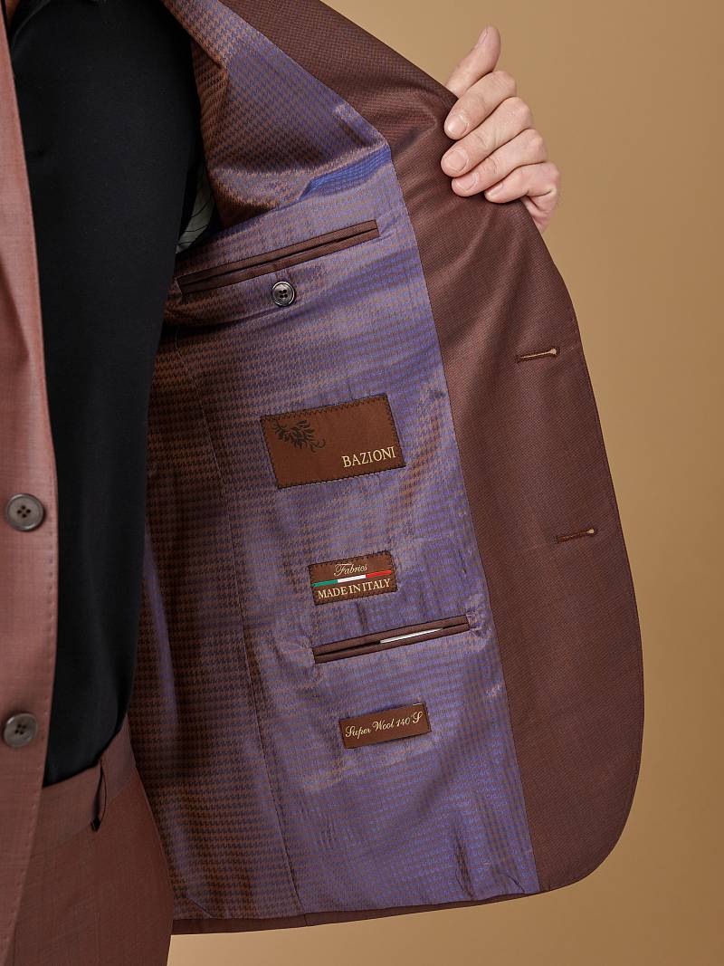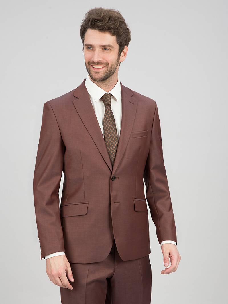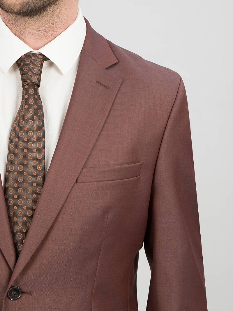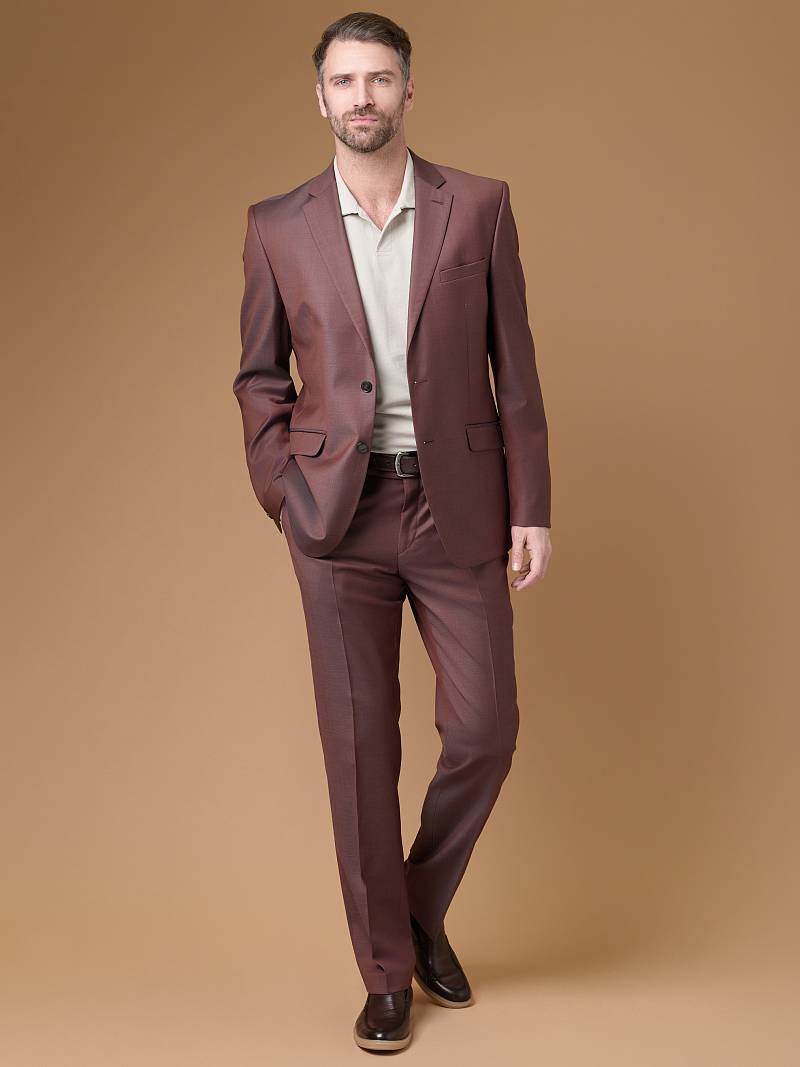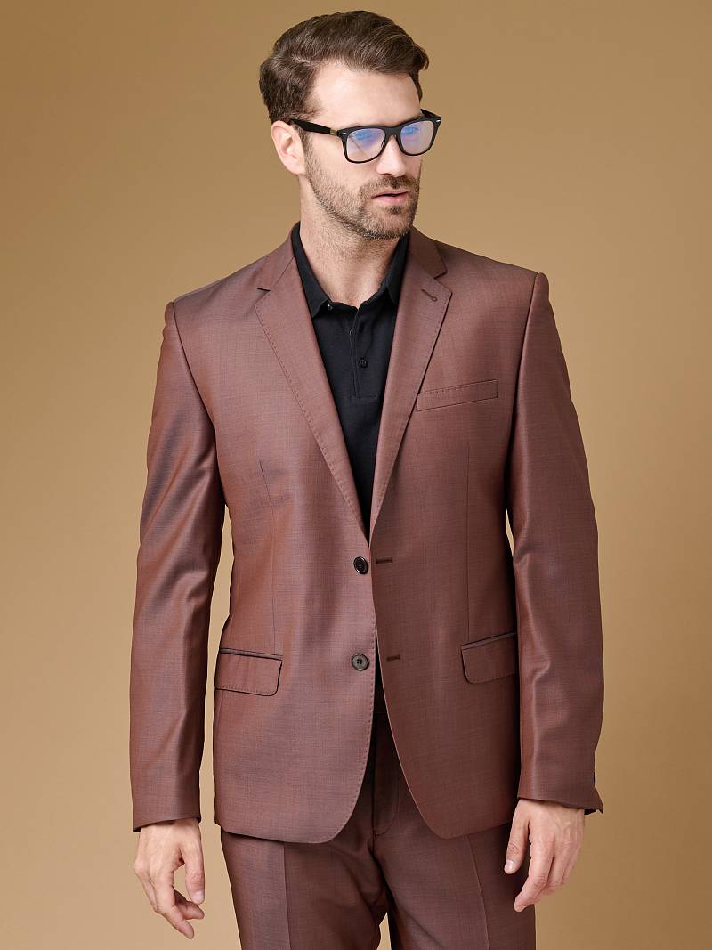 Классический костюм двойка Classic fit. Пиджак на две пуговицы, с боковыми и нагрудным карманами, по спинке две шлицы. Брюки без защипов с боковыми и одним задним карманом.