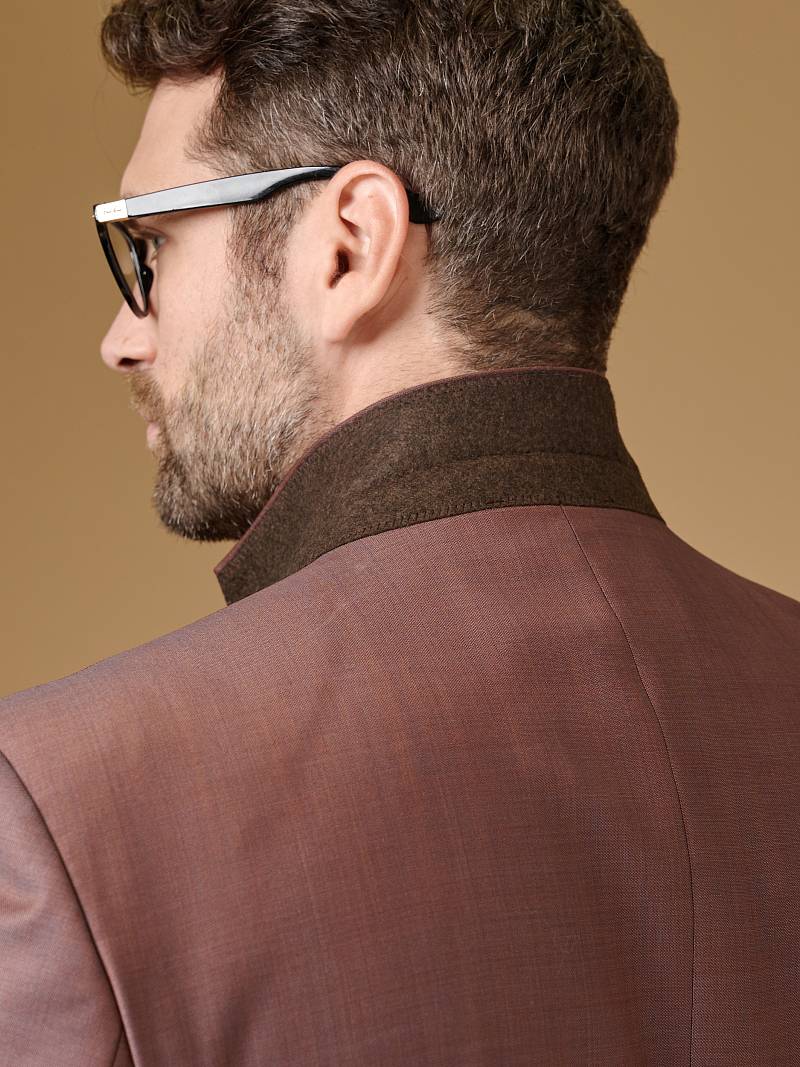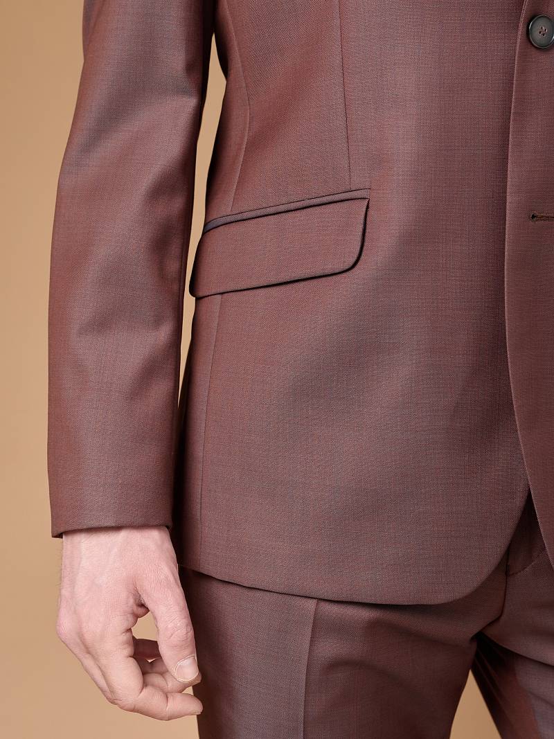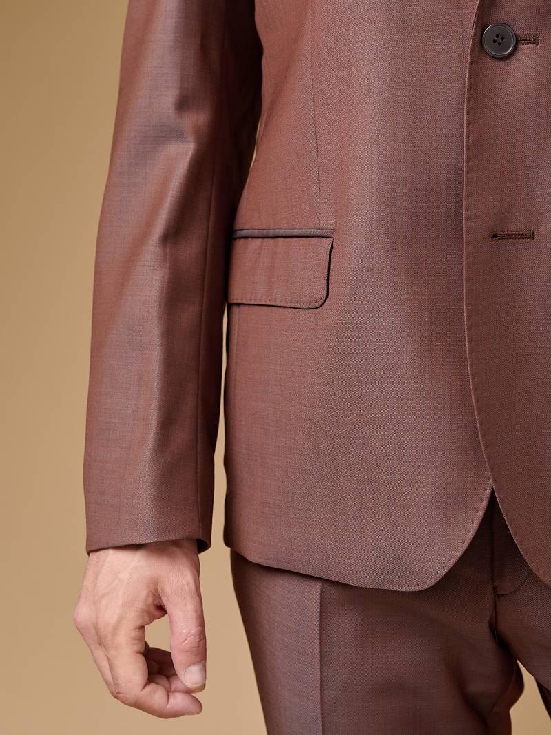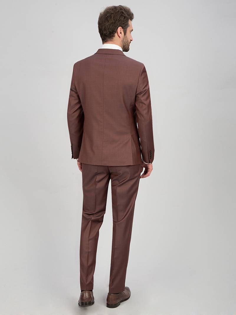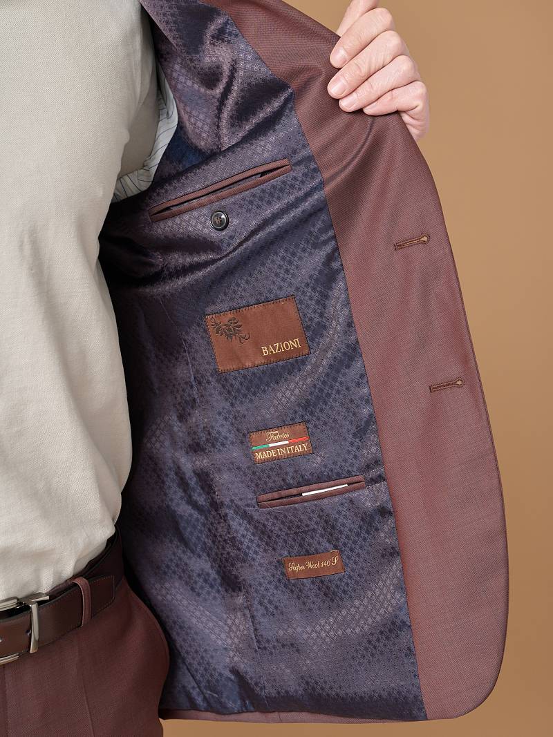 Классический костюм двойка Classic fit. Пиджак на две пуговицы, с боковыми и нагрудным карманами, по спинке две шлицы. Брюки без защипов с боковыми и одним задним карманом.