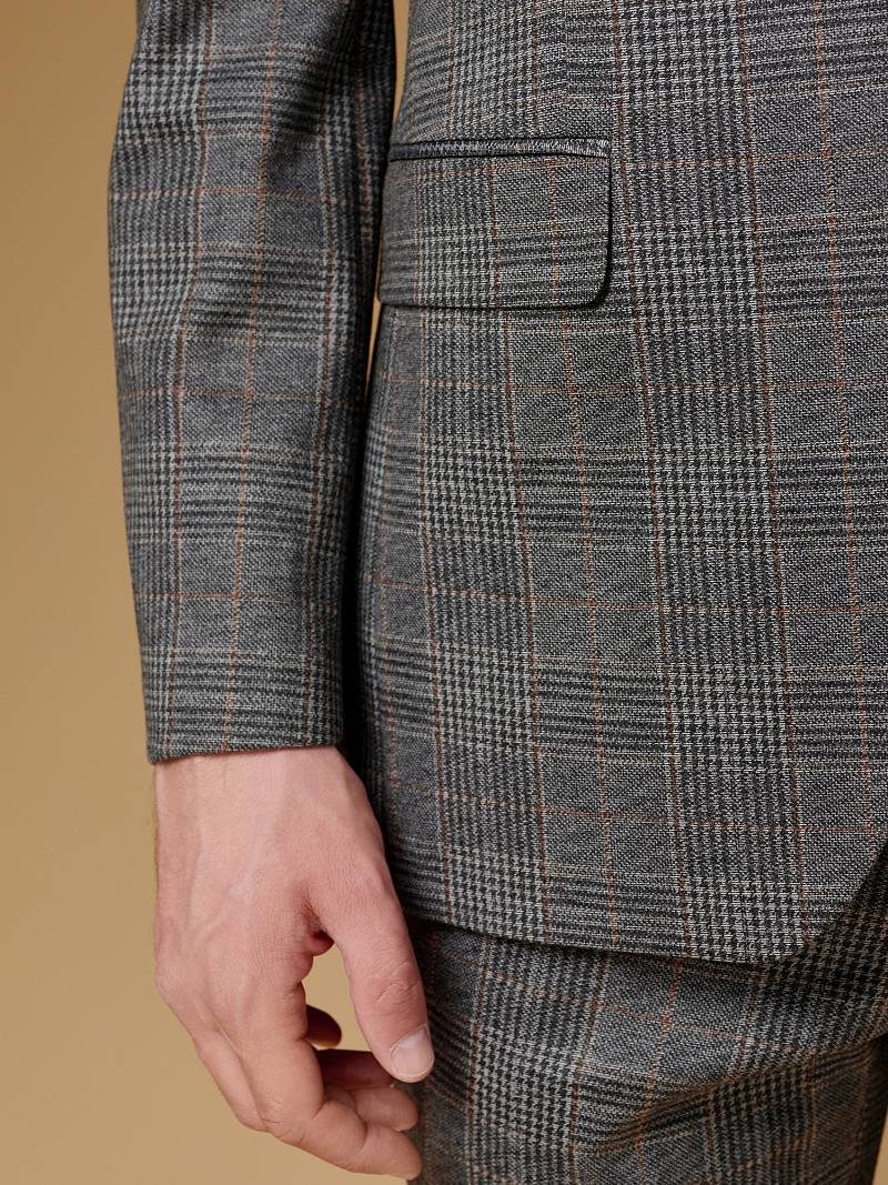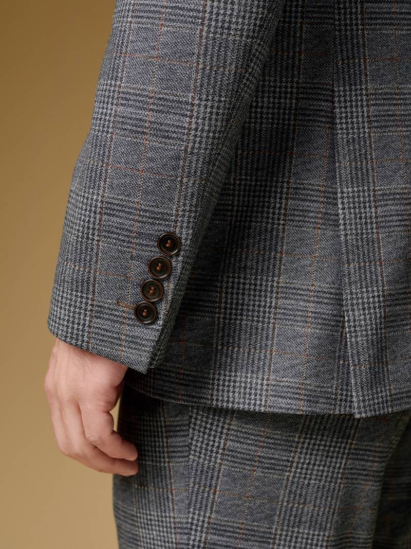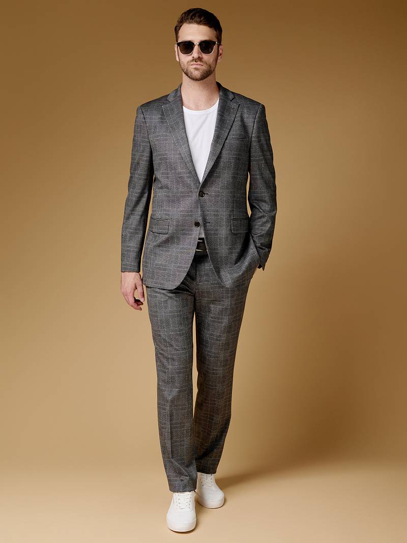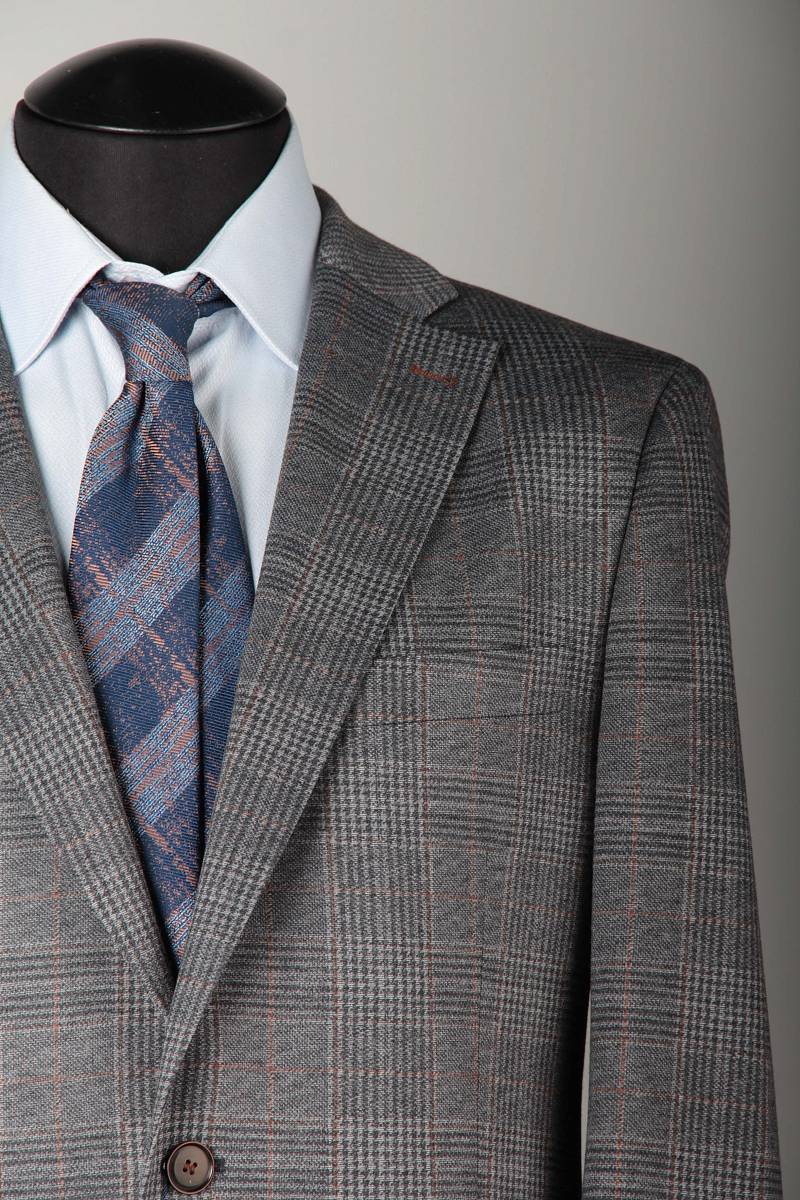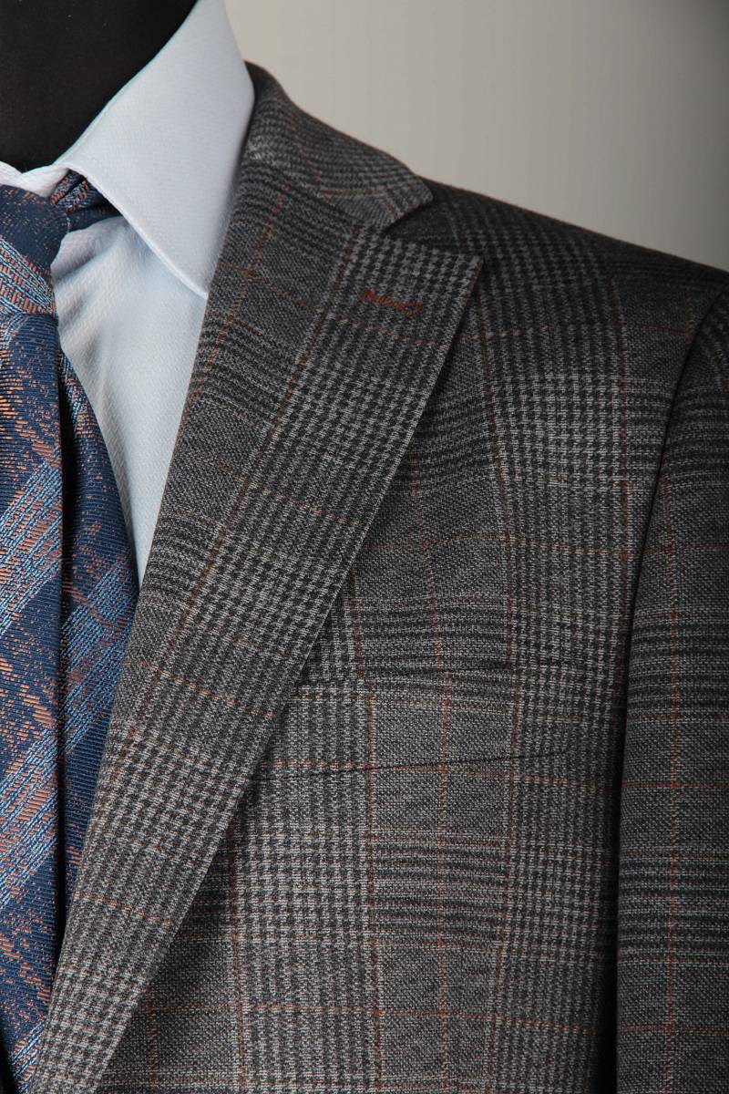 Классический костюм двойка Slim fit (ПРИЛЕГАЮЩИЙ СИЛУЭТ), рекомендуется брать на размер больше.Пиджак однобортный на две пуговицы, с двумя боковыми карманами с клапанами и нагрудной листочкой. Рукава втачные, двухшовные со шлицей и четырьмя декоративными пуговицами. По спинке расположены две шлицы. Пиджак на подкладке, с двумя внутренними карманами. Брюки без защипов, с боковыми наклонными карманами и двумя задними карманами «в рамку». Передние половинки на подкладке. Верхний срез брюк обработан поясом с корсажной лентой и шлевками под ремень. Застежка обработана на тесьму-молнию, с петлей-пуговицей на поясе и усилен металлическим крючком.