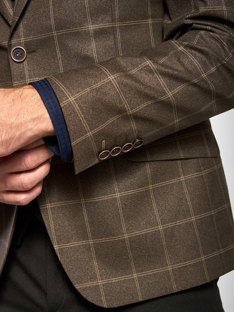 Slim fit, Классический мужской пиджак на две пуговицы, с боковыми и нагрудным карманами, по спинке две шлицы.