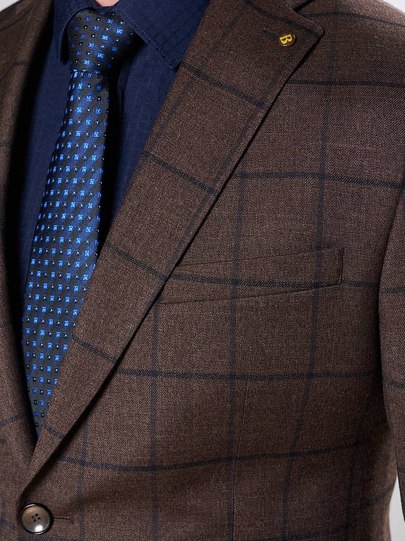 Классический костюм двойка Slim fit. Пиджак на две пуговицы, с боковыми и нагрудным карманами, по спинке две шлицы. Брюки без защипов с боковыми и одним задним карманом.
