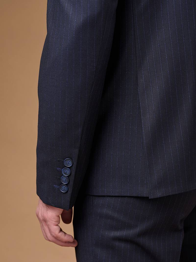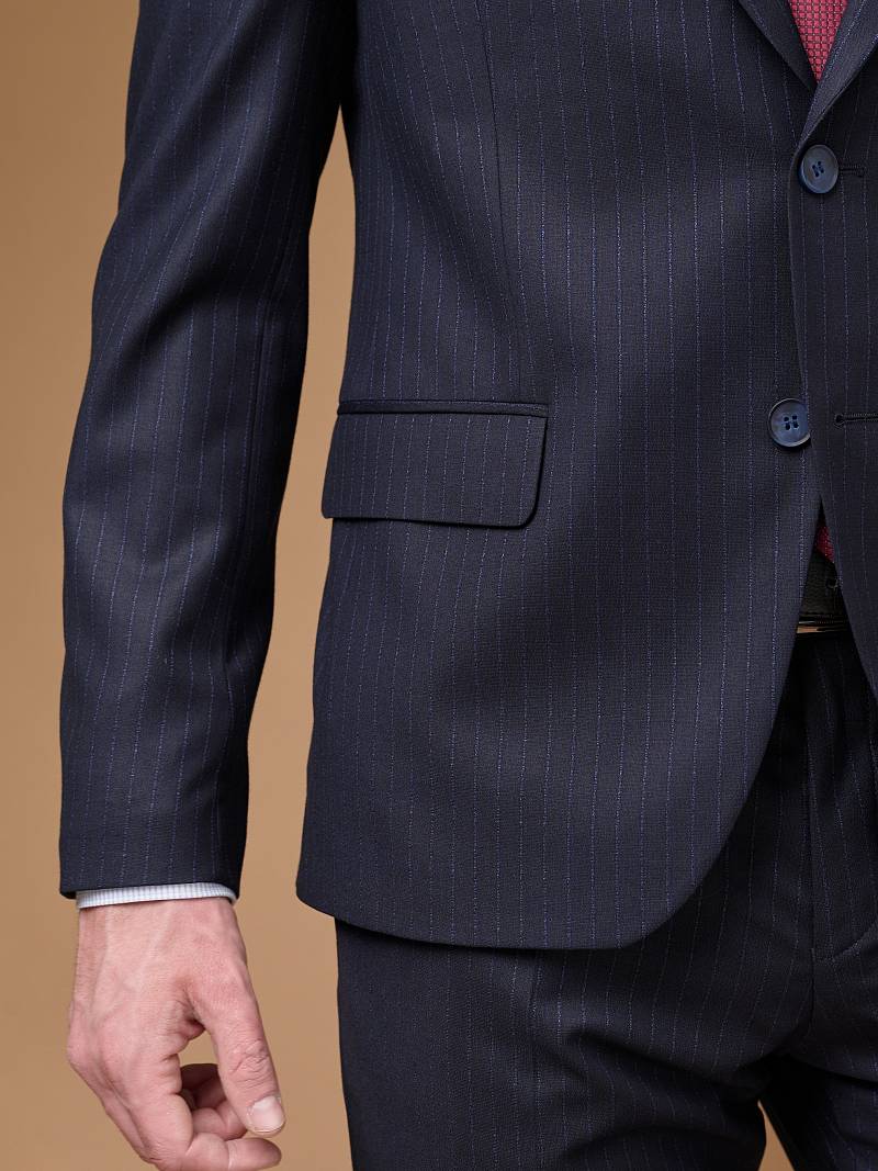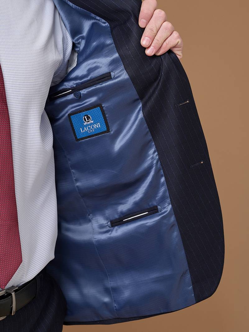 Slim fit (ПРИЛЕГАЮЩИЙ СИЛУЭТ), рекомендуется брать на размер больше. Классический костюм двойка марки LACONI– это идеальное сочетание стиля и комфорта для мужчин, которые ценят качественный пошив и изысканный дизайн. Для пошива лаконичного классического костюма в тонкую полоску использовали ткань с содержанием прочных волокон лайкры, которые не сковывают движение и обеспечивает дополнительный комфорт и удобство. Пиджак с острым лацканом и мягкой линией плеч дополнили сзади двумя шлицами, модель садится точно по фигуре и отлично подходит для любого случая в жизни. Пиджак обработан на подкладке с двумя внутренними карманами. Для придания образу торжественности подкладку нагрудного кармана можно использовать как платок. Брюки прямого кроя со стрелками и заниженной посадкой, с боковыми наклонными карманами и одним задним карманом "в рамку". Верхний срез брюк обработан поясом с корсажной лентой и шлевками под ремень. Дизайнеры марки LACONI тщательно подходят к выбору материалов. Пуговицы подбираются и красятся индивидуально под каждую ткань, а прикладные материалы используют только от передовых производителей. Костюм мужской, классический, нарядный, повседневный, молодежный, casual, для работы в офисе, модный, для мужа, сына, брата, на праздник.