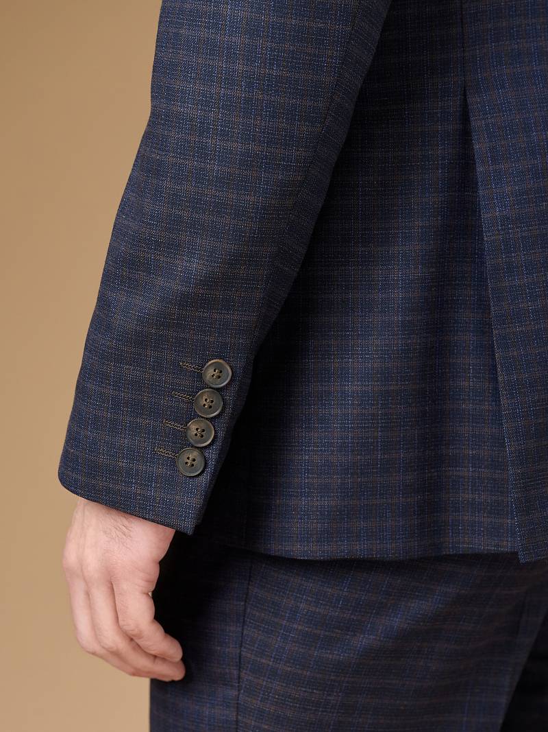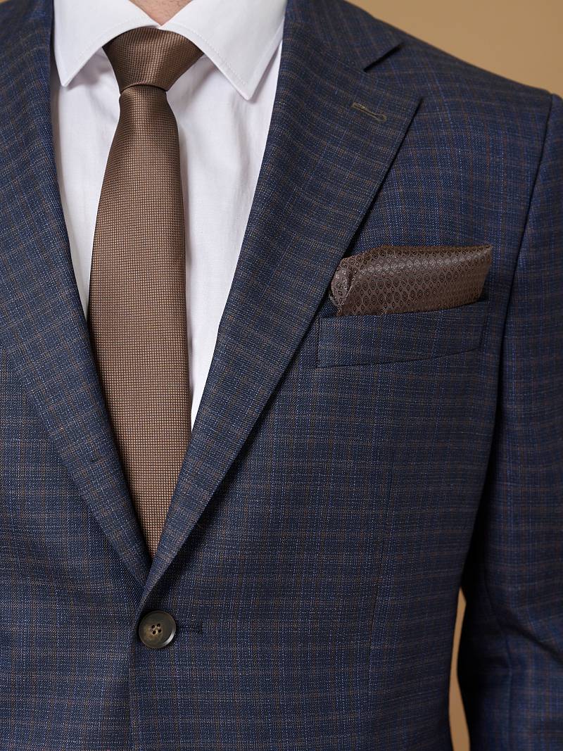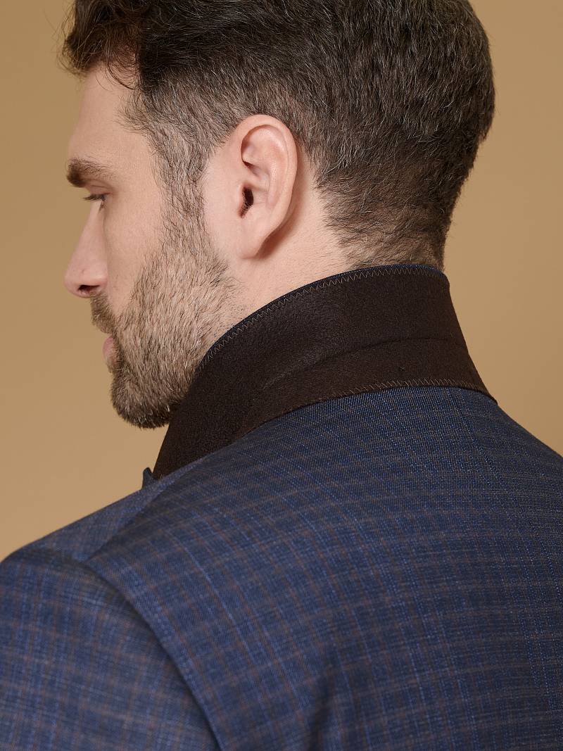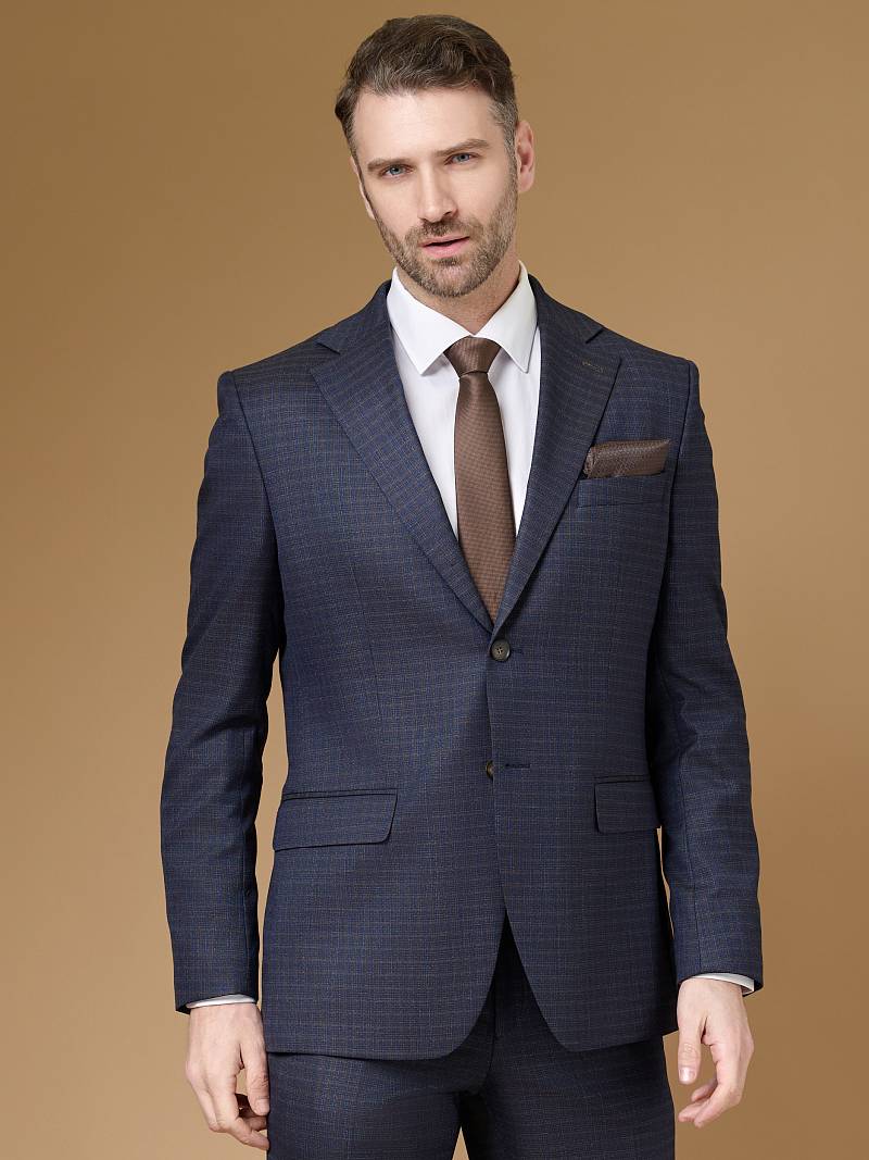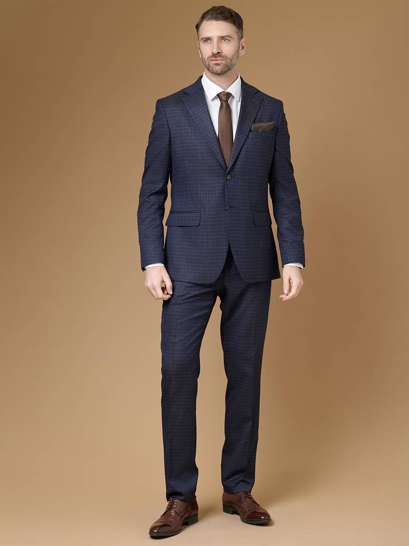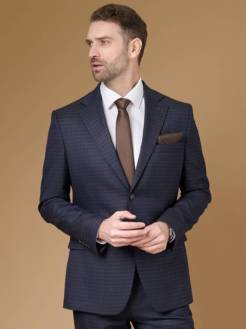 Classic fit (ПОЛУПРИЛЕГАЮЩИЙ СИЛУЭТ). Универсальный костюм двойка марки LACONI– это идеальный баланс между внешним видом и комфортом. Слегка приталенная однобортная модель на две пуговицы сшита из ткани спокойного синего цвета и ненавязчивой клетки. Пиджак с широкими лацканами и мягкой линией плеч дополнили сзади двумя шлицами, поэтому он садится точно по фигуре. Внутри пиджак обработан на подкладке с двумя внутренними карманами. Для придания образу торжественности подкладку нагрудного кармана можно использовать как платок. Брюки прямого кроя со стрелками и классической посадкой, с боковыми наклонными карманами и одним задним карманом "в рамку". Верхний срез брюк обработан поясом с корсажной лентой и шлевками под ремень. Дизайнеры марки LACONI тщательно подходят к выбору материалов. Пуговицы подбираются и красятся индивидуально под каждую ткань, а прикладные материалы используют только от передовых производителей.