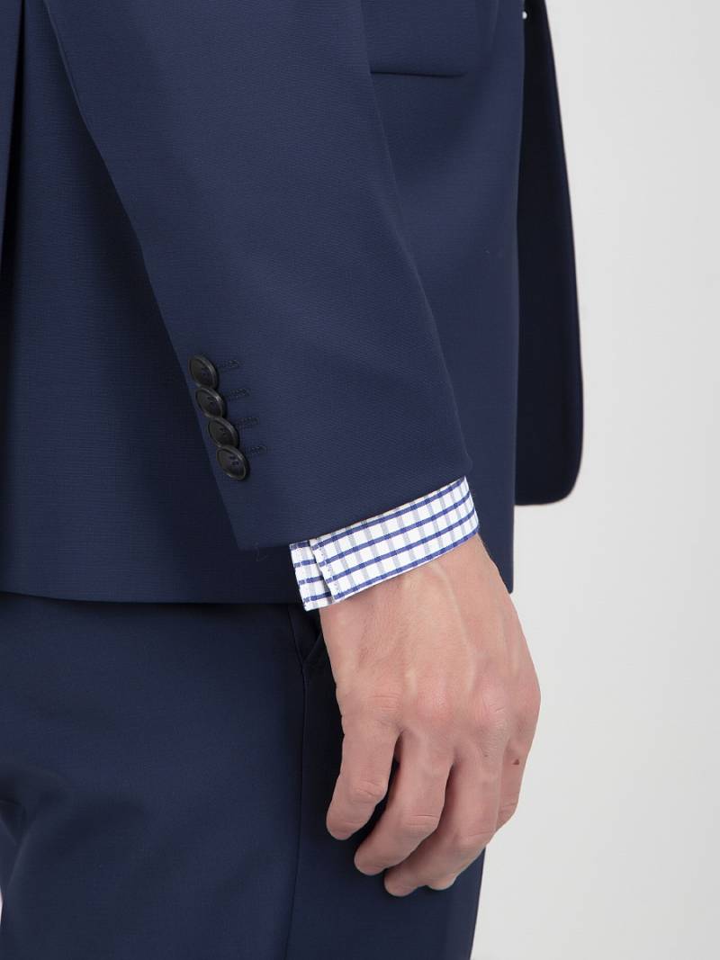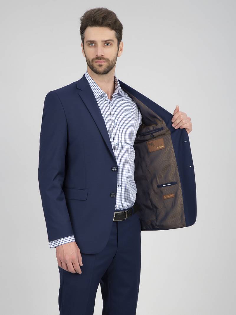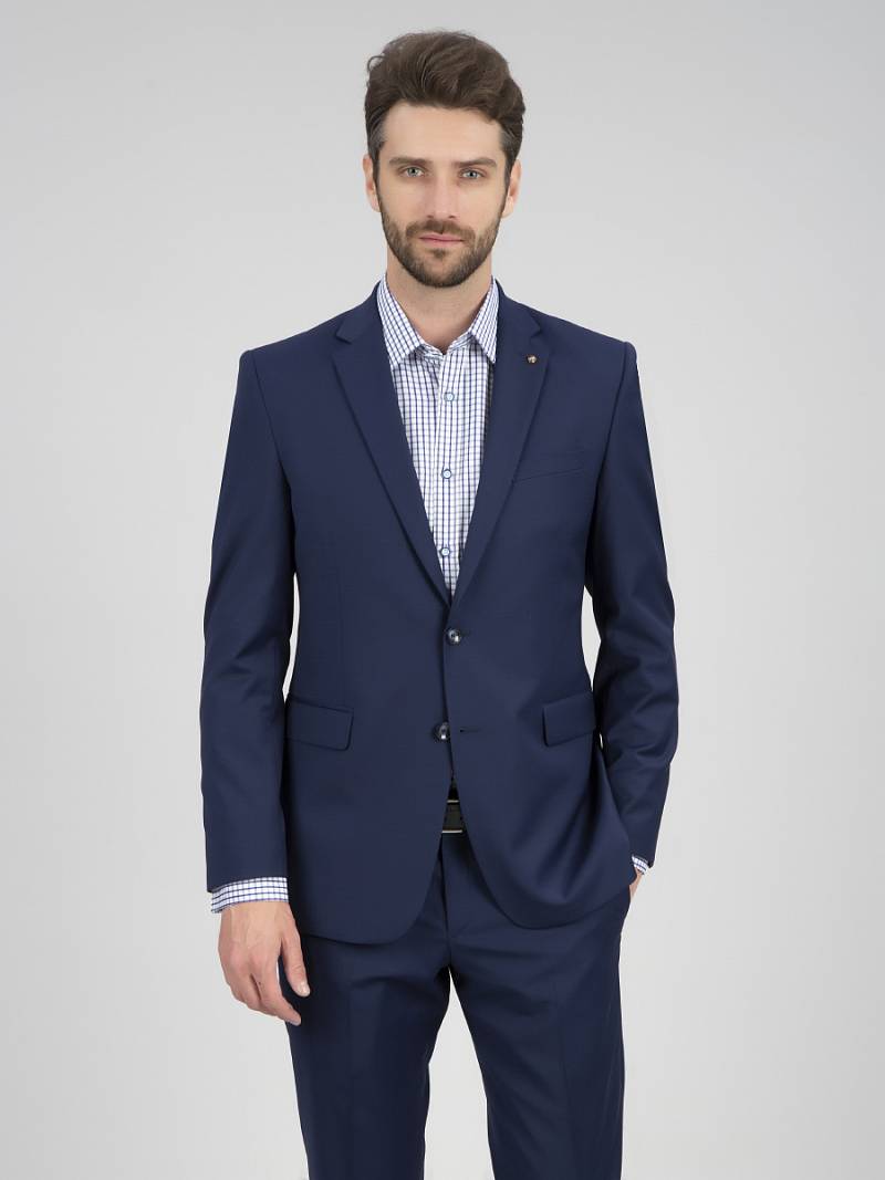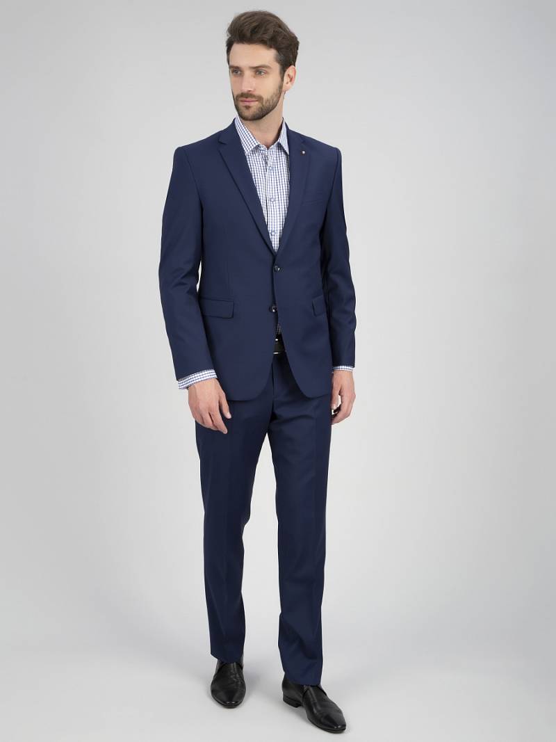 Классический костюм двойка Classic fit (ПОЛУПРИЛЕГАЮЩИЙ СИЛУЭТ). Пиджак на две пуговицы, с боковыми и нагрудным карманами, по спинке две шлицы. Брюки без защипов с боковыми и двумя задними карманами.