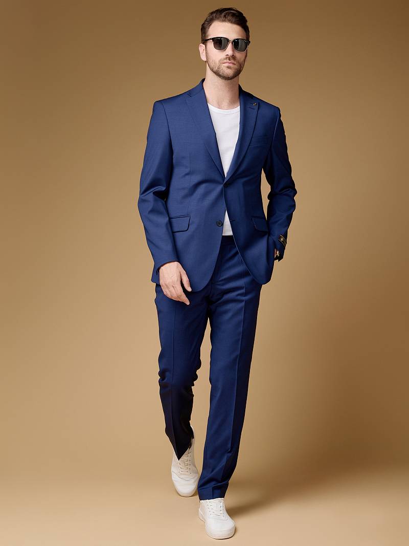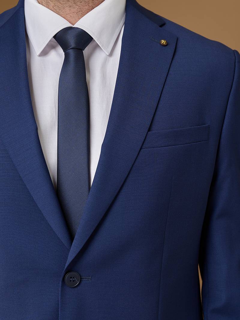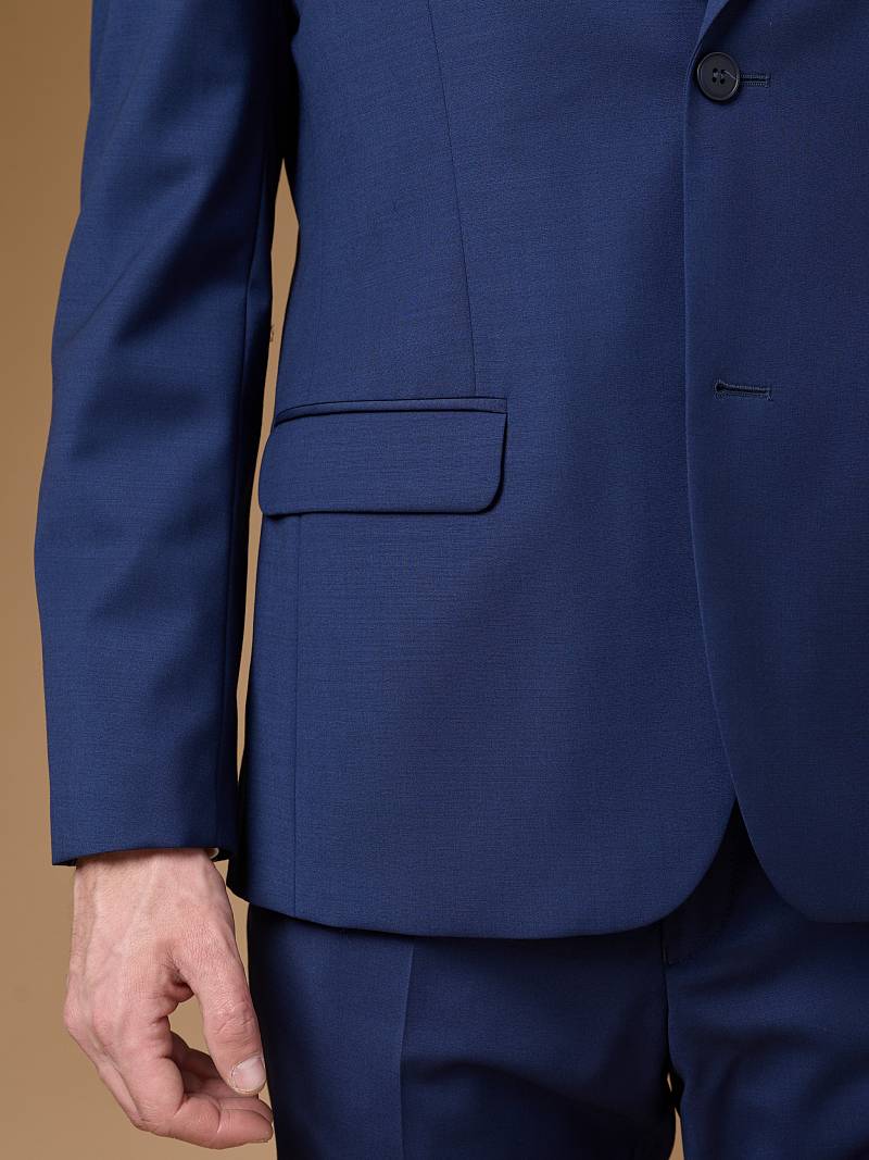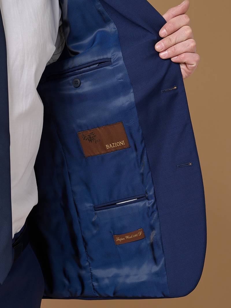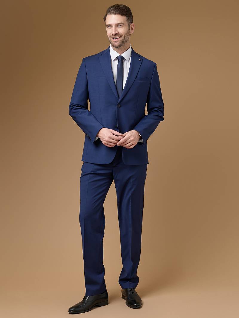 Classic fit (ПОЛУПРИЛЕГАЮЩИЙ СИЛУЭТ). Классический костюм двойка марки BAZIONI– это идеальное сочетание стиля и комфорта для мужчин. Для пошива лаконичного темно-синего, однотонного костюма использовали премиальную шерсть с содержанием прочных волокон лайкры, которые не сковывают движение и обеспечивает дополнительный комфорт и удобство. Пиджак с классической шириной лацкана и мягкой линией плеч отлично сядет по фигуре, а расположенные по спинке две шлицы обеспечат дополнительный комфорт и свободу движения. Для придания образу торжественности подкладку нагрудного кармана можно использовать как платок-паше. Лацканы украсили небольшим значком в виде эмблемы бренда. Обработан пиджак шелковой подкладкой с двумя внутренними карманами. Брюки прямого кроя со стрелками и заниженной посадкой, с боковыми наклонными карманами и двумя задними карманами "в рамку". Верхний срез брюк обработан поясом с корсажной лентой и шлевками под ремень. Дизайнеры марки BAZIONI тщательно подходят к выбору материалов. Пуговицы подбираютс