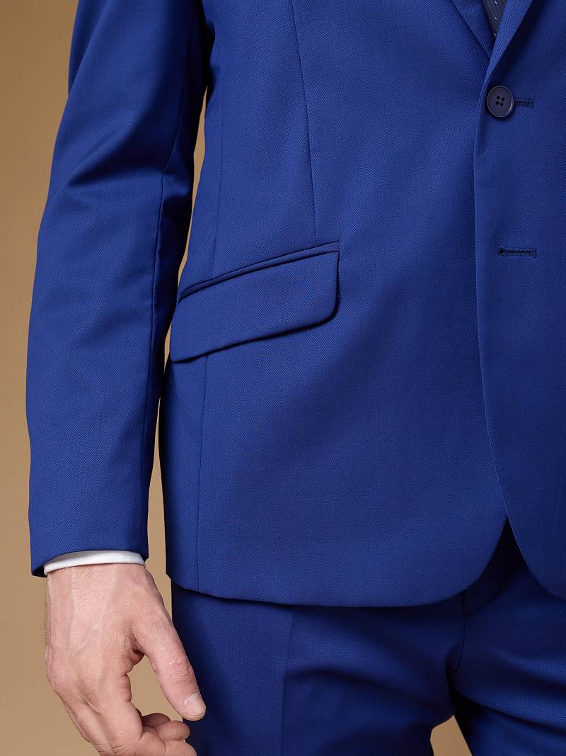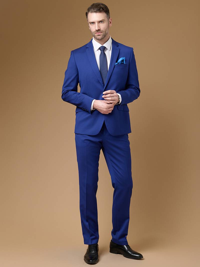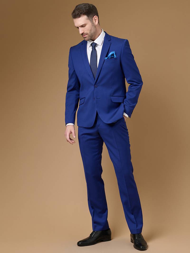 Классический костюм двойка Classic fit. Пиджак на две пуговицы, с боковыми и нагрудным карманами, по спинке две шлицы. Брюки без защипов с боковыми и одним задним карманом.