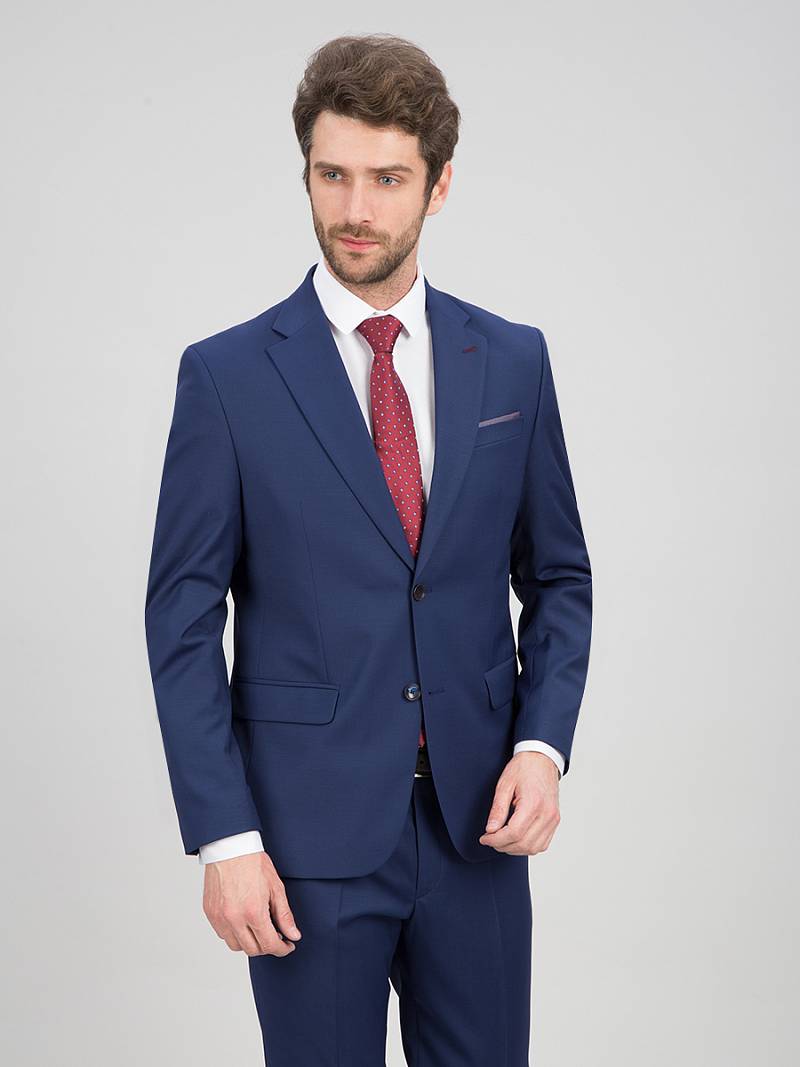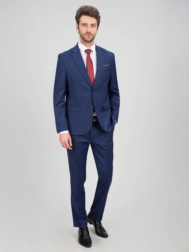 Классический костюм двойка Classic fit. Пиджак на две пуговицы, с боковыми и нагрудным карманами, по спинке две шлицы. Брюки без защипов с боковыми и двумя задними карманами. .