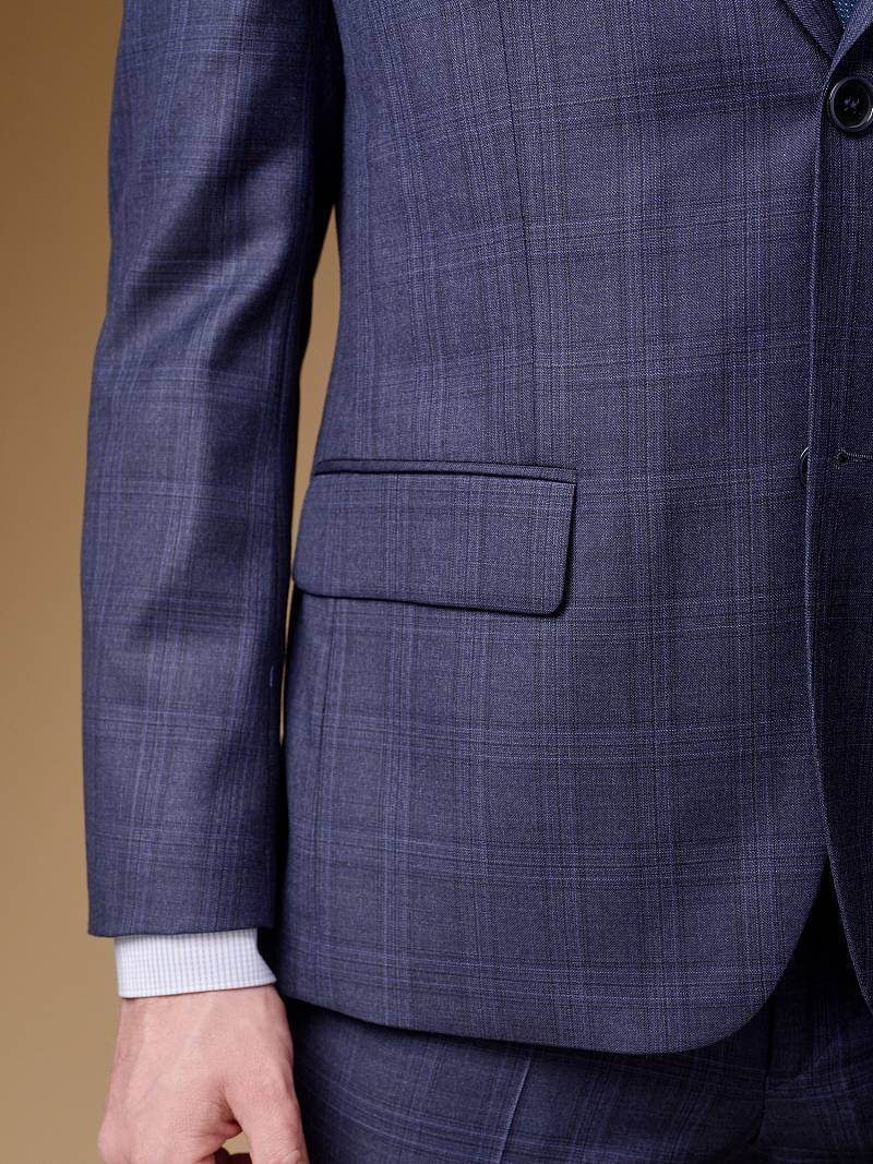 Классический костюм двойка Classic fit (ПОЛУПРИЛЕГАЮЩИЙ СИЛУЭТ). Пиджак однобортный на две пуговицы, с двумя боковыми карманами с клапанами и нагрудной листочкой. Рукава втачные, двухшовные со шлицей и четырьмя декоративными пуговицами. По спинке расположены две шлицы. Пиджак на подкладке, с двумя внутренними карманами. Брюки без защипов, с боковыми наклонными карманами и двумя задними карманами «в рамку». Передние половинки на подкладке. Верхний срез брюк обработан поясом с корсажной лентой и шлевками под ремень. Застежка обработана на тесьму-молнию, с петлей-пуговицей на поясе и усилен металлическим крючком.