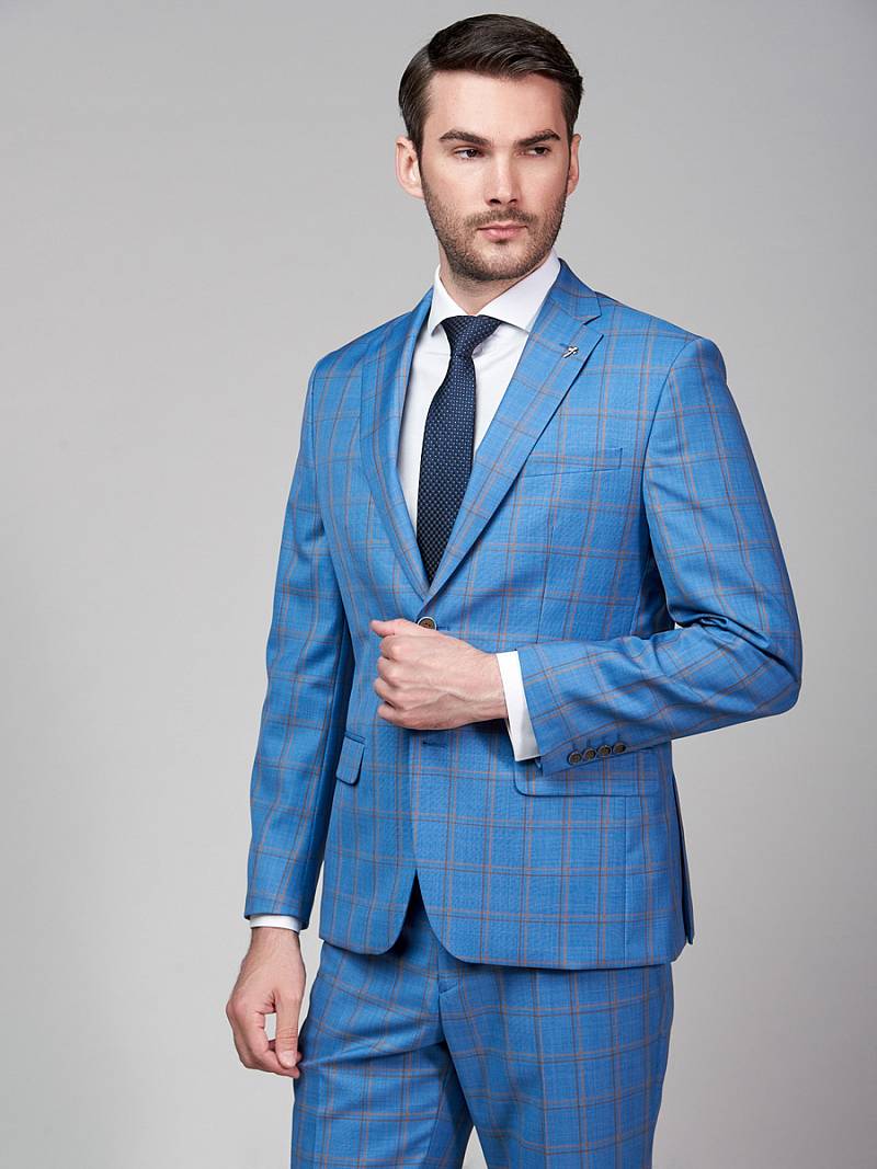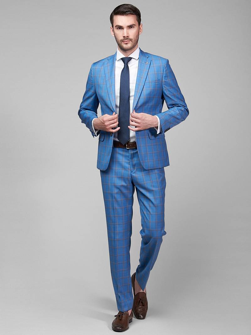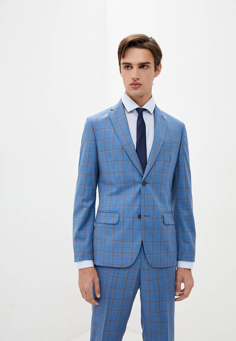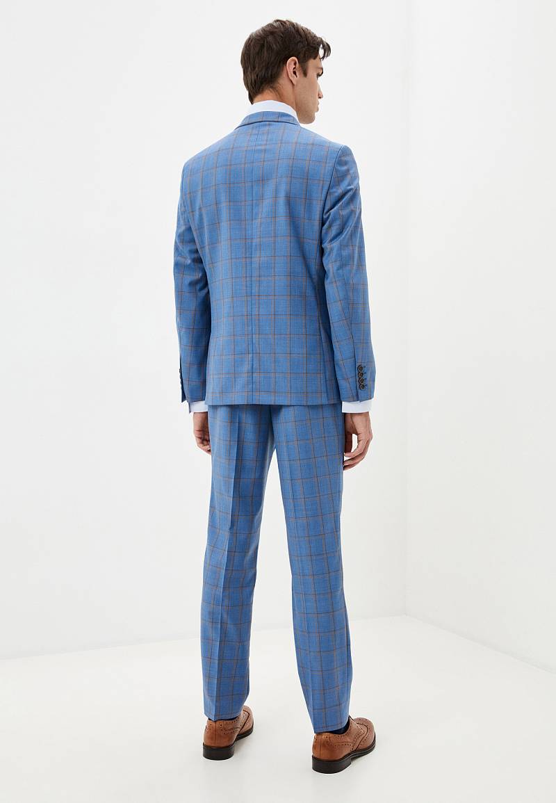 Классический костюм двойка Classic fit. Пиджак на две пуговицы, с боковыми и нагрудным карманами, по спинке две шлицы. Брюки без защипов с боковыми и одним задним карманом.