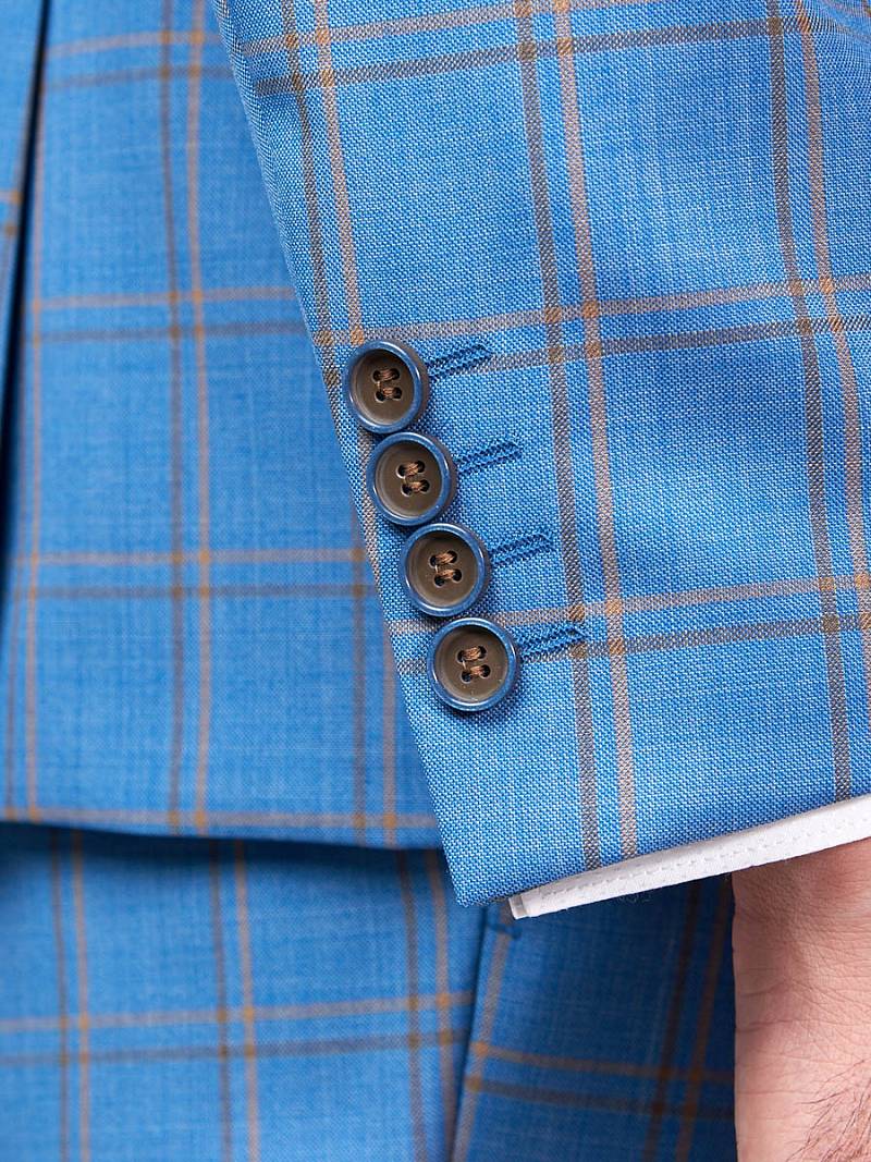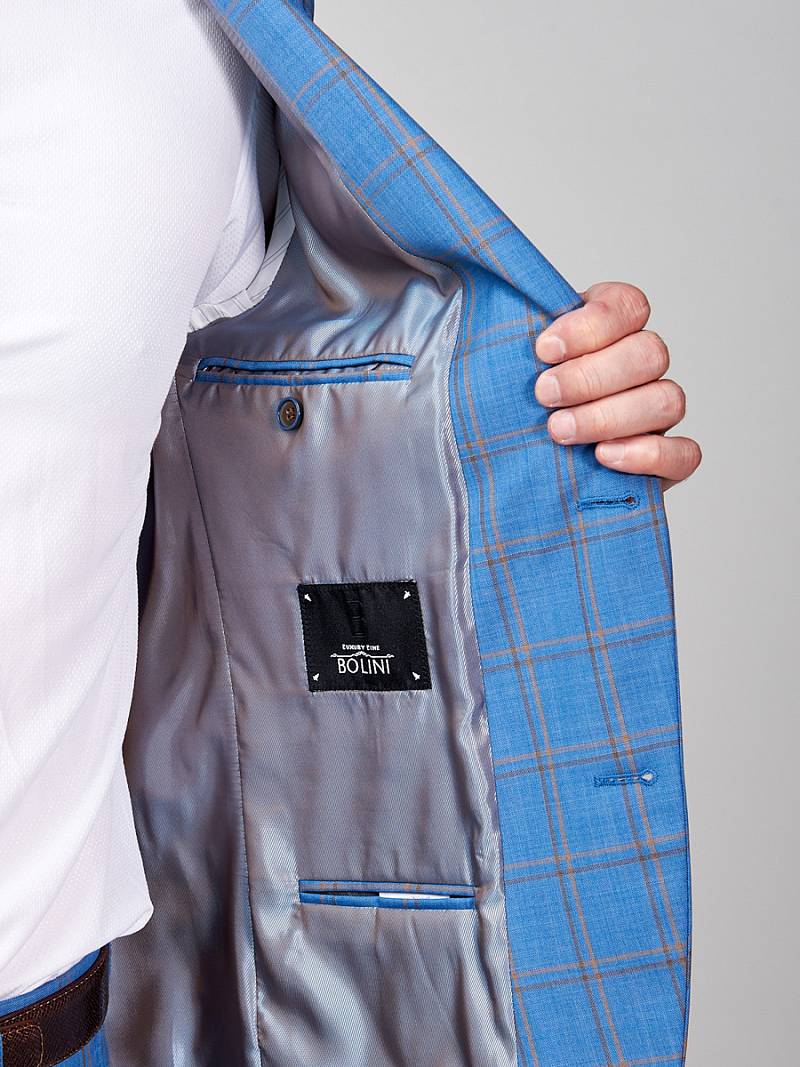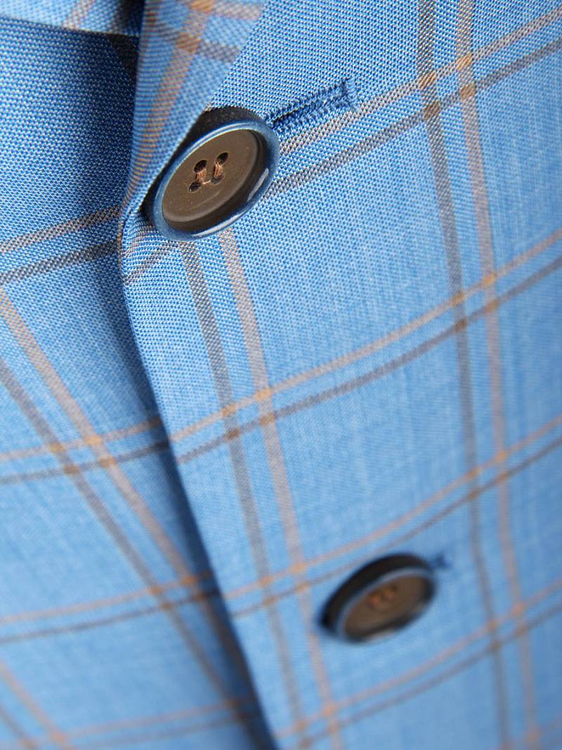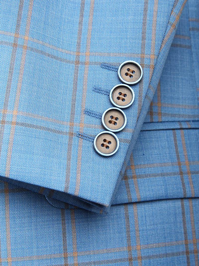 Классический костюм двойка Classic fit. Пиджак на две пуговицы, с боковыми и нагрудным карманами, по спинке две шлицы. Брюки без защипов с боковыми и одним задним карманом.