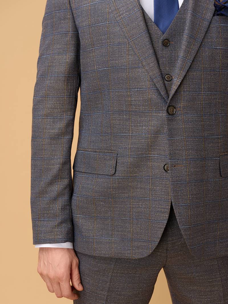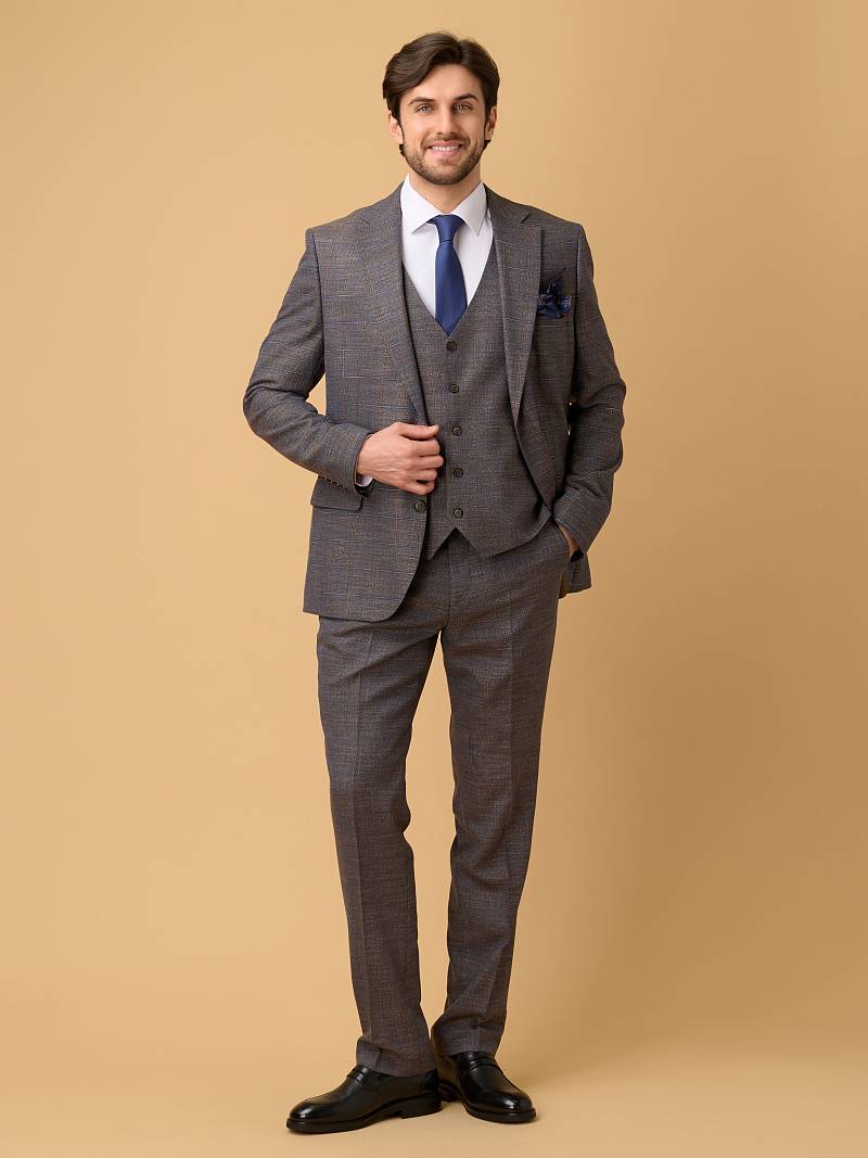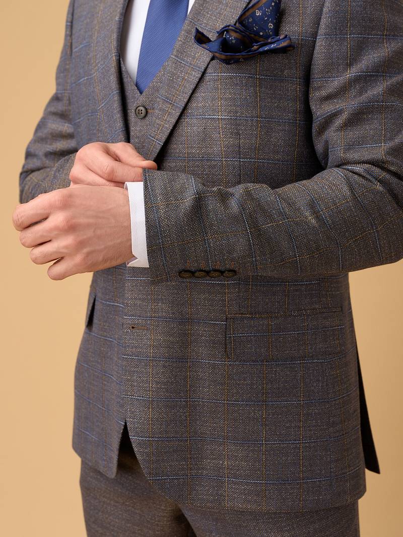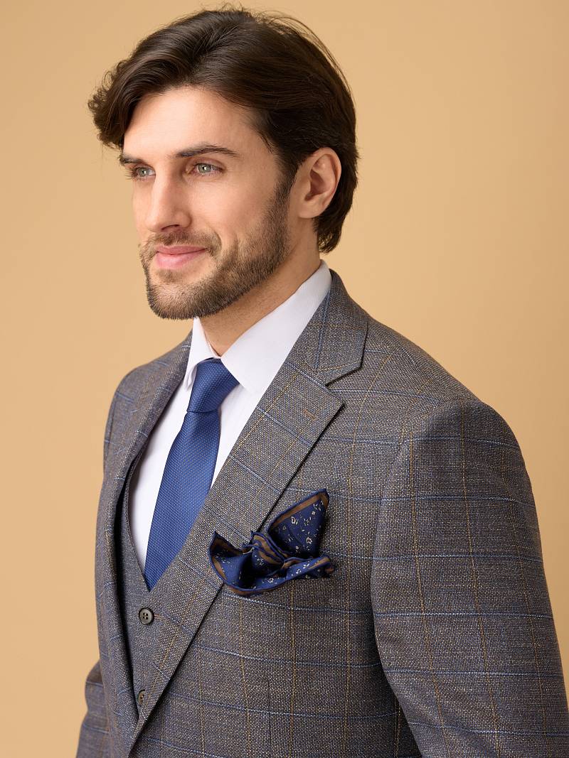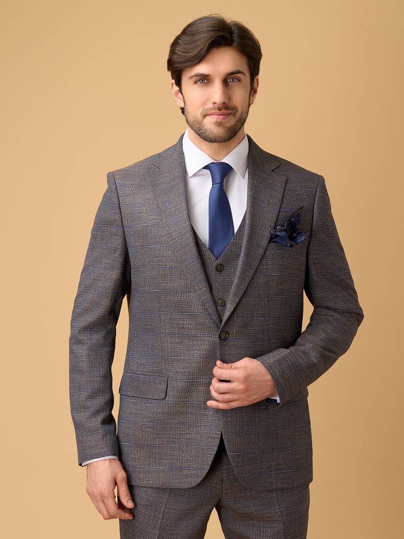Представляем элегантный, статусный костюм в лучших традициях итальянского кроя от марки LACONI, сочетающий классическую строгость и современную утонченность. Премиальная шерсть в благородной клетке подчеркивает респектабельность, а безупречная посадка обеспечивает комфорт. Такой костюм подчеркивает престиж и тонкий вкус владельца, оставаясь при этом универсальным элементом гардероба. Пиджак с мягкой плечевой линией на двух пуговицах, двумя шлицами сзади и лацканами средней ширины выполнен из ткани в клетку, дополнен брюками и жилетом из однотонной ткани. Брюки прямого кроя со стрелками и средней посадкой, с боковыми наклонными карманами и двумя задними карманом "в рамку". Верхний срез брюк обработан поясом с корсажной лентой и шлевками под ремень. Внутри на подкладке расположены два внутренних кармана и выполнена отделка из контрастной вспушки и канта. Жилет с двумя боковыми карманами, по спинке расположен хлястик для регулировки объема в области талии. Дизайнеры марки LACONI тщательно подходят к выбору материалов. Пуговицы подбираются и красятся индивидуально под каждую ткань, а прикладные материалы используют только от передовых производителей.