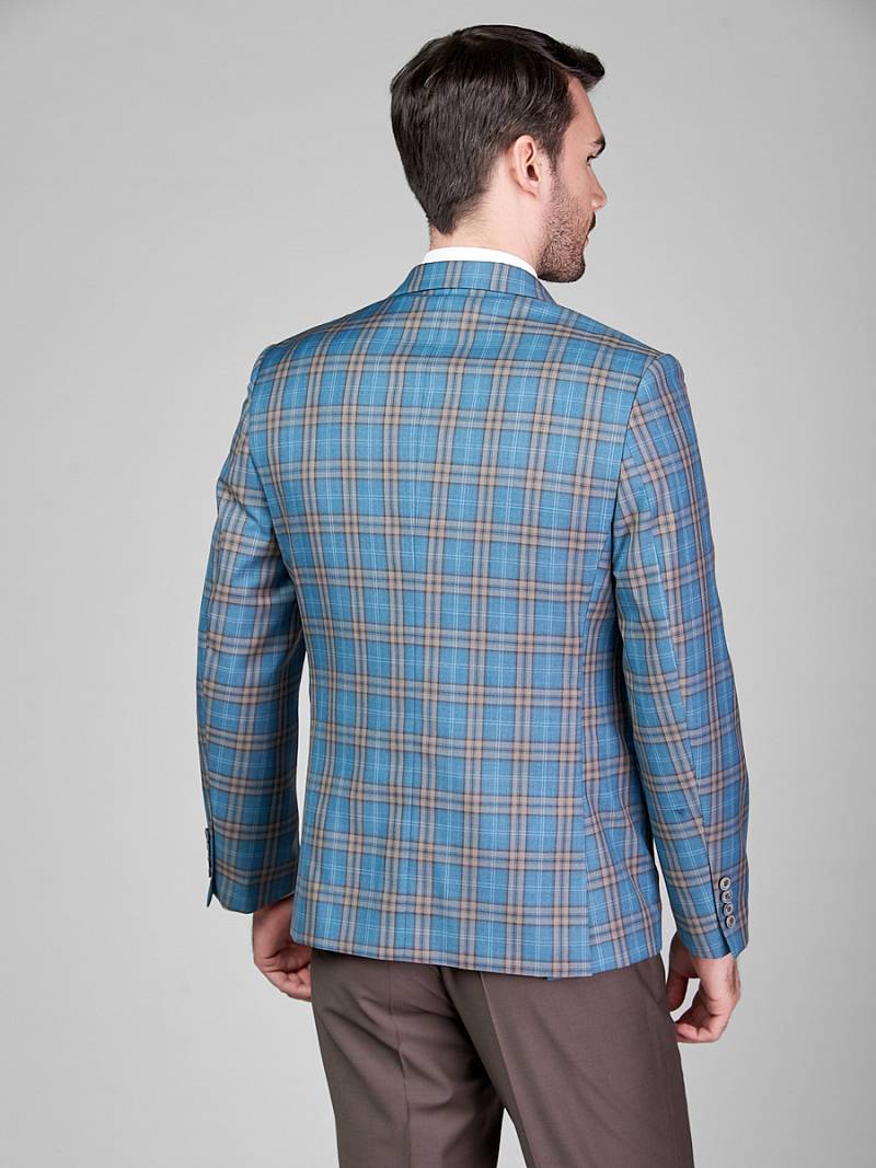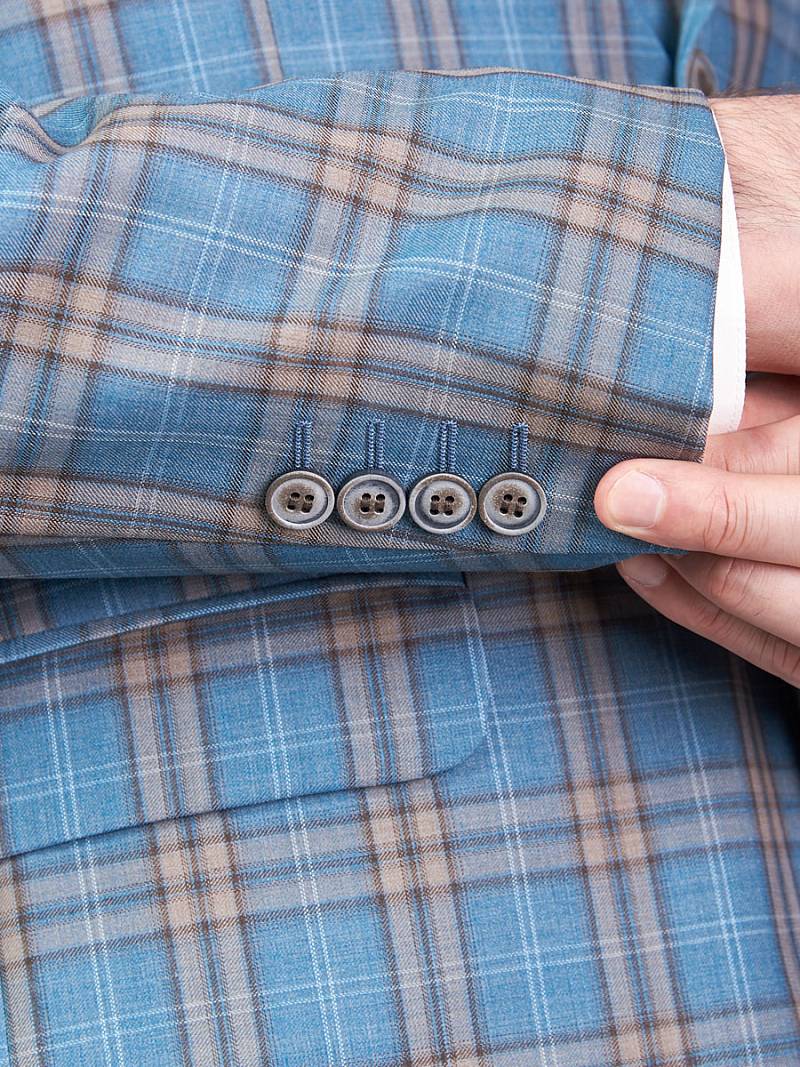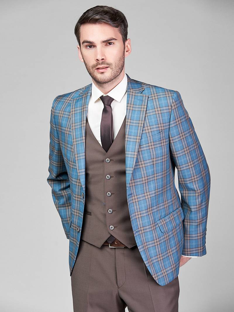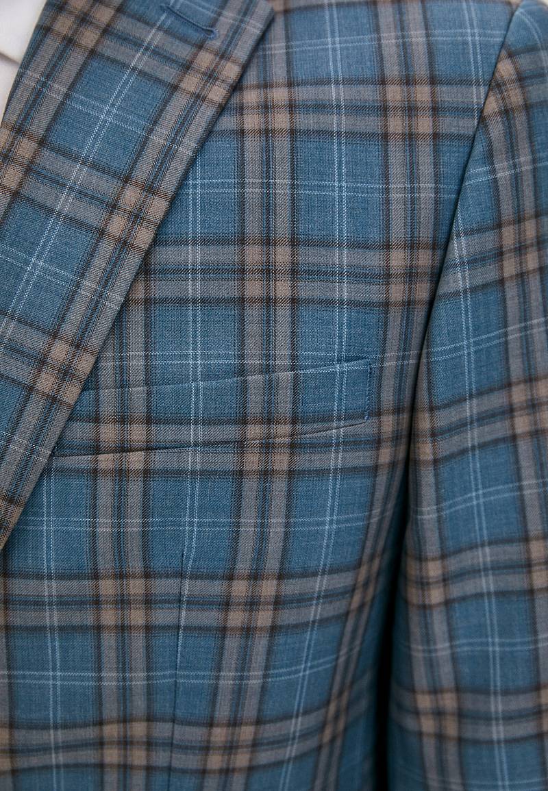 Classic fit. Однобортный костюм тройка на две пуговицы, по спинке две шлицы. Брюки выполнены из ткани компаньона.