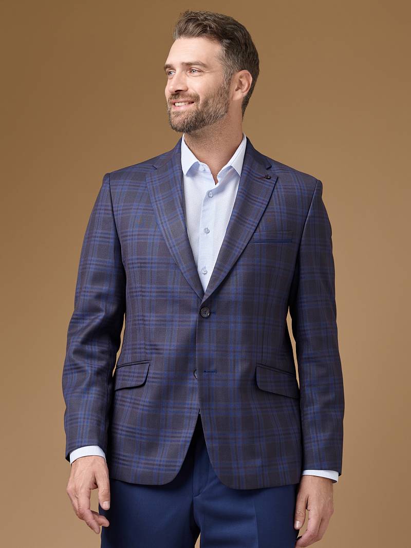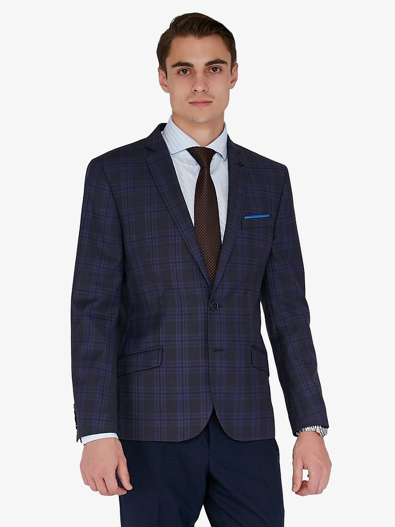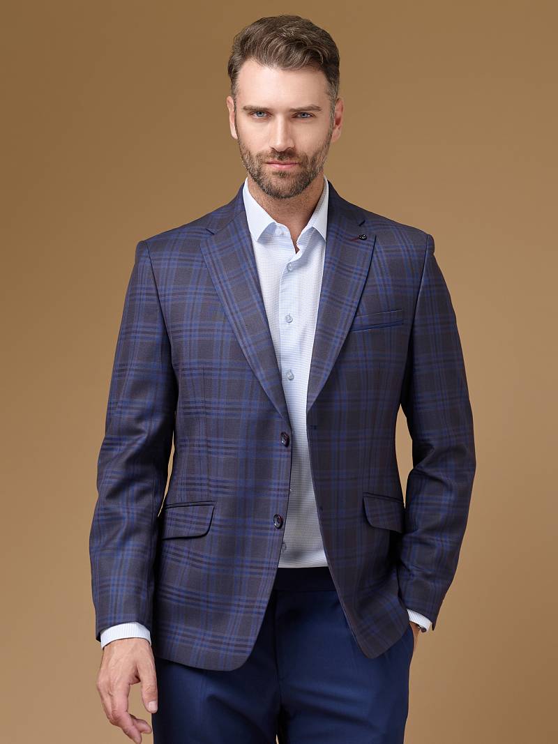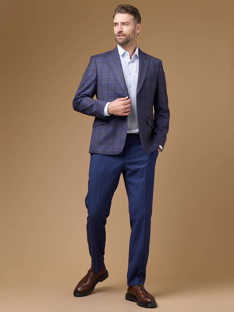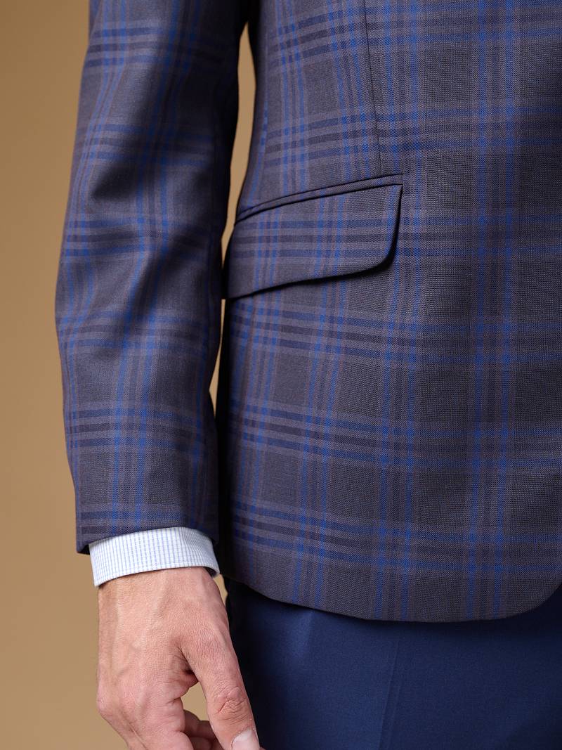 Ultra slim fit, две пуговицы, две шлицы, Пиджак в клетку, брюки из ткани компаньона.