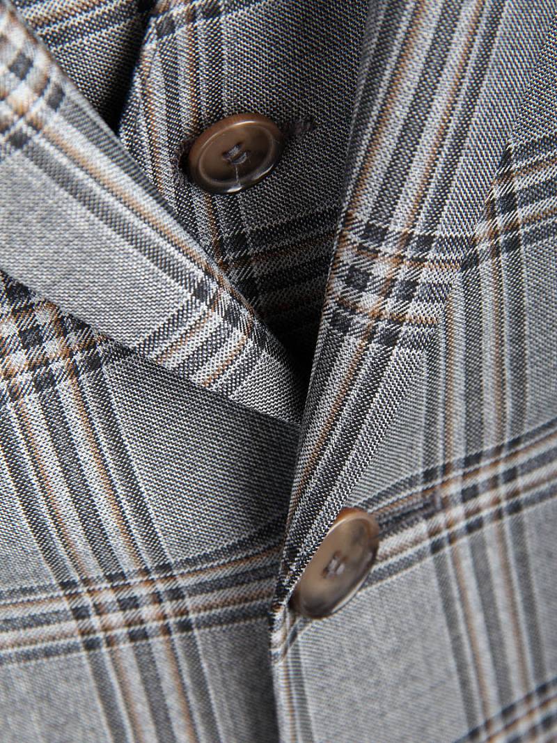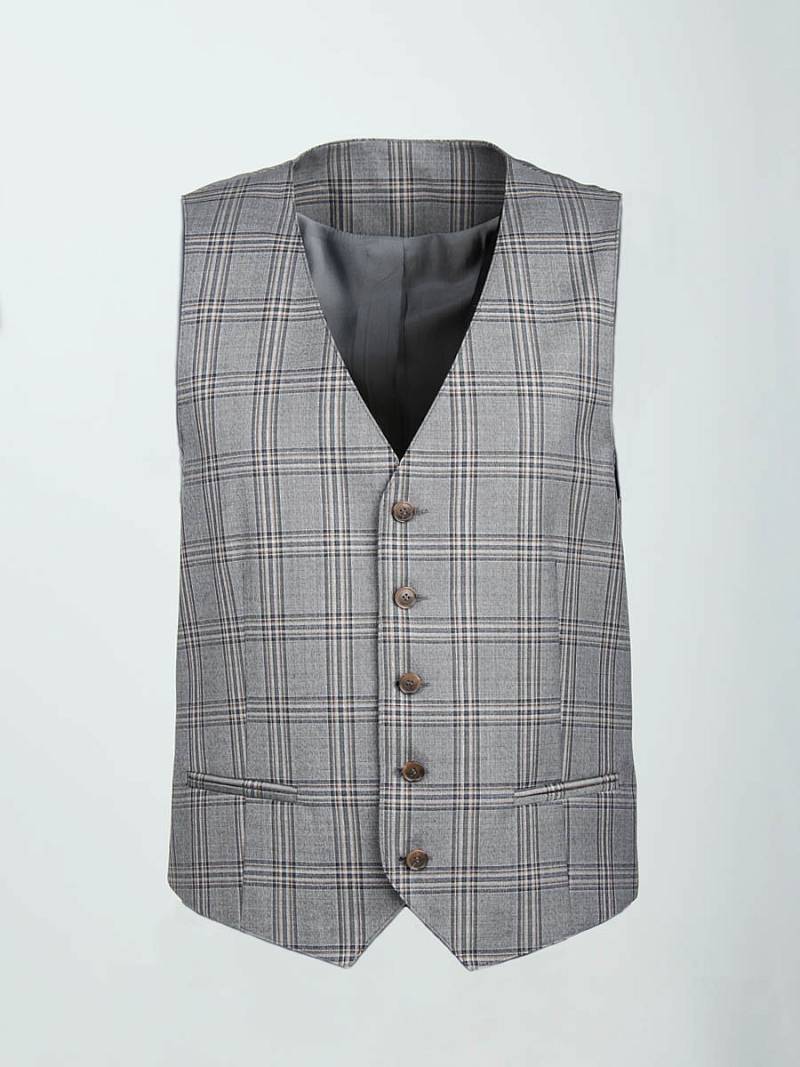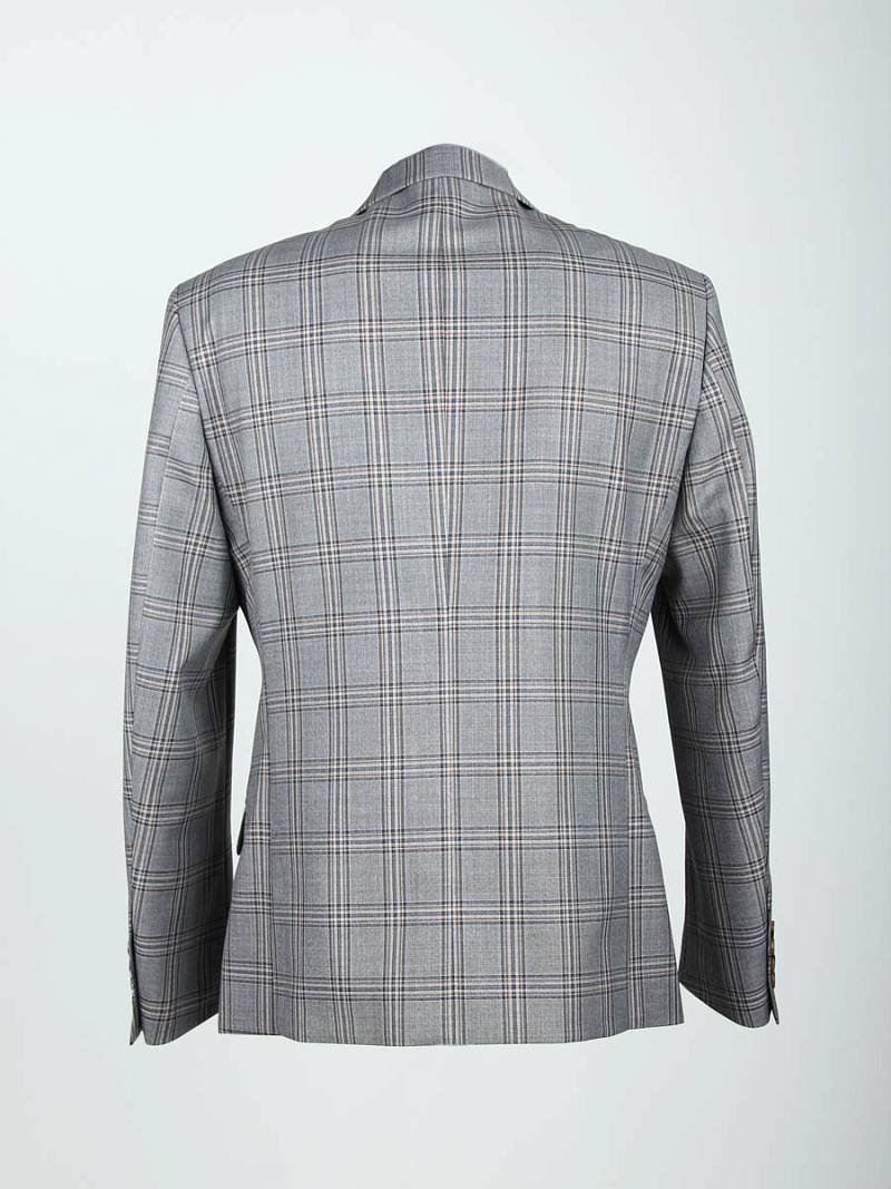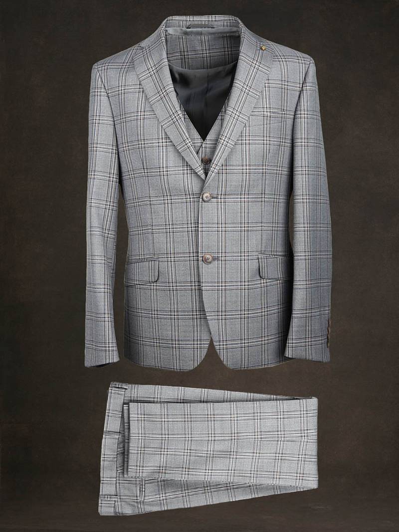 Классический костюм-тройка Slim fit . Пиджак на две пуговицы, с боковыми и нагрудным карманами, по спинке две шлицы. Брюки без защипов с боковыми и одним задним карманом.