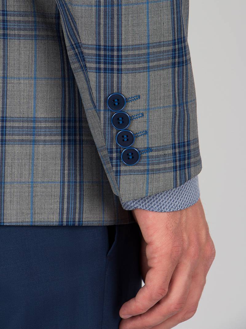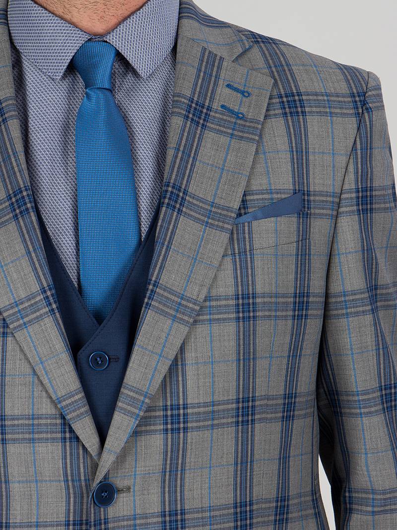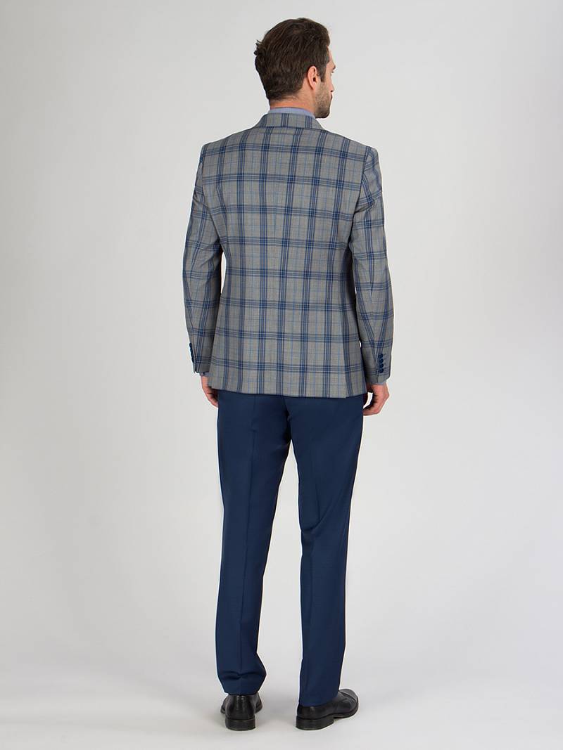 Классический костюм-тройка Classic fit. Пиджак на две пуговицы, с боковыми и нагрудным карманами, по спинке две шлицы. Брюки без защипов с боковыми и двумя задними карманами. Брюки и жилет выполнены из ткани компаньона.
