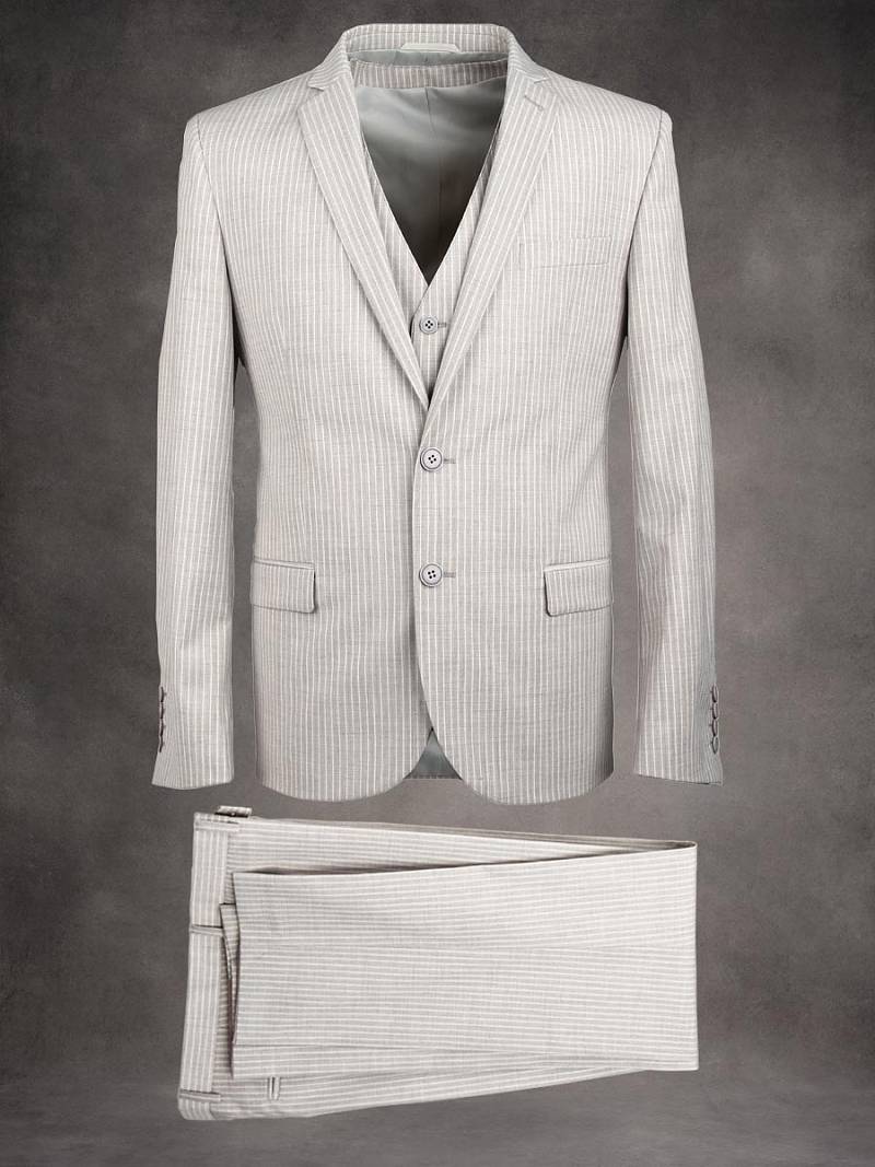 Классический костюм-тройка Slim fit. Пиджак на две пуговицы, с боковыми и нагрудным карманами, по спинке две шлицы. Брюки без защипов с боковыми и одним задним карманом.