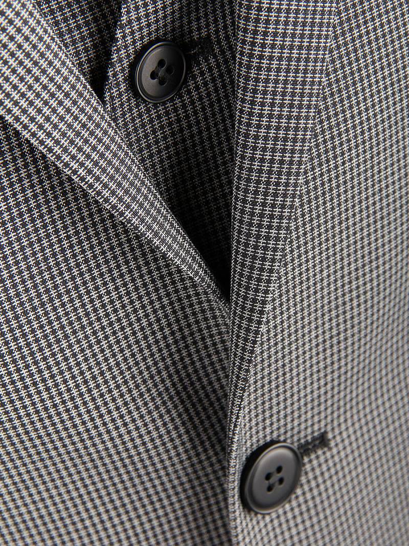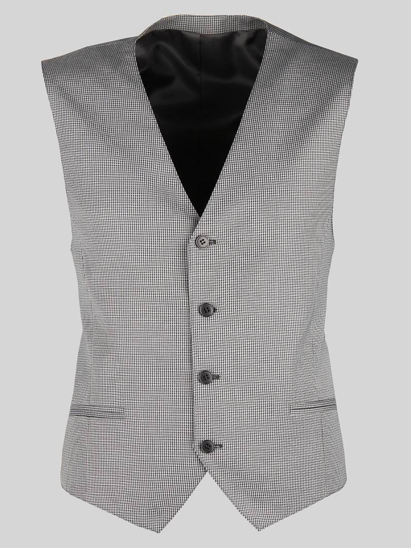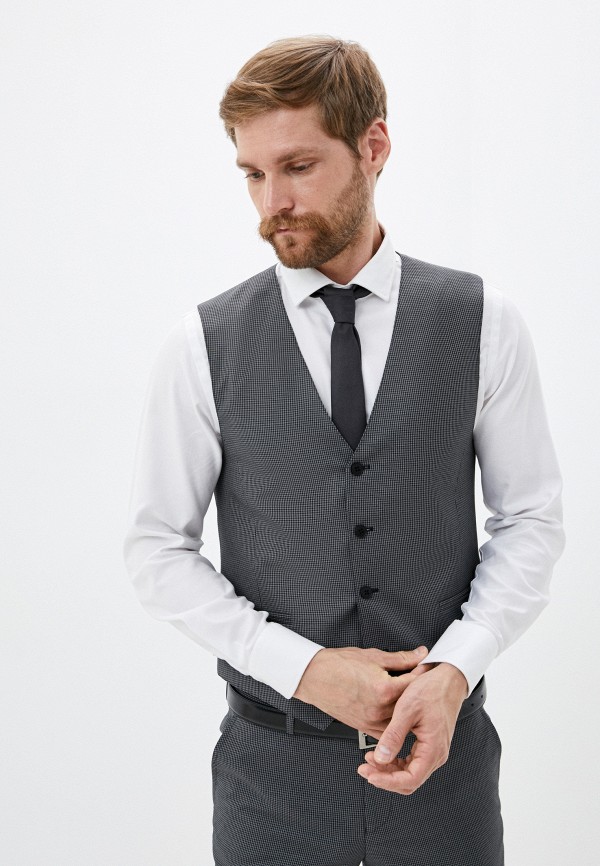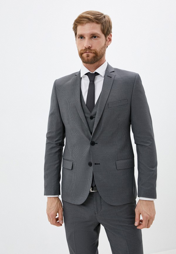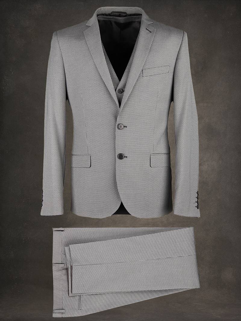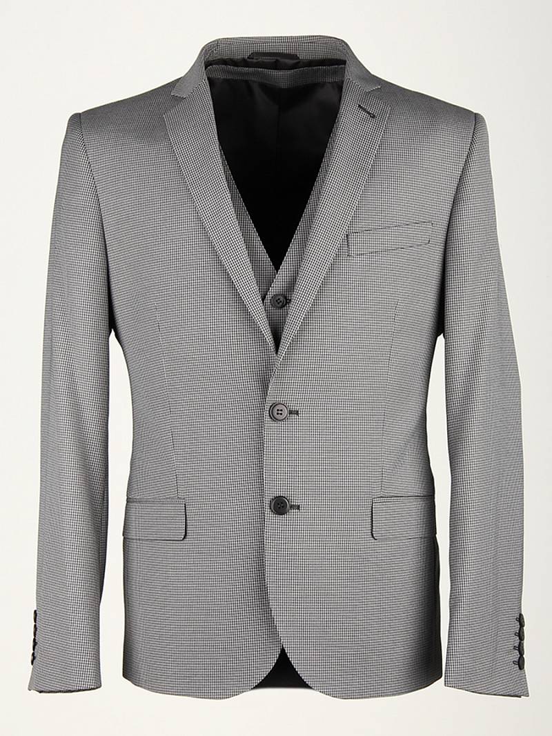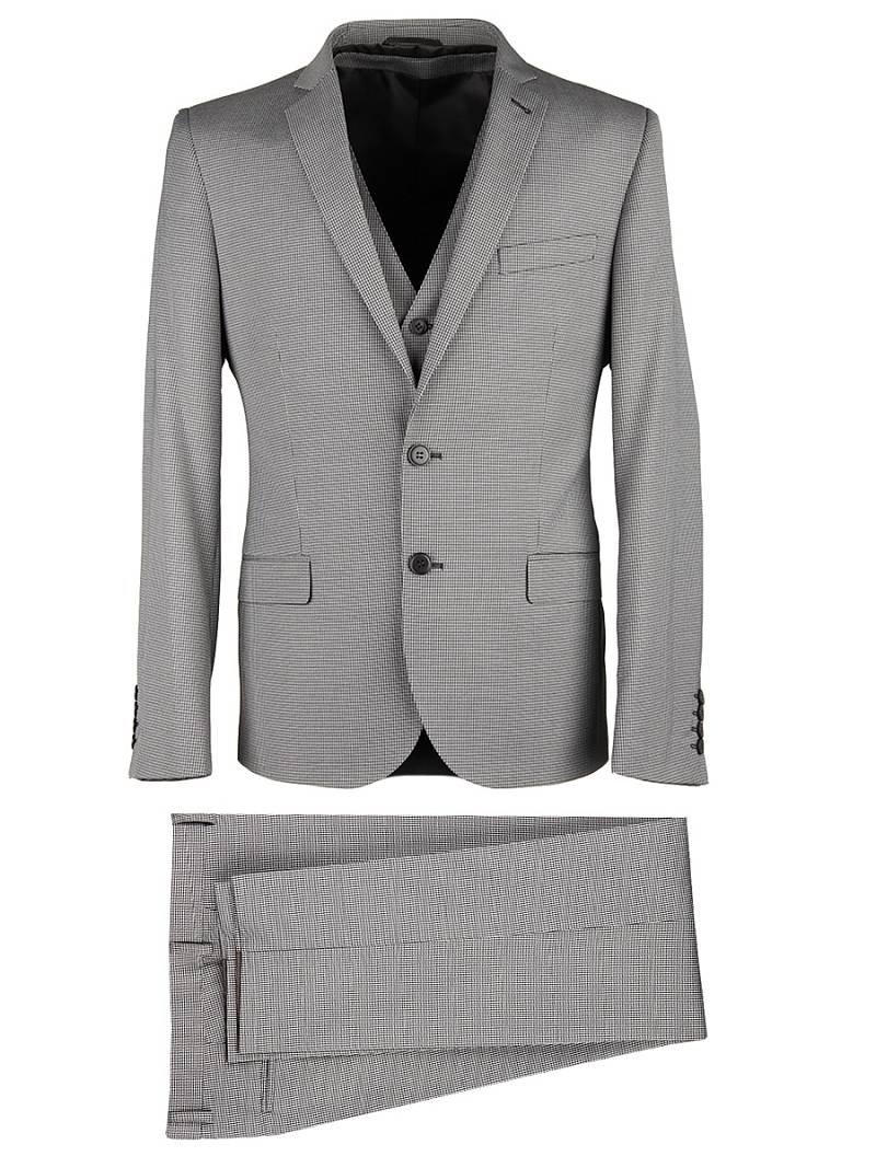 Классический костюм-тройка Slim fit. Пиджак на две пуговицы, с боковыми и нагрудным карманами, по спинке две шлицы. Брюки без защипов с боковыми и одним задним карманом.