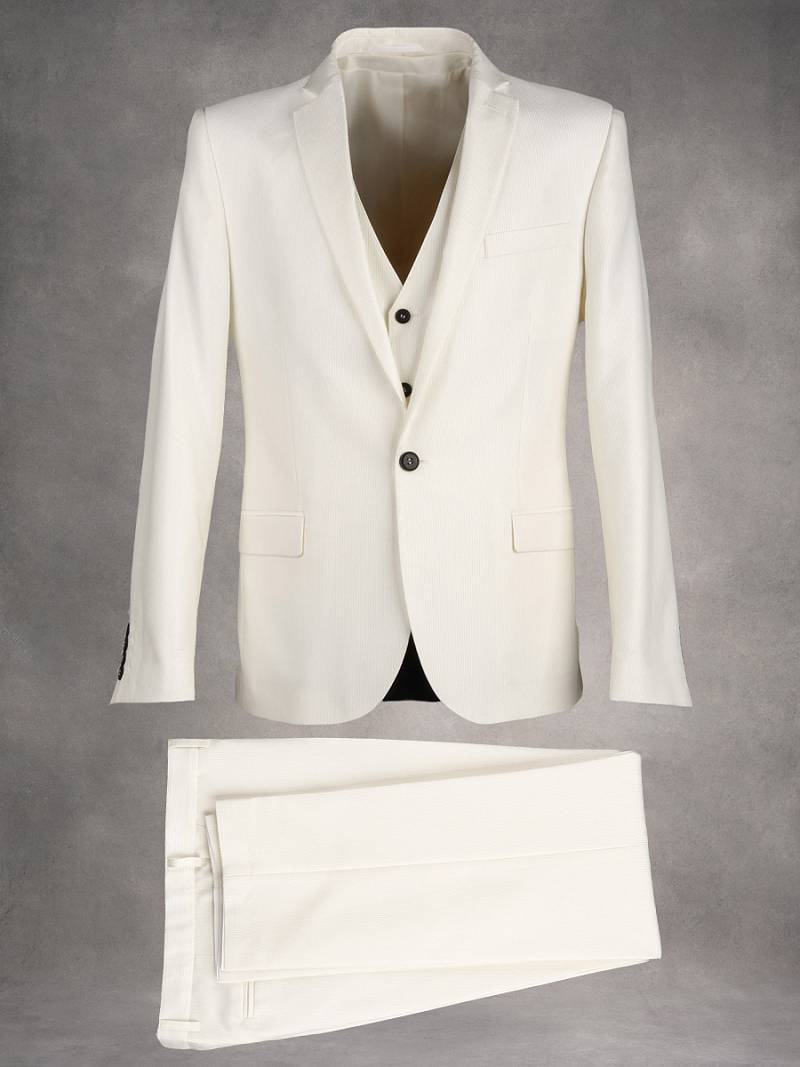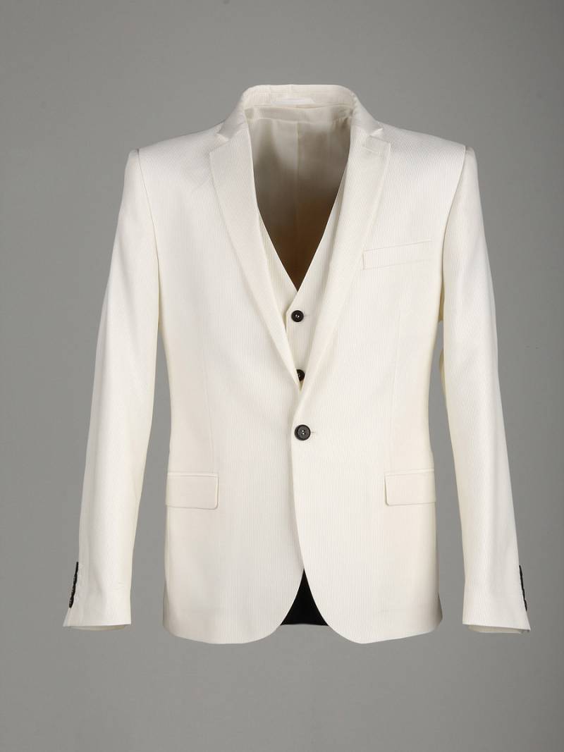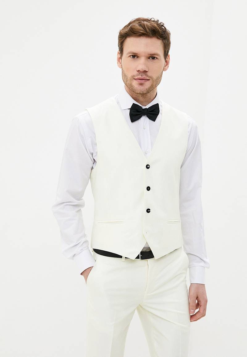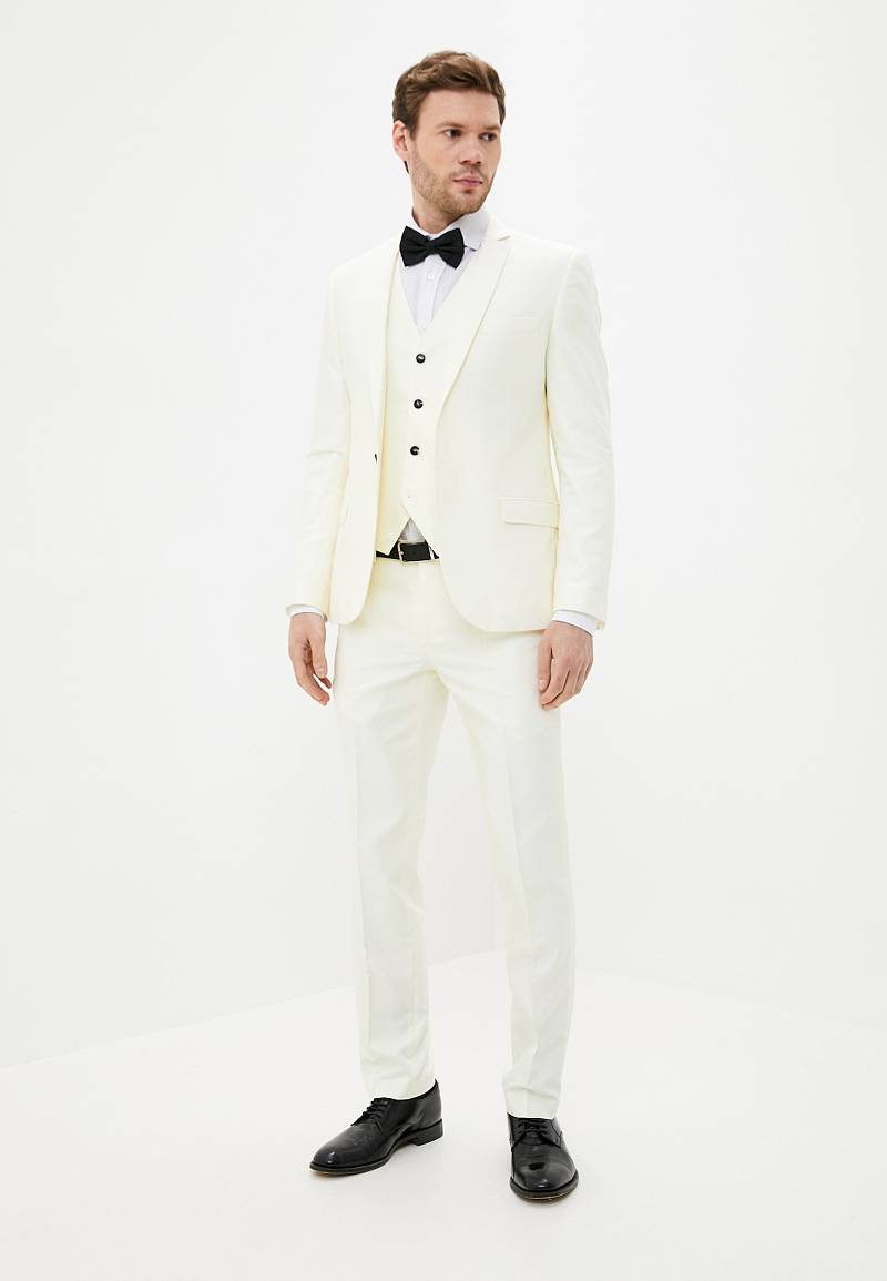 Классический костюм-тройка Slim fit . Пиджак на две пуговицы, с боковыми и нагрудным карманами, по спинке две шлицы. Брюки без защипов с боковыми и одним задним карманом.