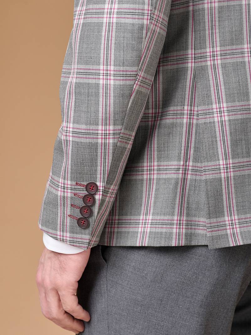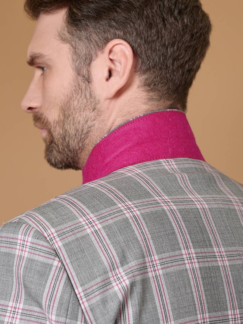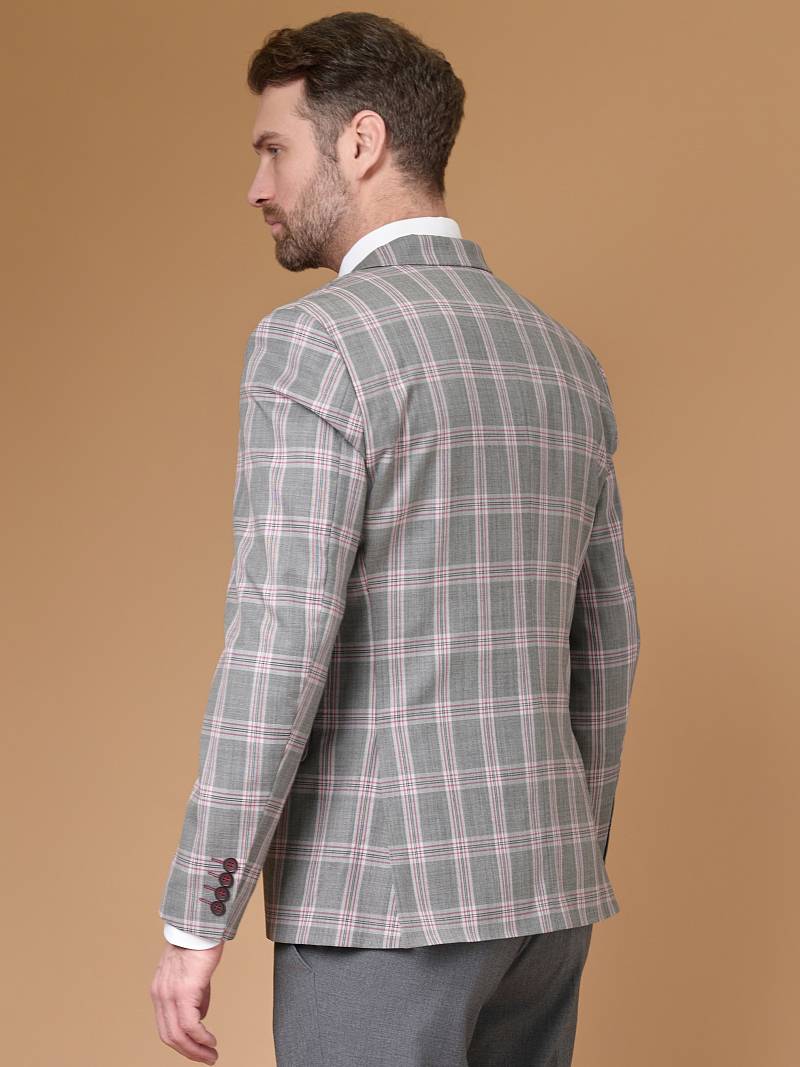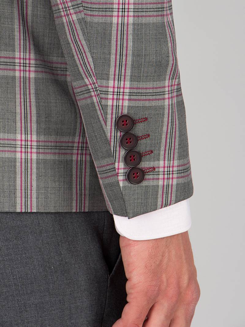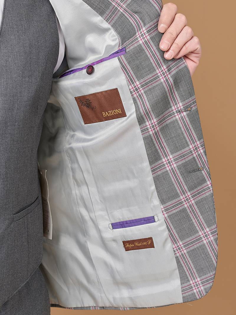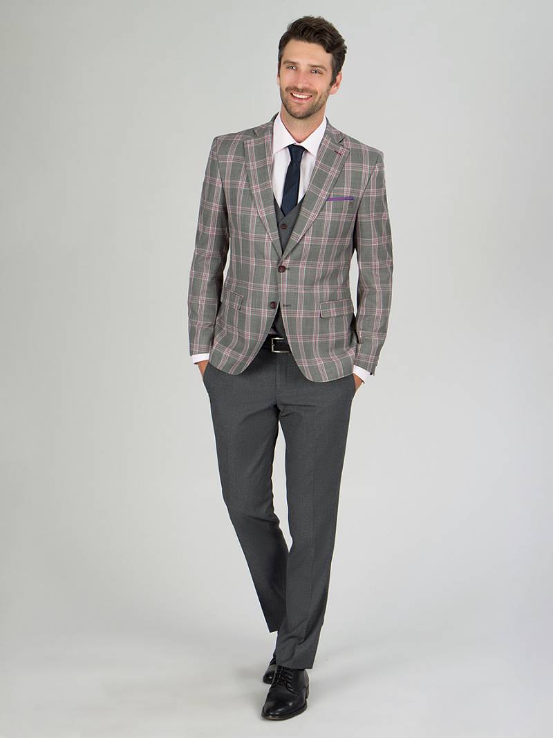 Классический костюм-тройка Slim fit. Пиджак на две пуговицы, с боковыми и нагрудным карманами, по спинке две шлицы. Брюки без защипов с боковыми и двумя задними карманами. Брюки и жилет выполнены из ткани компаньона.