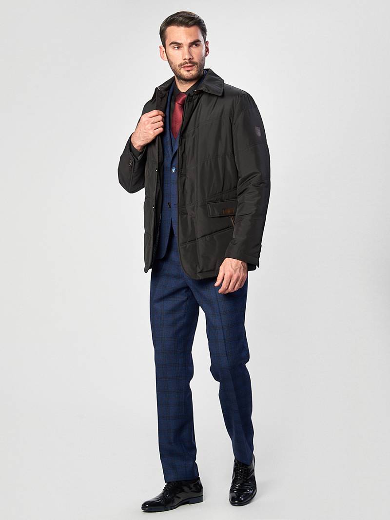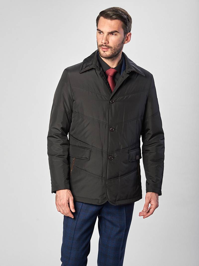 Куртка мужская из стеганой ткани, застёжка на пуговицы, воротник отложной, карманы с клапанами на магнитах.