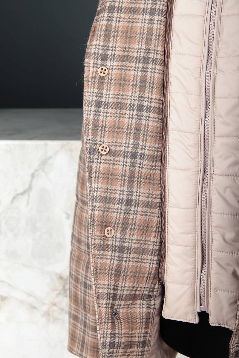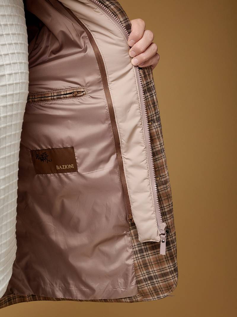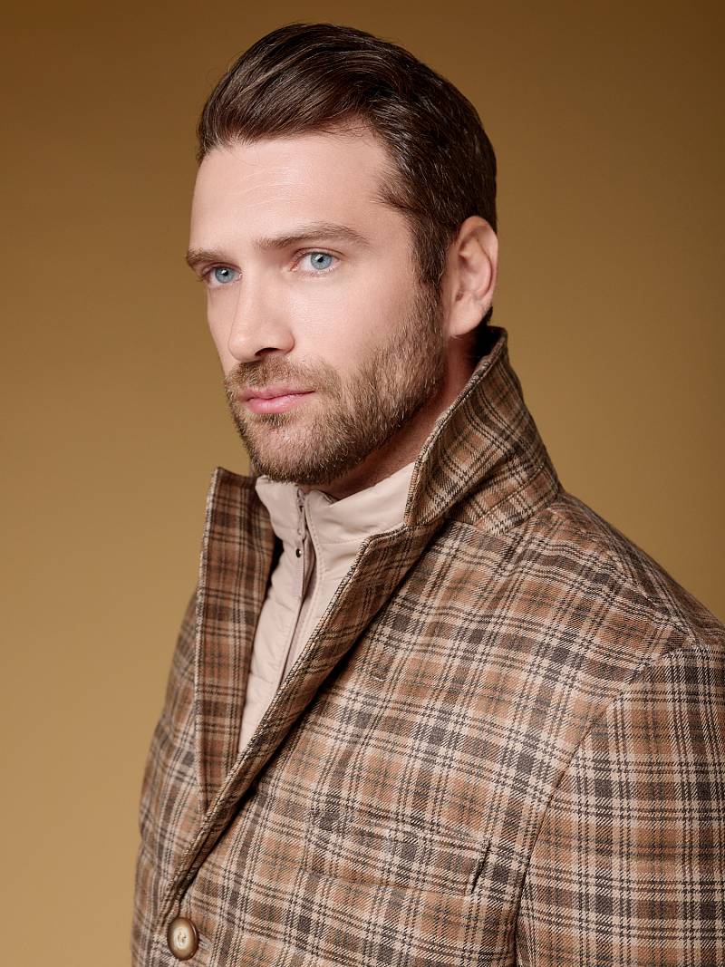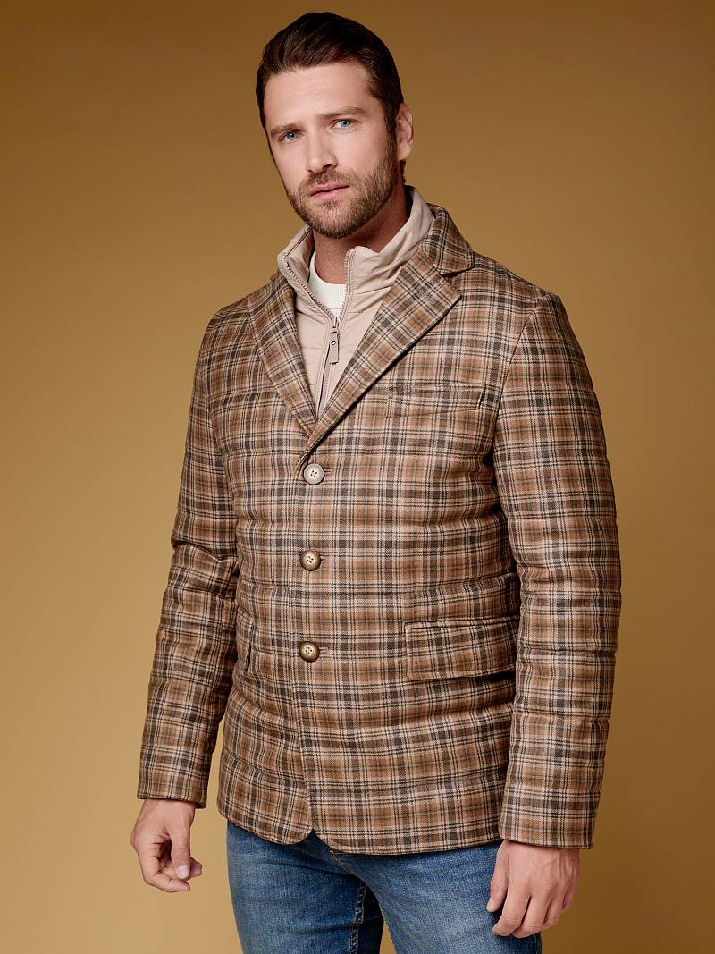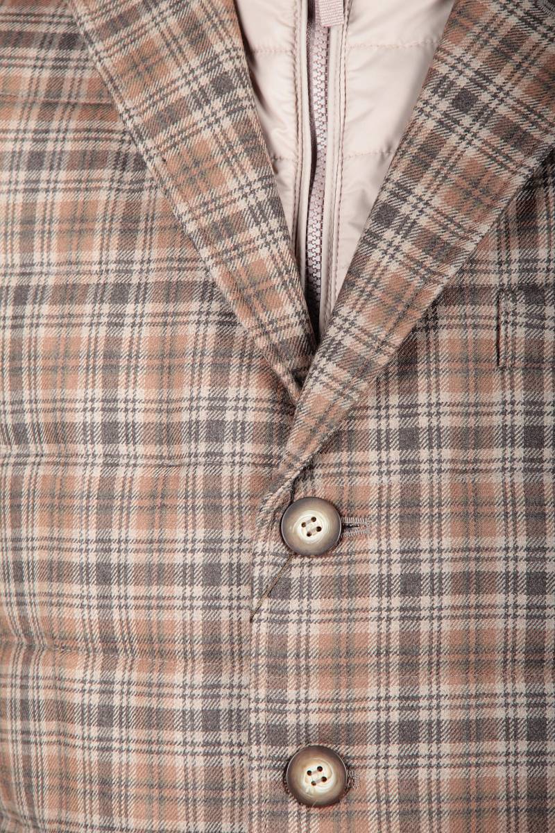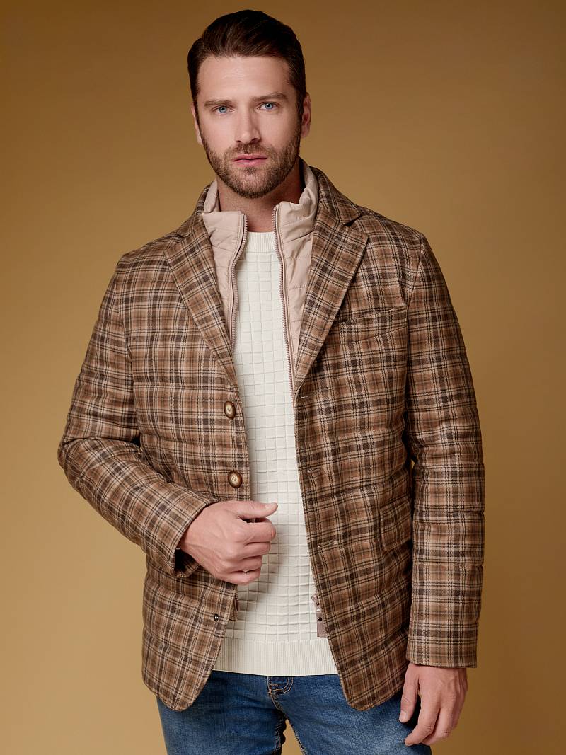 Куртка мужская утепленная из шерстяной ткани с английским воротником и со съемной манишкой. Манишка из пуходержащей ткани с водоотталкивающей пропиткой, защищает от ветра, холода и дождя. Застежка изделия на пуговицы. Полочки и спинка простеганы, на полочках - два кармана с клапанами на скрытых магнитах. Рукава втачные с локтевыми швами. На подкладке - два внутренних кармана на молнии для удобного хранения документов. Утеплитель в изделии характеризуется легким весом, гигиеничностью и гипоаллергенностью, высокими теплоизоляционными качествами, экологичностью и безопасностью. Рекомендуется обработать изделие водонепроницаемым аэрозолем для защиты от неблагоприятных погодных условий. Длина по спинке - 74см. Ткань верха: 100% шерсть. Подкладка: 100% полиэстер. Утеплитель: термоплюс 150гр./150гр.