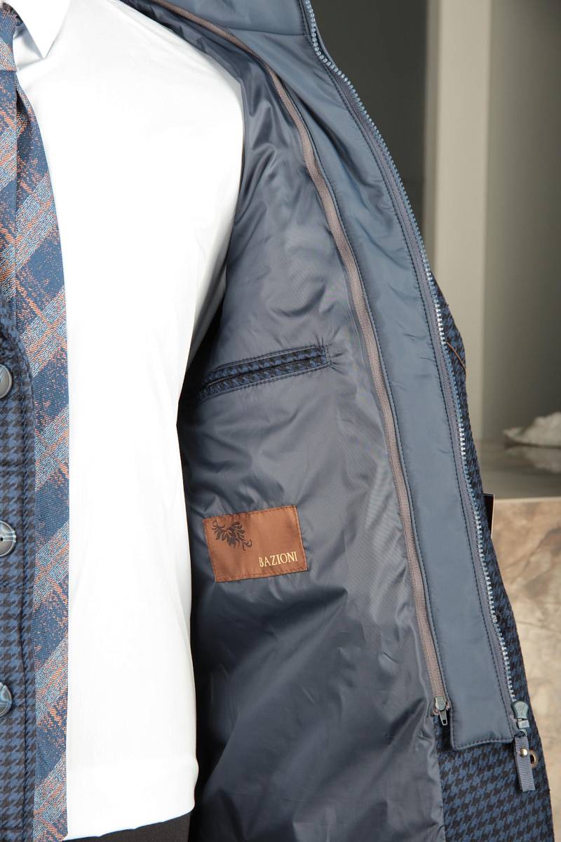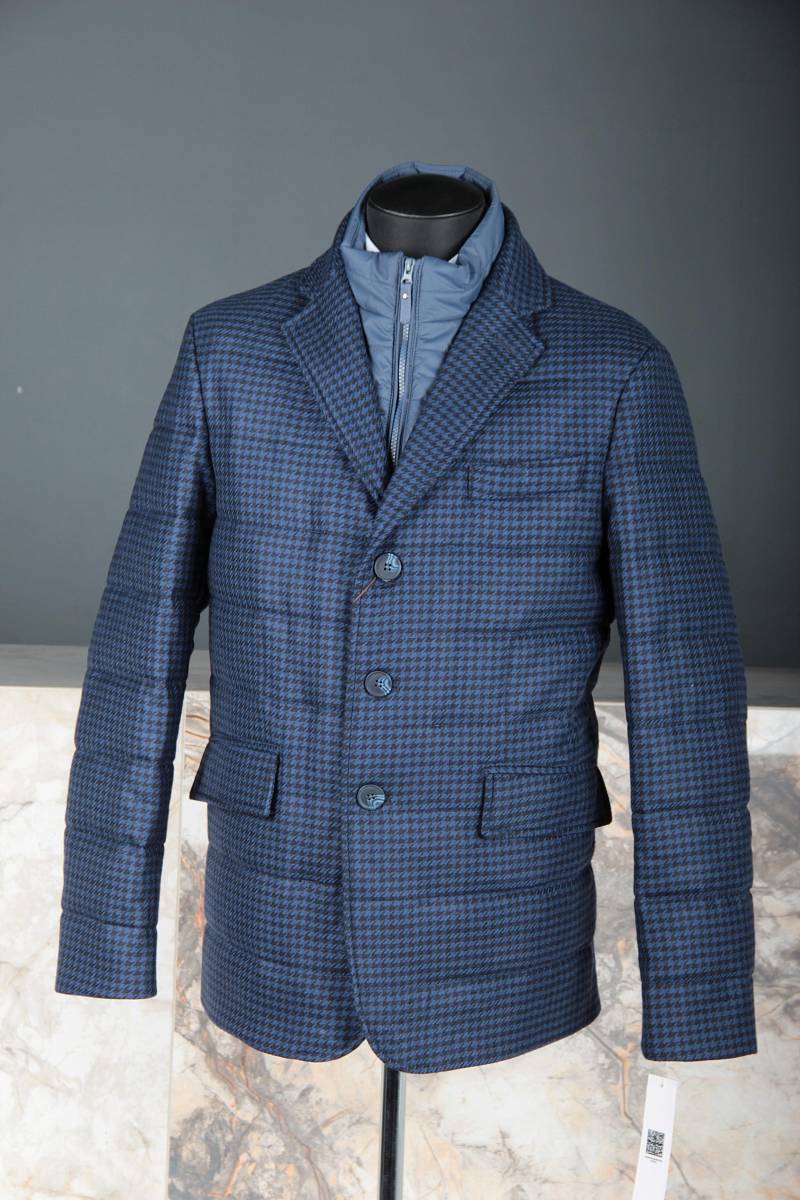 Куртка мужская утепленная из шерстяной ткани с английским воротником и со съемной манишкой. Манишка из пуходержащей ткани с водоотталкивающей пропиткой, защищает от ветра, холода и дождя. Застежка изделия на пуговицы. Полочки и спинка простеганы, на полочках - два кармана с клапанами на скрытых магнитах. Рукава втачные с локтевыми швами. На подкладке - два внутренних кармана на молнии для удобного хранения документов. Утеплитель в изделии характеризуется легким весом, гигиеничностью и гипоаллергенностью, высокими теплоизоляционными качествами, экологичностью и безопасностью. Рекомендуется обработать изделие водонепроницаемым аэрозолем для защиты от неблагоприятных погодных условий. Длина по спинке - 74см. Ткань верха: 100% шерсть. Подкладка: 100% полиэстер. Утеплитель: термоплюс 150гр./150гр.