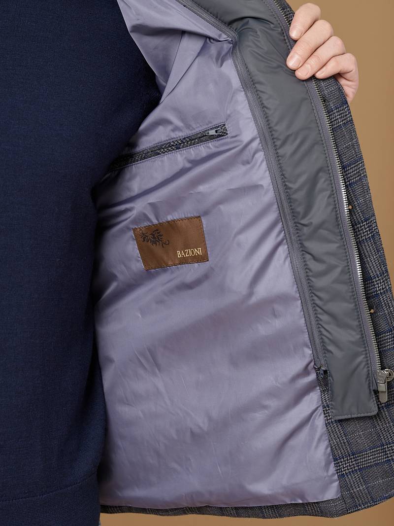 Куртка мужская утепленная из шерстяной ткани с английским воротником и со съемной манишкой. Манишка из пуходержащей ткани с водоотталкивающей пропиткой, защищает от ветра, холода и дождя. Застежка изделия на пуговицы. Полочки и спинка простеганы, на полочках - множество карманов: два кармана с клапанами на скрытых магнитах и два кармана -листочки с вертикальным боковым входом. Рукава втачные с локтевыми швами. На подкладке - два внутренних кармана на молнии для удобного хранения документов. Утеплитель в изделии характеризуется легким весом, гигиеничностью и гипоаллергенностью, высокими теплоизоляционными качествами, экологичностью и безопасностью. Рекомендуется обработать изделие водонепроницаемым аэрозолем для защиты от неблагоприятных погодных условий. Длина по спинке - 74см. Ткань верха: 100% шерсть. Подкладка: 100% полиэстер. Утеплитель: термоплюс 150гр./150гр.