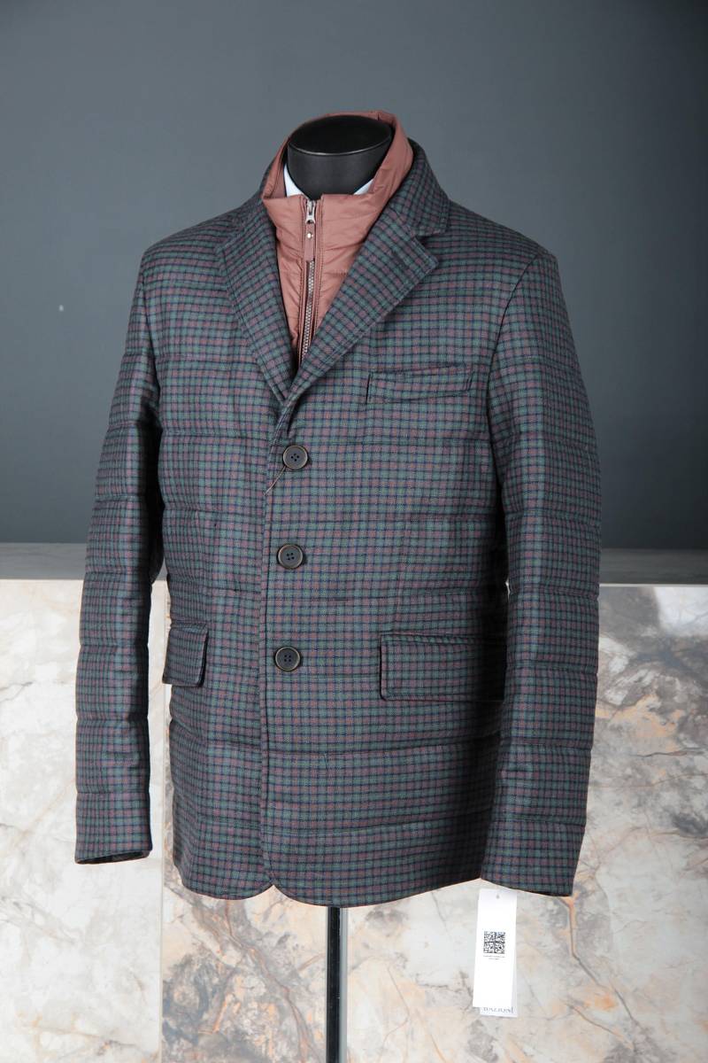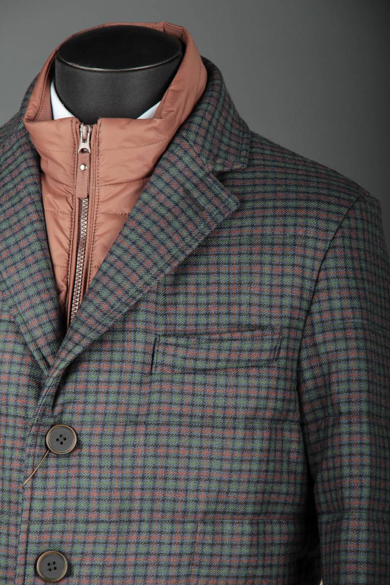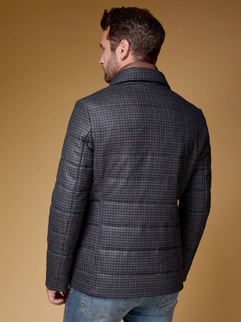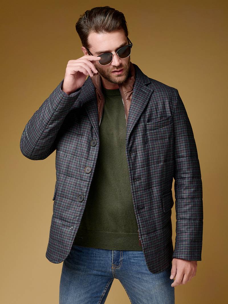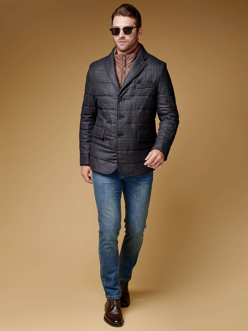 Куртка мужская утепленная из шерстяной ткани с английским воротником и со съемной манишкой. Манишка из пуходержащей ткани с водоотталкивающей пропиткой, защищает от ветра, холода и дождя. Застежка изделия на пуговицы. Полочки и спинка простеганы, на полочках - два кармана с клапанами на скрытых магнитах. Рукава втачные с локтевыми швами. На подкладке - два внутренних кармана на молнии для удобного хранения документов. Утеплитель в изделии характеризуется легким весом, гигиеничностью и гипоаллергенностью, высокими теплоизоляционными качествами, экологичностью и безопасностью. Рекомендуется обработать изделие водонепроницаемым аэрозолем для защиты от неблагоприятных погодных условий. Длина по спинке - 74см. Ткань верха: 100% шерсть. Подкладка: 100% полиэстер. Утеплитель: термоплюс 150гр./150гр.
