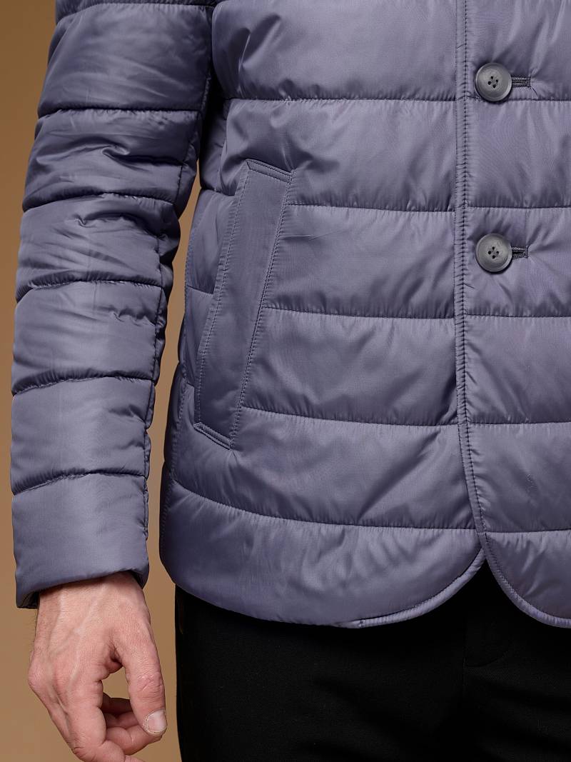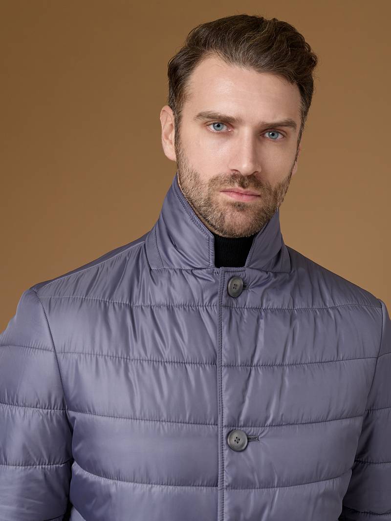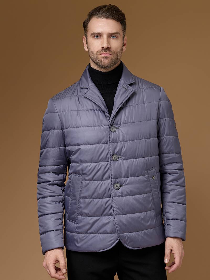 Куртка-пиджак мужская простеганая из курточной ткани. Инновационная пуходержащая ткань верха с обработкой wr, cire (ветро и влаго защита). - мягкая, легкая, практичная, не мнется. Изделие с отложным воротником пиджачного типа с лацканами. Застежка куртки -пиджака на пуговицы. На полочках - прорезные боковые карманы с листочками на скрытых магнитах. Спинка без среднего шва. Рукава с локтевыми швами. Инновационная внутренняя подкладка с защитой от миграции волокон, на подкладке - два вместительных кармана для документов. Утеплитель антиаллергенный термоплюс 150гр /150гр. не теряет своих свойств после химчистки и стирки. Длина по спинке для размера 50/176 - 90см. Ткань верха: 100%по