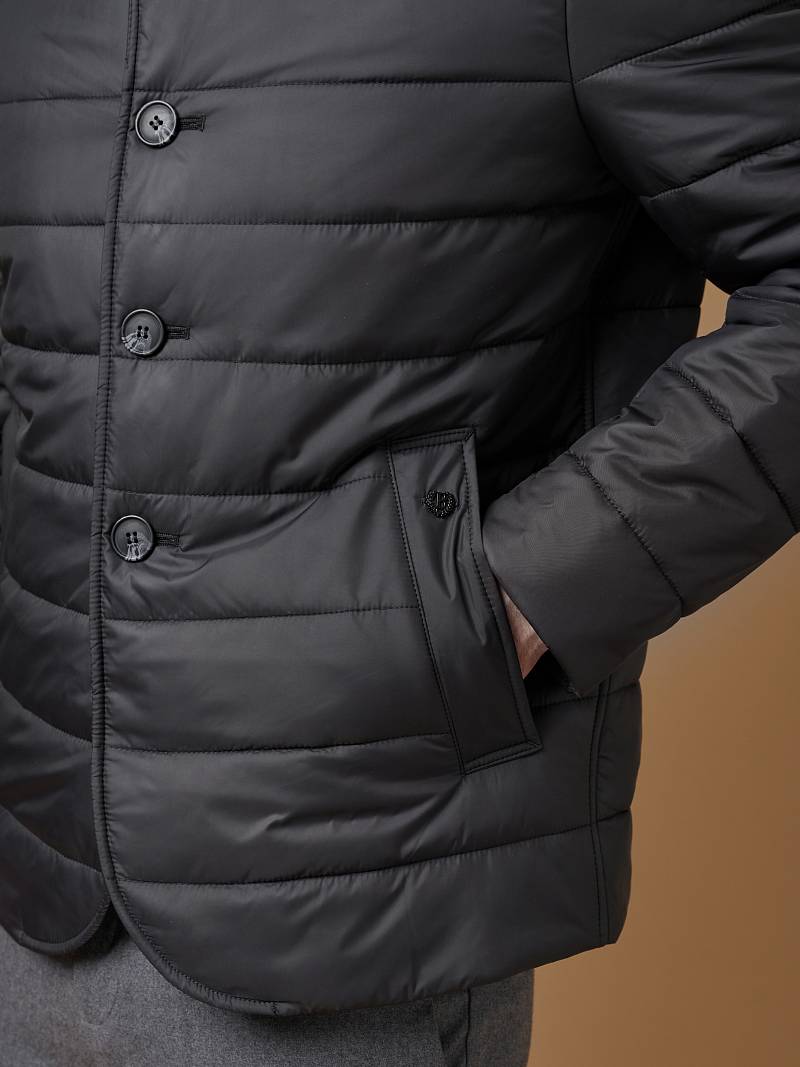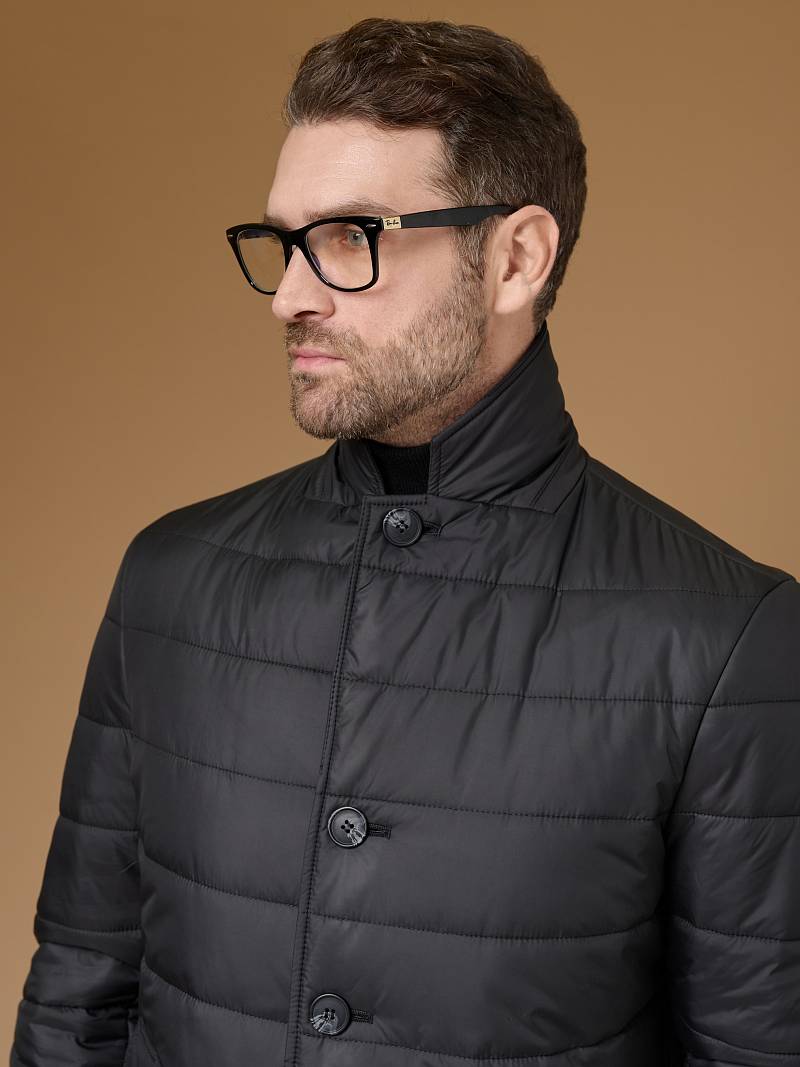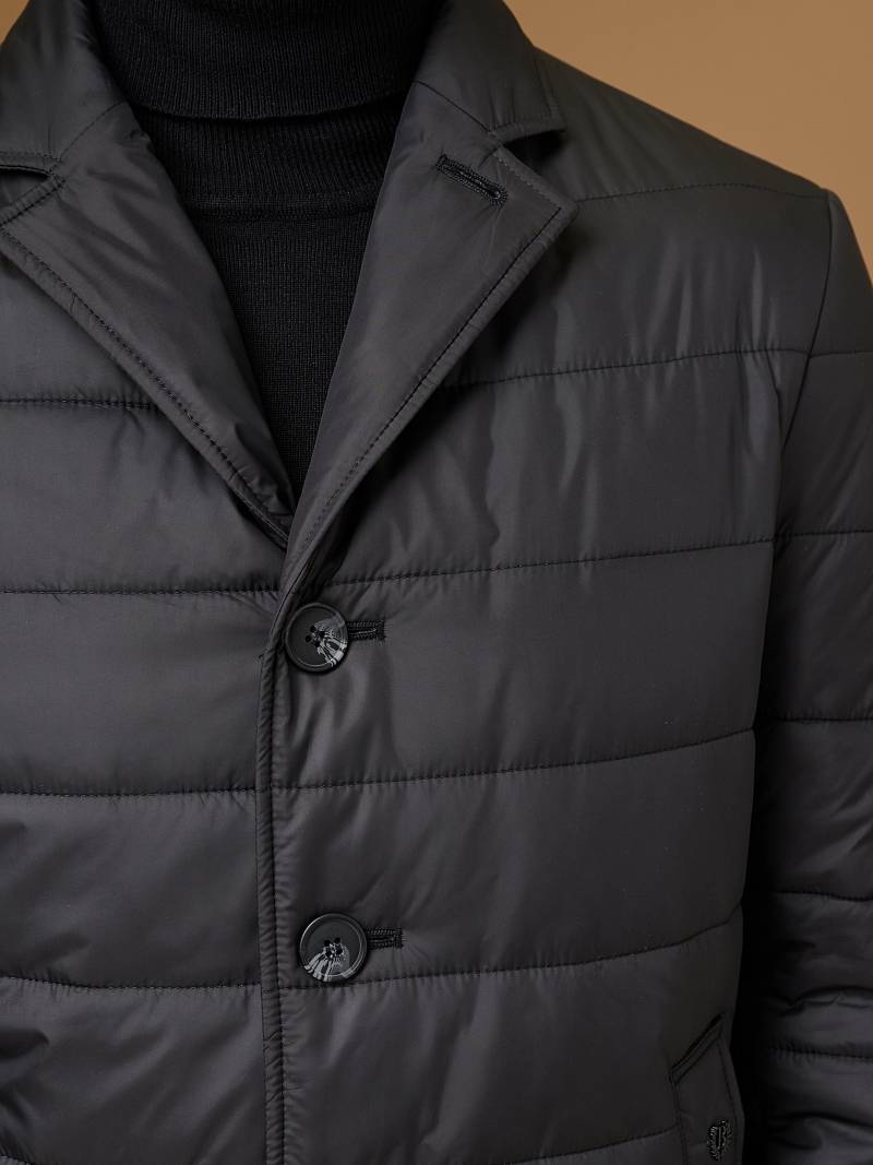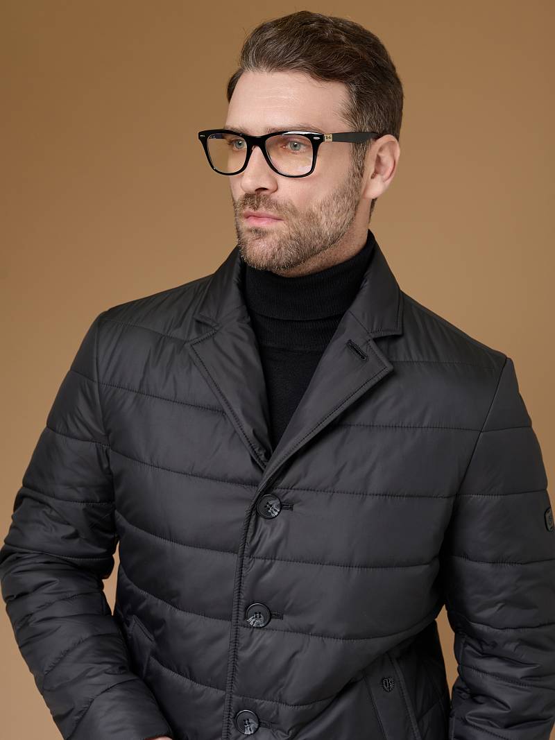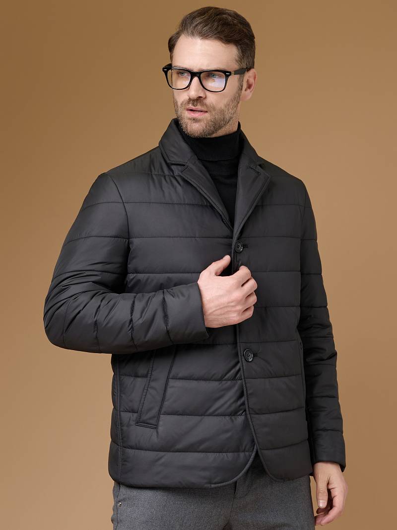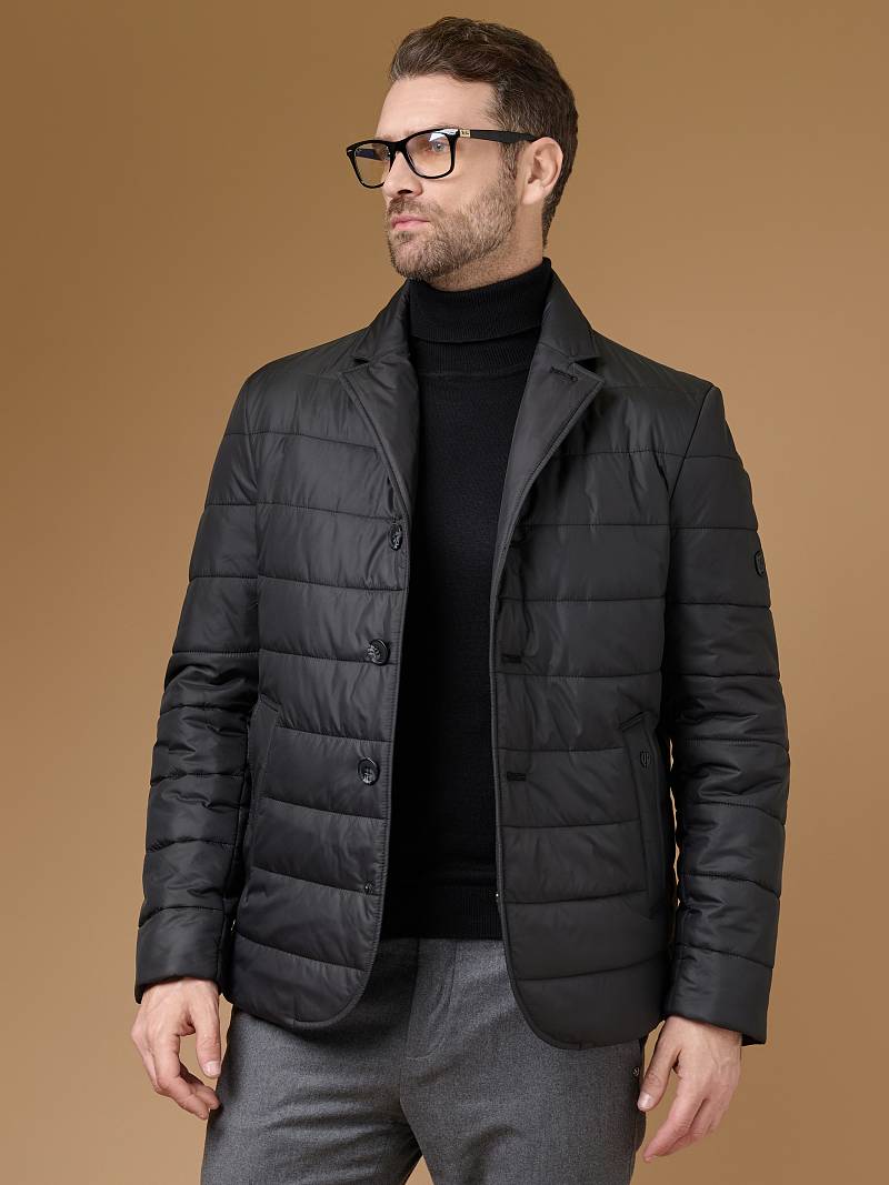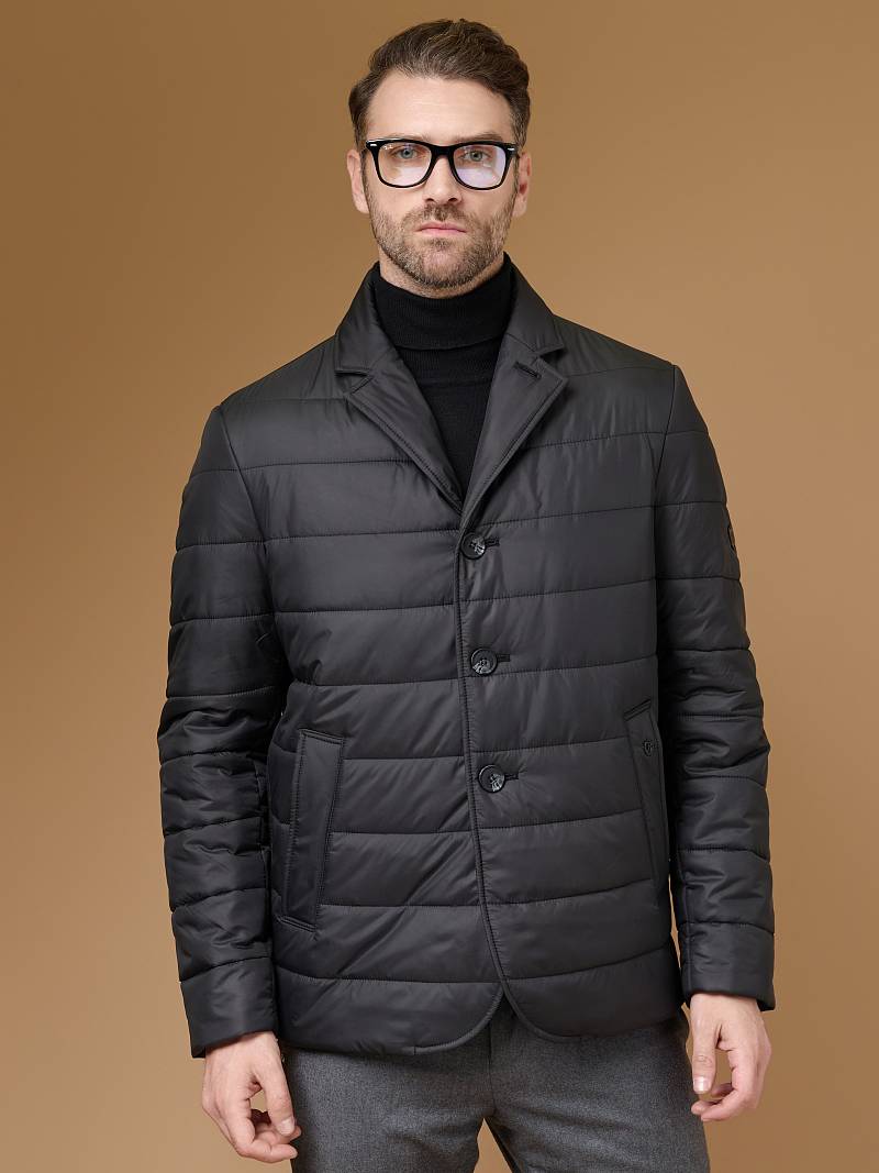 Куртка-пиджак мужская простеганая из курточной ткани. Инновационная пуходержащая ткань верха с обработкой wr, cire (ветро и влаго защита). - мягкая, легкая, практичная, не мнется. Изделие с отложным воротником пиджачного типа с лацканами. Застежка куртки -пиджака на пуговицы. На полочках - прорезные боковые карманы с листочками на скрытых магнитах. Спинка без среднего шва. Рукава с локтевыми швами. Инновационная внутренняя подкладка с защитой от миграции волокон, на подкладке - два вместительных кармана для документов. Утеплитель антиаллергенный термоплюс 150гр /150гр. не теряет своих свойств после химчистки и стирки. Длина по спинке для размера 50/176 - 90см. Ткань верха: 100%полиэстер. Подкладка: 100%полиэстер. Утеплитель: термоплюс 150гр/150гр.