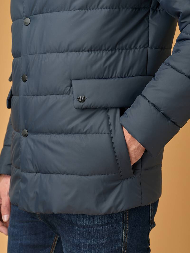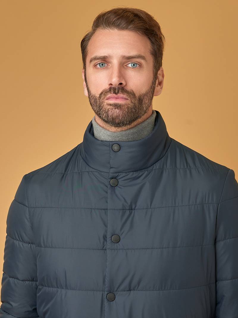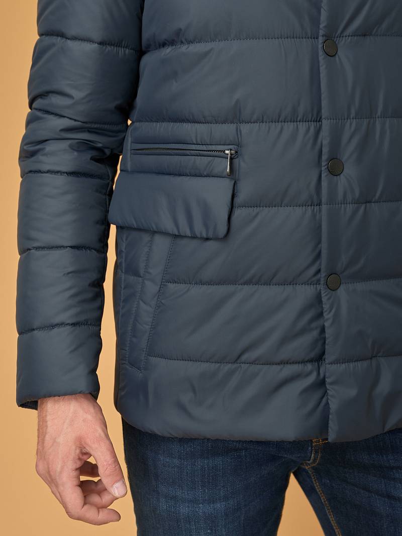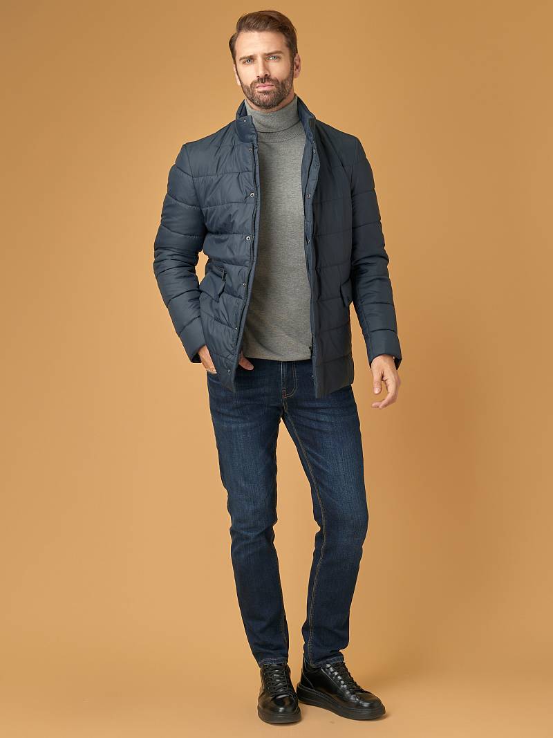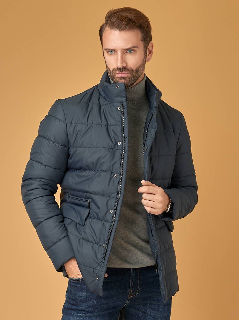 Куртка мужская простеганая из курточной ткани. Инновационная пуходержащая ткань верха с обработкой wr, cire (ветро и влаго защита). - мягкая, легкая, практичная, не мнется. Застежка на молнию и пуговицы. На полочках пять карманов - два прорезные боковые карманы с клапанами на скрытых магнитах, верхний один карман на молнии, и два нижних наклонных кармана с боковым входом. Спинка без среднего шва. Рукава с локтевыми швами. Внутренняя подкладка с защитой от миграции волокон, на подкладке - два вместительных кармана для документов. Утеплитель антиаллергенный термоплюс 150гр /150гр. не теряет своих свойств после химчистки и стирки. Длина по спинке для размера 50/176 - 74см. Ткань верха: 100%полиэстер. Подкладка: 100%полиэстер. Утеплитель: термоплюс 150гр/150гр.