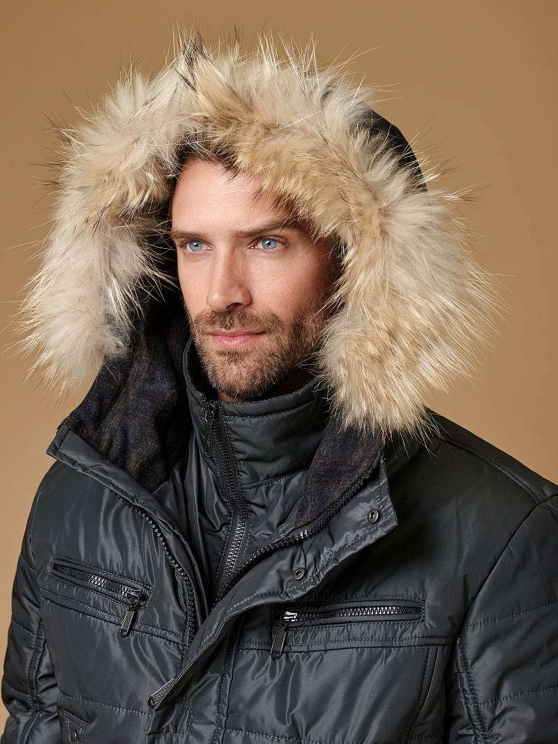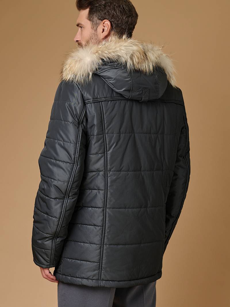 Куртка полуприлегающего силуэта с меховым капюшоном