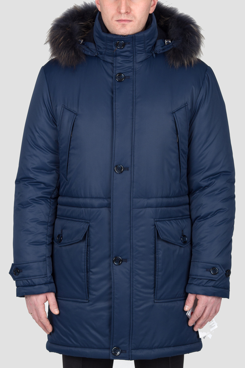 Куртка мужская прямого силуэта с капюшоном и меховой опушкой из натурального меха. Длина изделия по спинке для роста 176 - 95см. Ткань верха: 100%полиэстер. Подкладка: 100%полиэстер. Утеплитель: термоплюс 250гр. Опушка мех натуральный