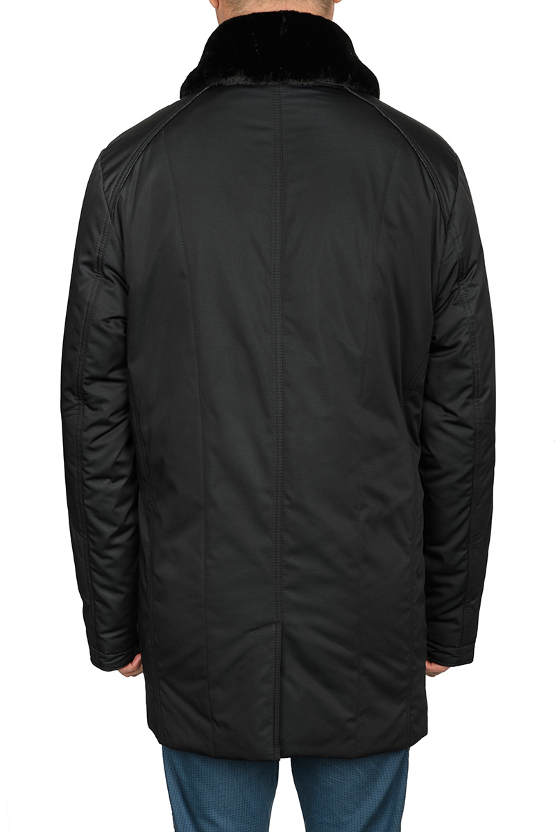 Куртка мужская утепленная свободного прилегания с центральной застежкой на молнию и на 4 кнопки. Изделие с отложным воротником, к нему пристегивается меховой воротник, на стойке нижнего воротника - вышивка. Спинка и полочки простеганы вертикально. На полочках и по спинке - кокетки. Полочки с отрезными бочками и с двумя нижними прорезными карманами: 1-ый карман с клапаном, 2-ой - с листочкой, с наклонным входом в карман. По спинке - средний шов со шлицей. Рукава с локтевым швом и имитацией налокотников, на левом рукаве- отделочная деталь нашивка-герб. По шву притачивания кокеток, по листочке и по низу рукавов - отделочный кант из эко-кожи. Подкладка изделия комбинированная, состоит из нижней и верхней частей подкладки. По линии талии подкладки - отделочная фирменная тесьма. На подкладке полочек верхние внутренние карманы на молнии и один нижний накладной карман для мобильного телефона. Длина изделия по спинке для роста 176 - 86см. Ткань верха: 100%полиэстер. Подкладка: 50% вискоза, 50% полиэстер Утеплитель: термофин 200 гр.