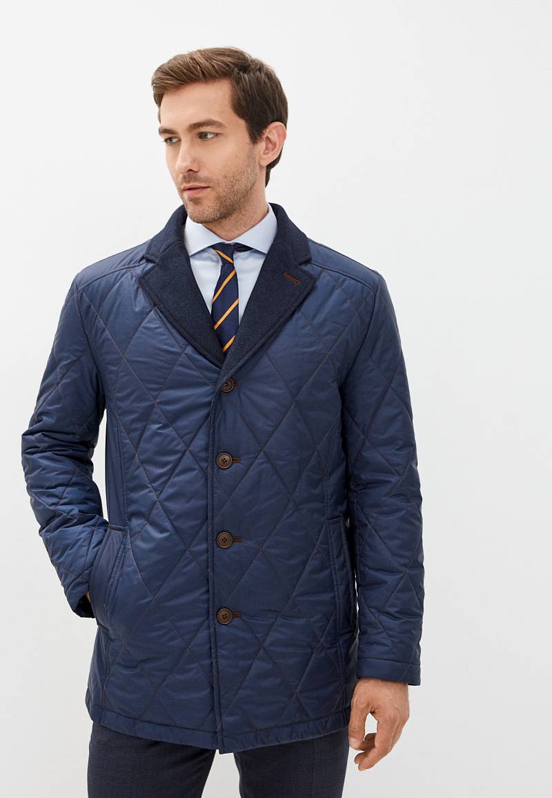 Куртка мужская утепленная c английским воротником с центральной застежкой на 4 пуговицы и одну потайную кнопку. Воротник - с лацканами из отделочной шерстяной ткани, на лацкане - декоративная петля. Полочки, спинка и рукава простеганы одинарной стежкой "ромб". Полочки с кокетками, боковые карманы с листочками располагаются в рельефных швах. По спинке две шлицы, которые также расположены в рельефных швах. Рукава втачные состоят из двух частей, На полочках подкладки- 2 внутренних прорезных кармана с фигурным клапаном. Длина изделия по спинке для роста 176 - 80см. Ткань верха: 100%полиэстер. Подкладка: 100%полиэстер. Утеплитель: термоплюс 160 гр./140гр.