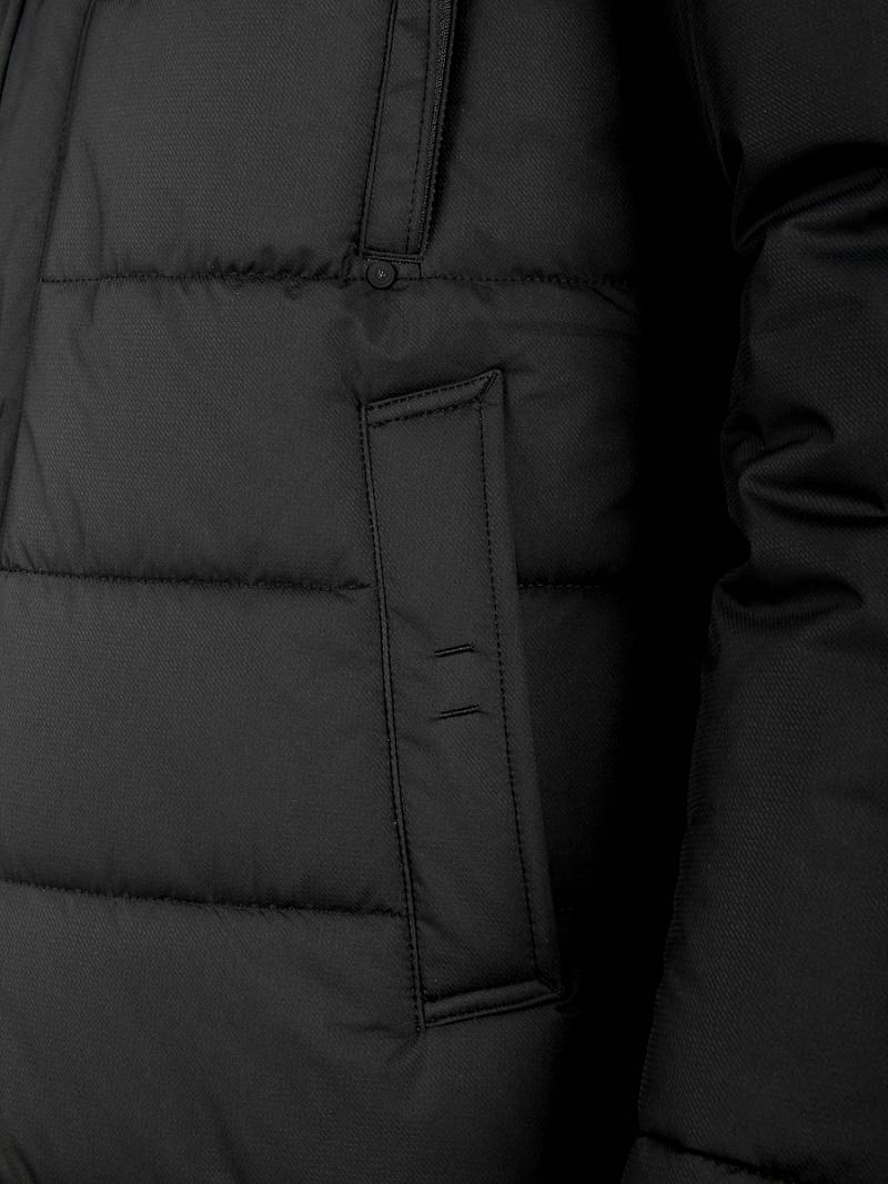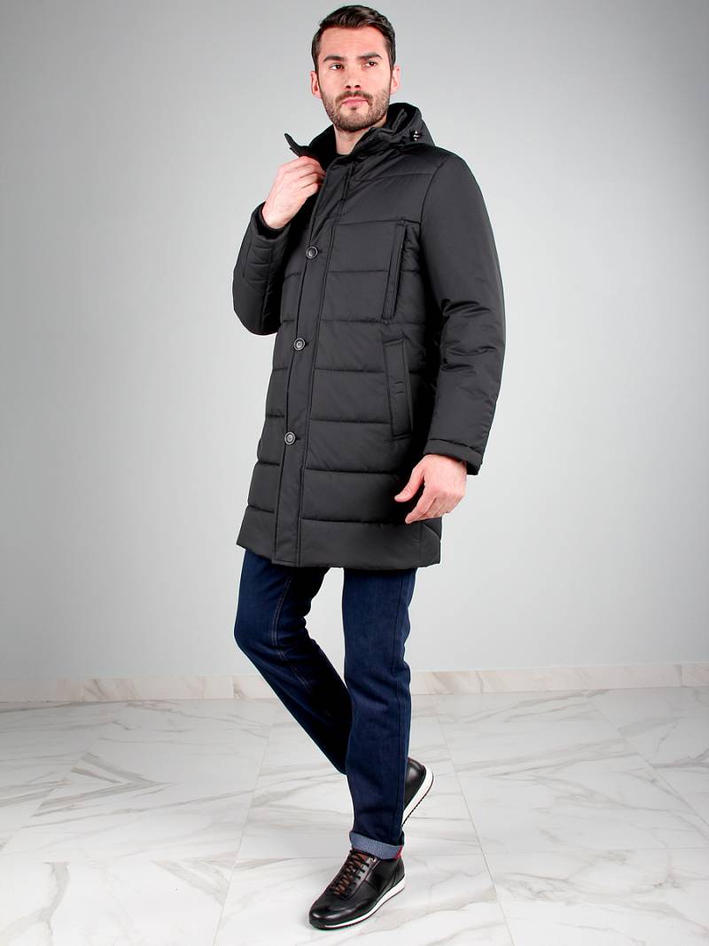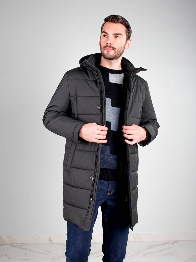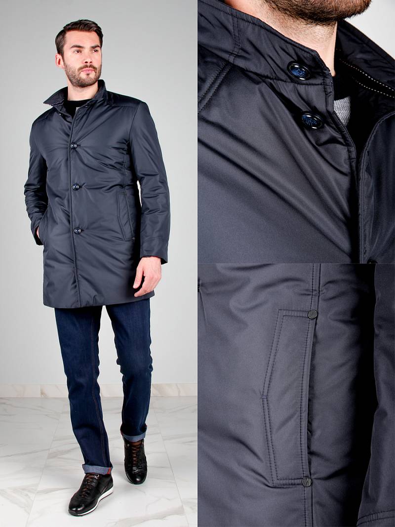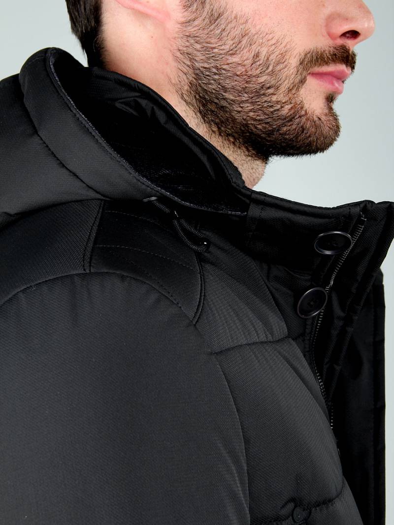 Куртка мужская утепленная, однобортная. Застежка на молнию и пуговицы. Воротник стойка. Внутренний воротник из трикотажного полотна. Капюшон пристегивающийся на молнии. На полочке боковые карманы прорезные "с листочкой" и нагрудные карманы прорезные "с листочкой" на молнии. Рукав стачной двухшовный, по низу с ветрозащитным манжетом. Спинка со средним швом и шлицей на молнии. На подкладке два внутренних кармана на молнии. Длина изделия по спинке для роста 176 - 95см. Ткань верха: 100%полиэстер. Подкладка: 100%полиэстер. Утеплитель: термоплюс 150гр