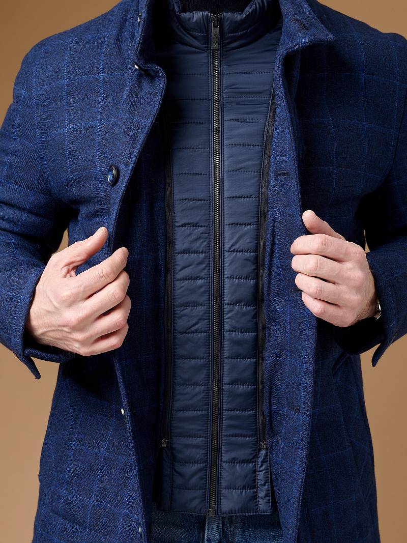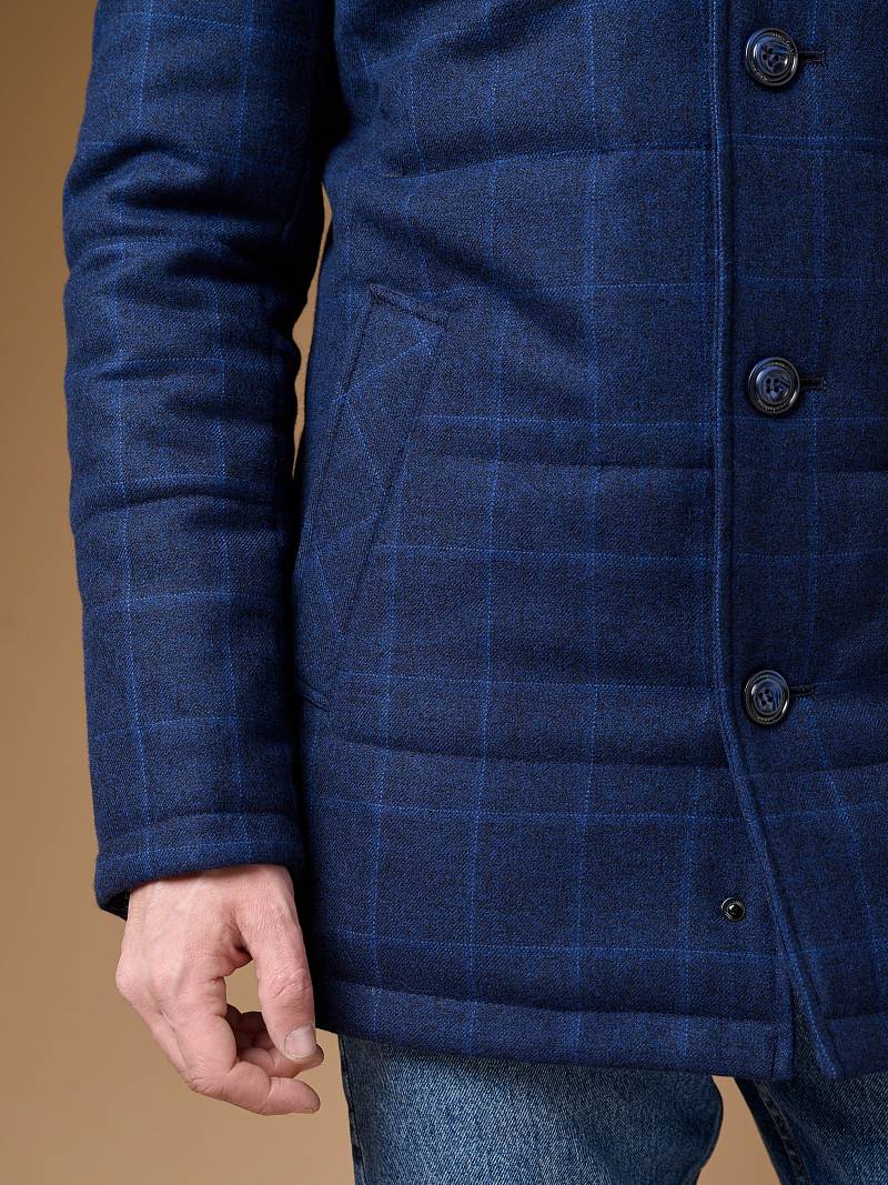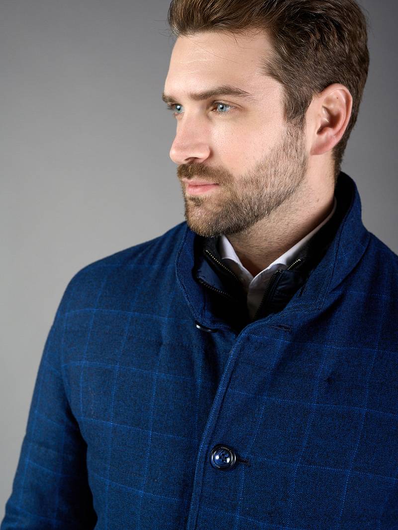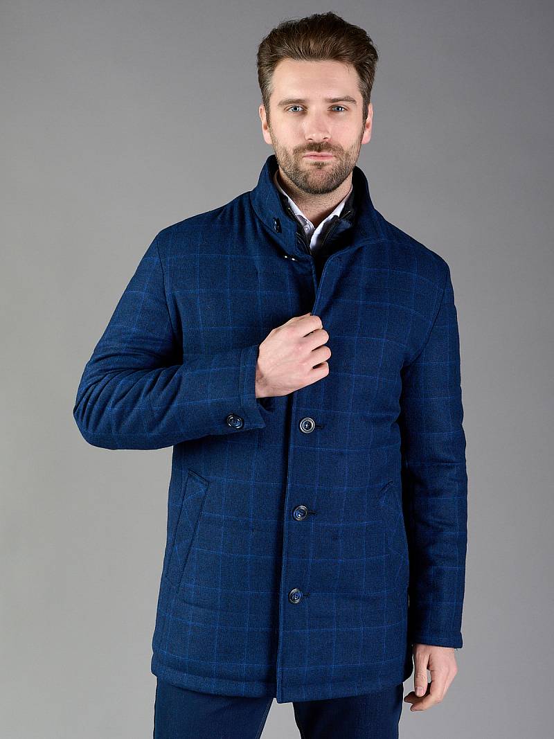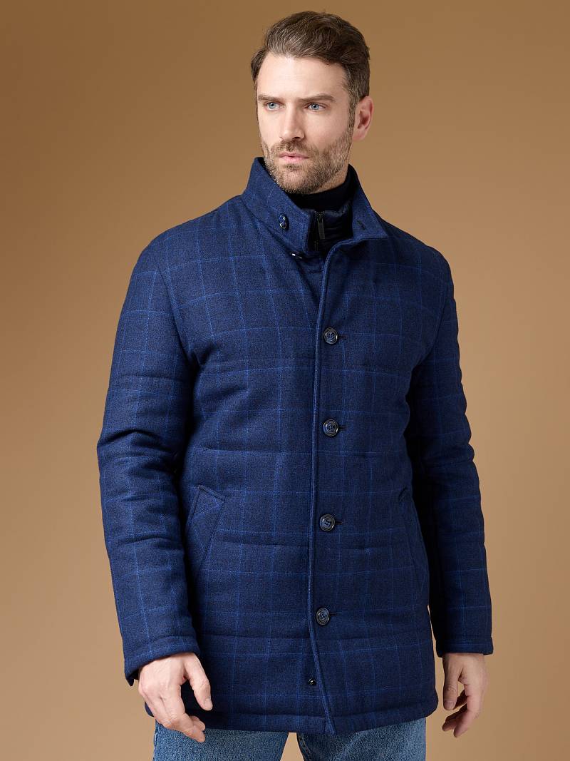 Куртка мужская утепленная с отстегивающийся манишкой на молнию. Застежка куртки на 6 пуговиц. Воротник - стойка. Полочки, спинка, рукава- простеганы горизонтальной стежкой. На полочках - два нижних боковых кармана с листочками. В нижней части среднего шва спинки- шлица на кнопке. Рукава втачные с локтевыми швами. На подкладке - два внутренних прорезных кармана на молниях. Длина по спинке для размера-роста 50/176 - 82см. Ткань верха: 100%шерсть. Подкладка: 100%полиэстер. Утеплитель: термоплюс 200гр/160гр.