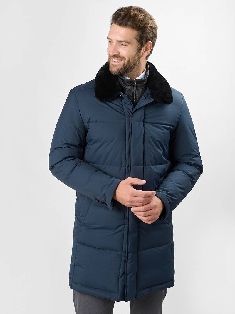 Удлиненная куртка-пальто придает владельцу уверенности в завтрашнем дне. Прочный полиэстер не боится снега и моросящего дождя, а наполнитель био-пух хорошо сохраняет тепло. Его распределили по стеганым камерам, поэтому он греет равномерно и не сбивается во время чистки. Для максимальной защиты от холода изделие дополнили отложным меховым воротником из натурального меха и съемной манишкой, защищающей в непогоду. ДАННОЕ ИЗДЕЛИЕ УКРАСИТ ВАШ ГАРДЕРОБ.