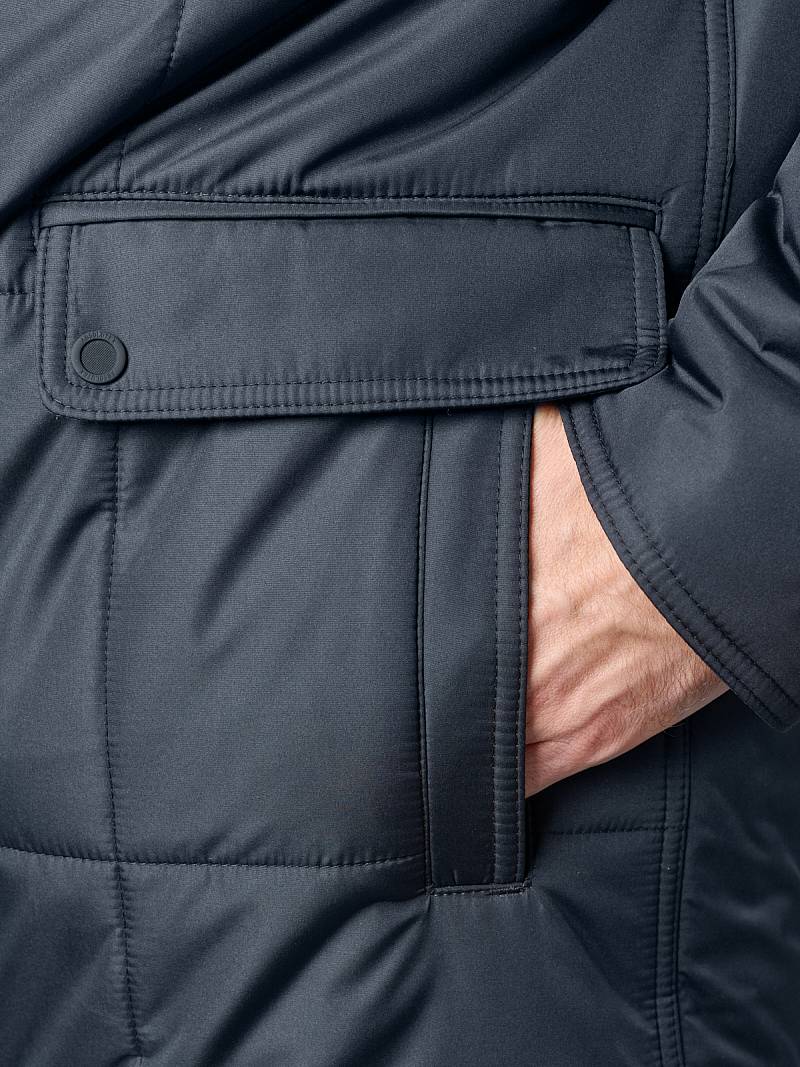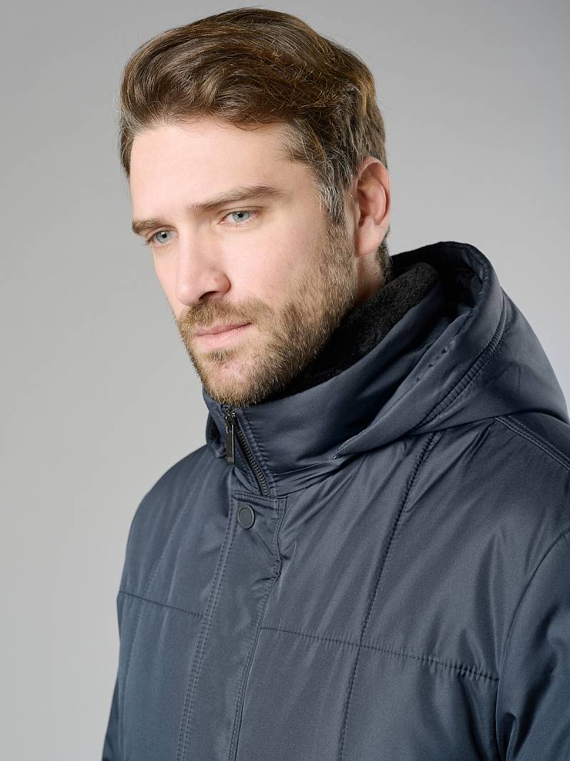 Куртка мужская утепленная из курточной ткани c водоотталкивающей пропиткой, которая защищает от ветра, холода и дождя. Ткань верха прочная, практичная, не мнется. Капюшон отстегивается. Воротник -стойка со съемным меховым воротником, плотно облегает шею, создает тепло и уют. Застежка изделия на молнию YKK и ветрозащитную планку. Молнии японской фирмы YKK прочные и имеют высокий цикл застегивания и расстегивания. Полочки и спинка простеганы, на полочках - два кармана с клапаном и два кармана с боковым входом на скрытых магнитах. Мешковина карманов из велюра, придает мягкость и создает тепло и комфорт в изделии. Спинка со шлицей. Рукава втачные с локтевыми швами. На подкладке - два внутренних прорезных кармана с листочками на молнии. Длина по спинке-85см. Ткань верха: 100%полиэстер. Подкладка: 100%полиэстер. Утеплитель: термоплюс 260гр/200гр. Воротник: мех.