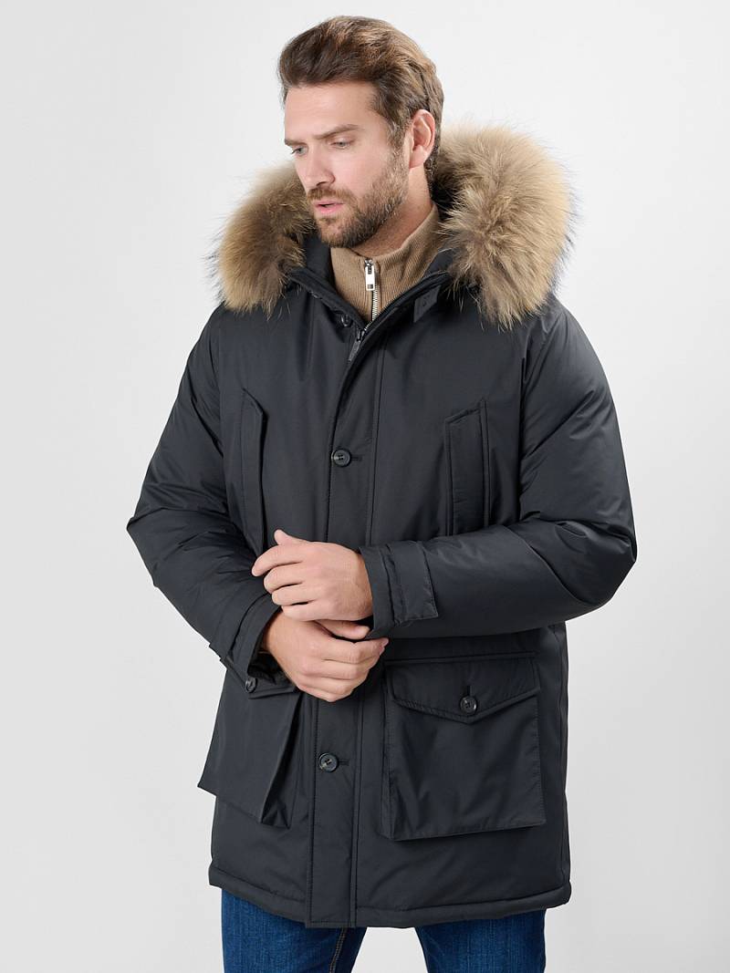 Куртка мужская (пуховик) с несъемным ,глубоким, теплым ,регулируемым по обьему кулиской, капюшоном с опушкой из натурального меха .Вместительные,утепленные велюром, карманы ,нижние карманы накладные . Все карманы защищены от снега и дождя клапанами .Застежка классическая молния с двумя замками для дополнительного удобства ,произведена одним из лидеров в своем сегменте компанией YKK .Ветрозащитная планка на пуговицах.Подкладка ветронепродуваемая,пуходержащая .Инновационная ткань верха c обработкой WR,CIRE,с высокими ветро и влагозащитными свойствами.Гипоаллергенный утеплитель биопух 220гр/200гр с отличными теплозащитными свойствами,не теряет своих качеств после химчистки и стирки. Опушка -аукционный финский енот. Длина изделия по спинке для роста 176 - 88см. Ткань верха: 100% полиэстер. Подкладка: 100% полиэстер. Утеплитель: био- пух 220гр/200гр. Опушка: мех натуральный-ФИНСКИЙ АУКЦИОННЫЙ ЕНОТ.